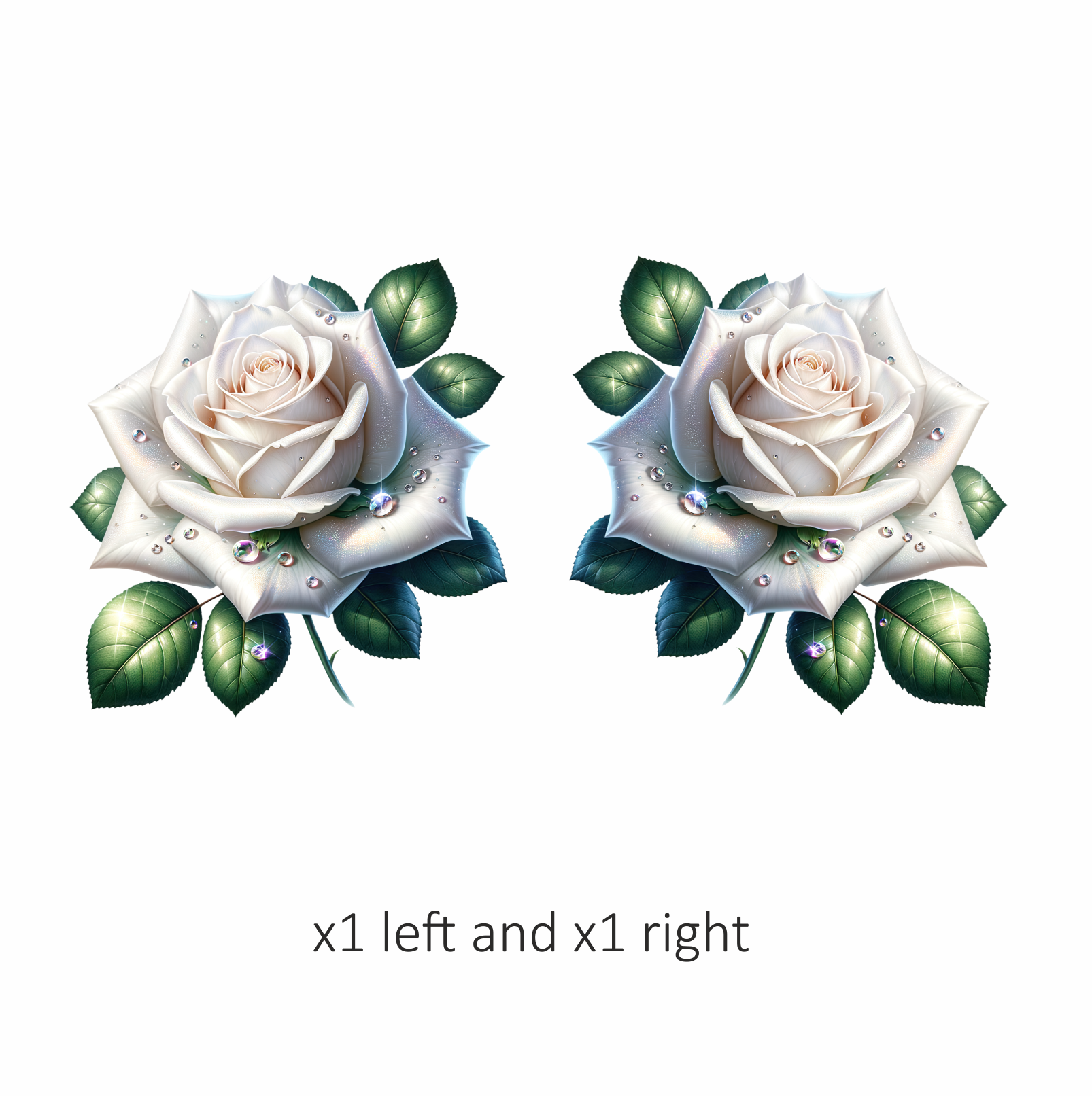 White Rose Green Leaves Water Drops Vinyl Sticker Decal