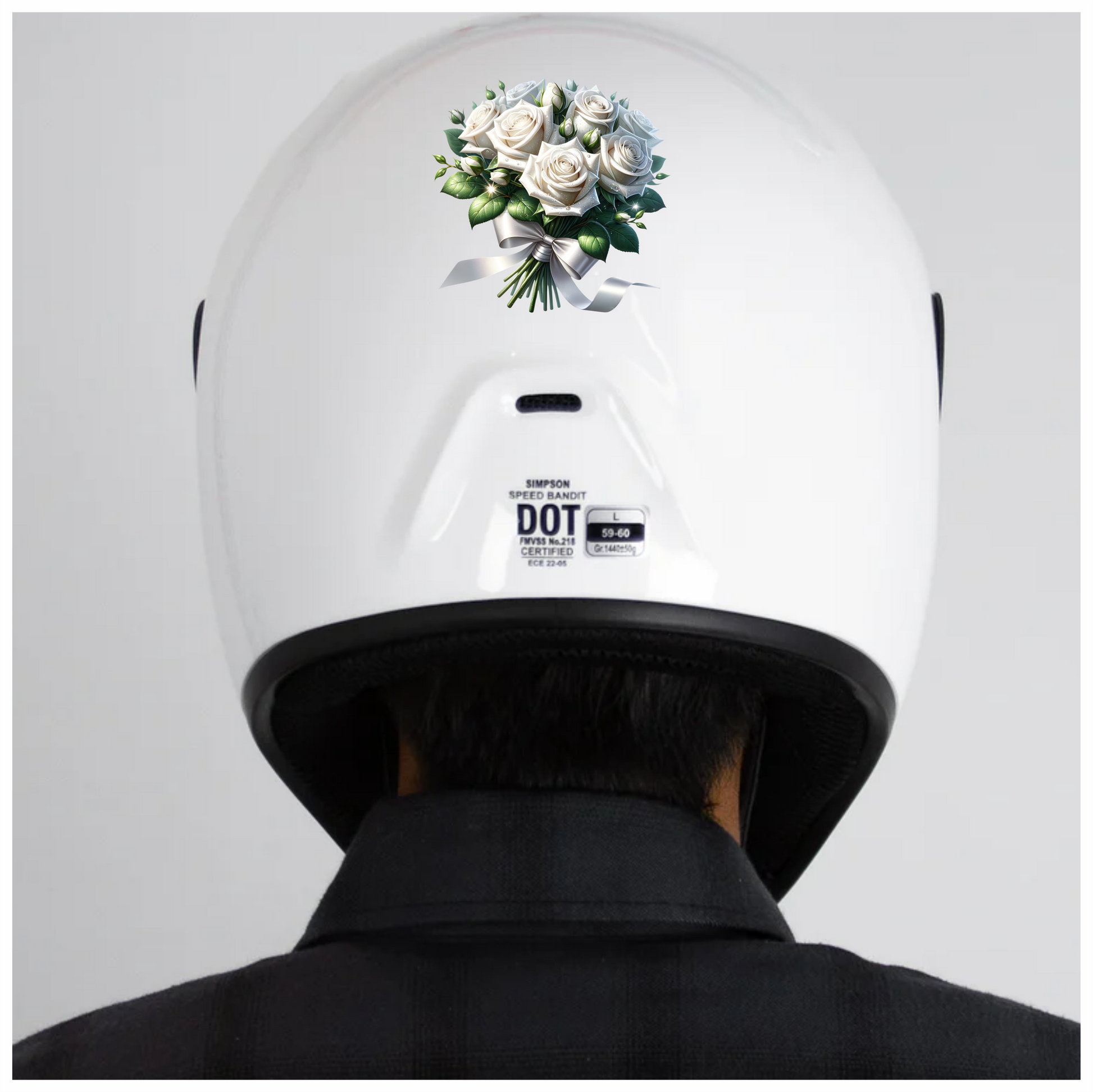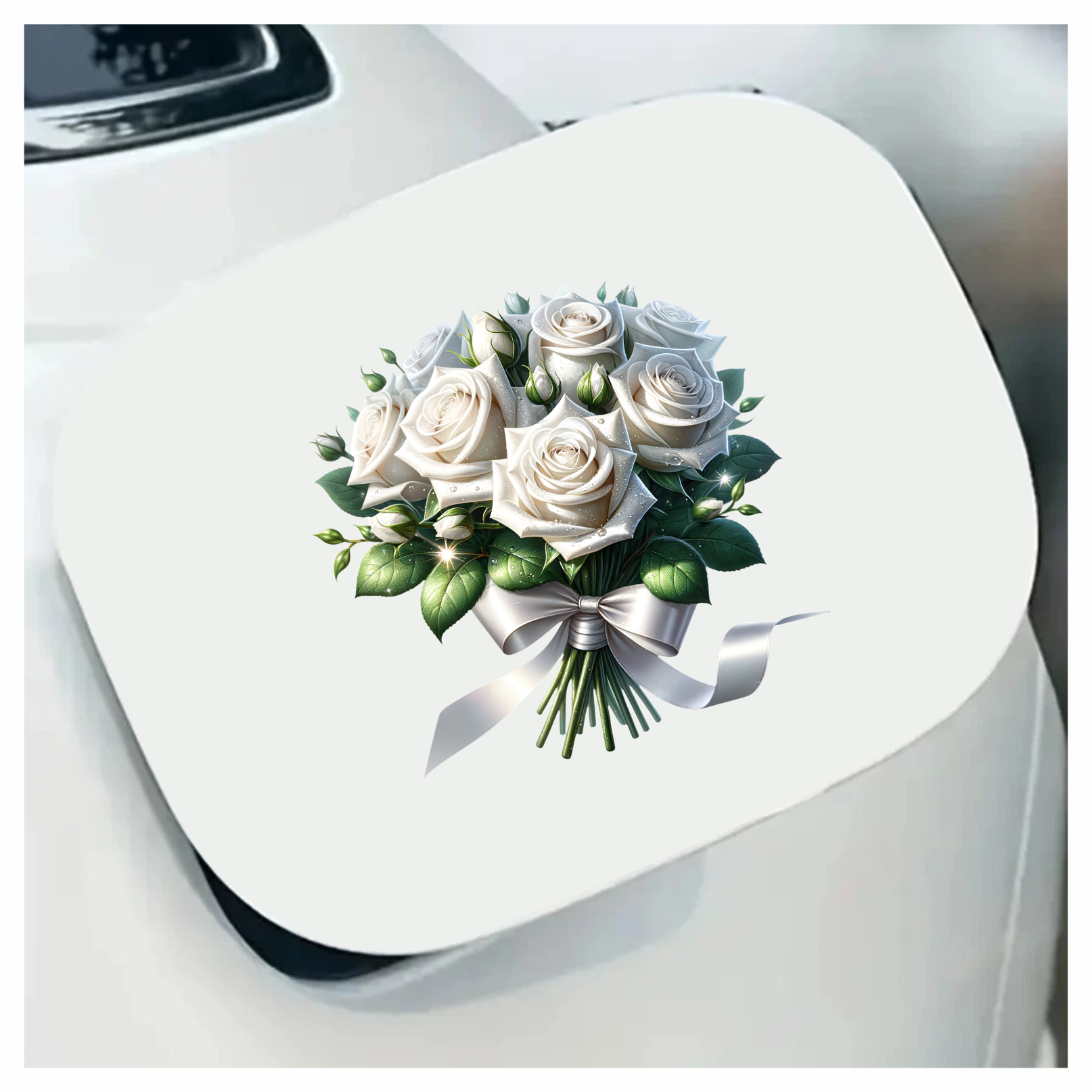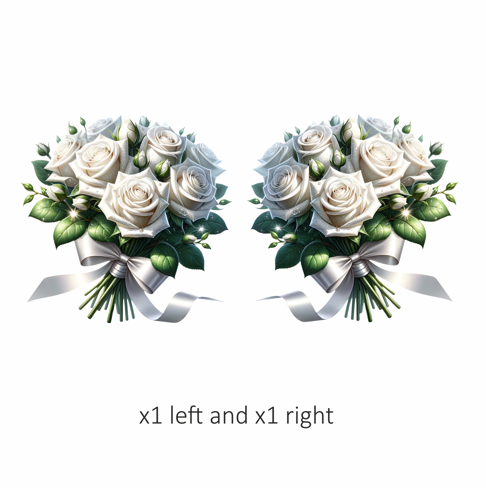 White Roses Bouquet Green Leaves Ribbon Vinyl Sticker Decal