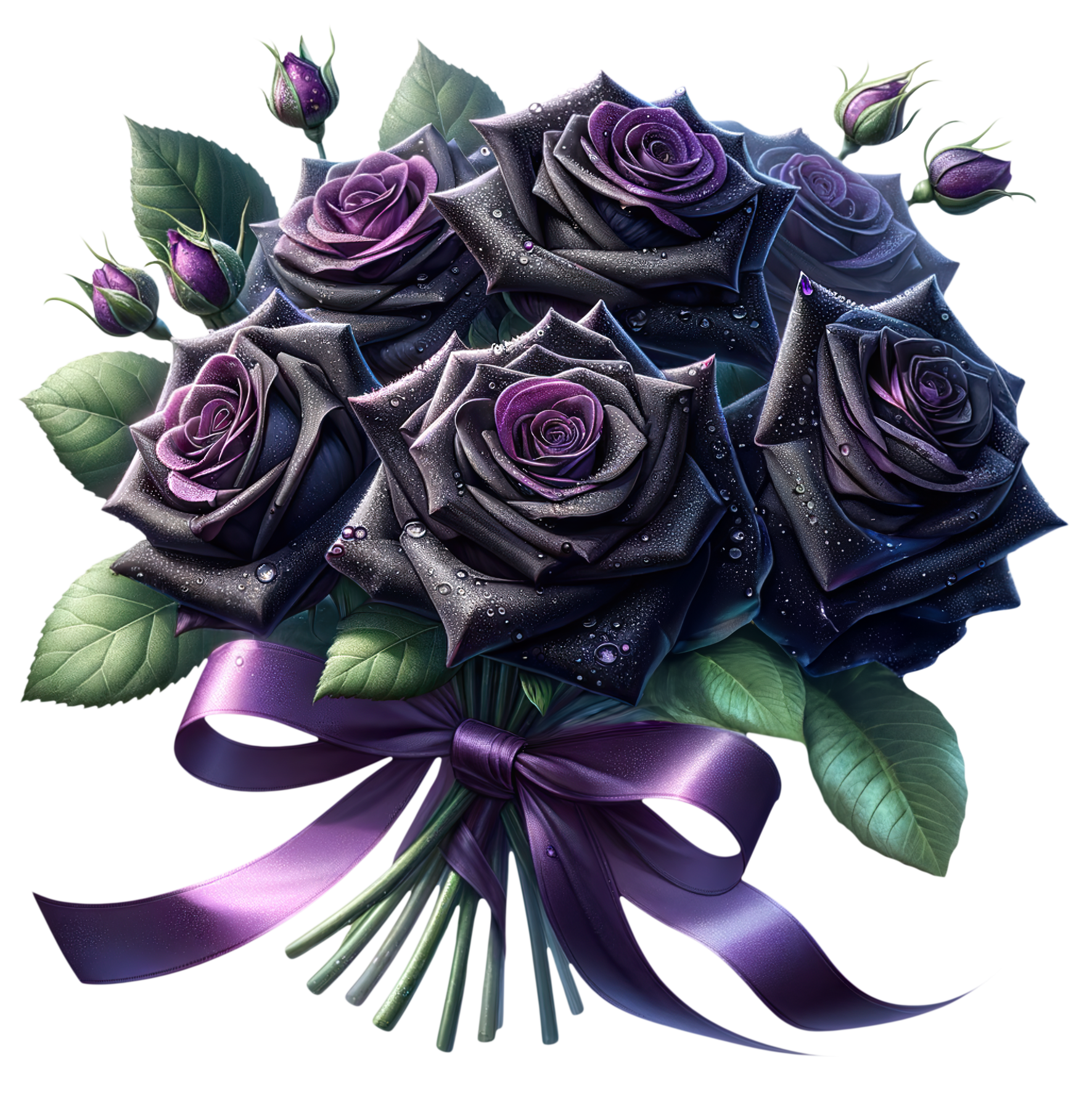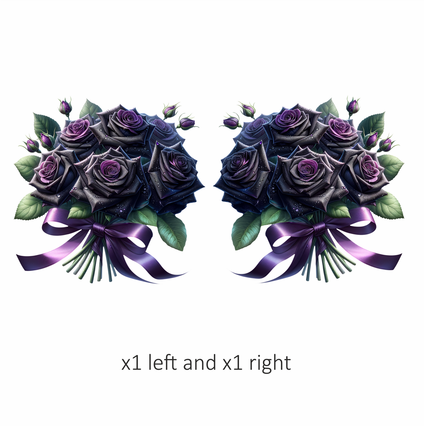 Black Roses Purple Bow Water Drops Vinyl Sticker Decal