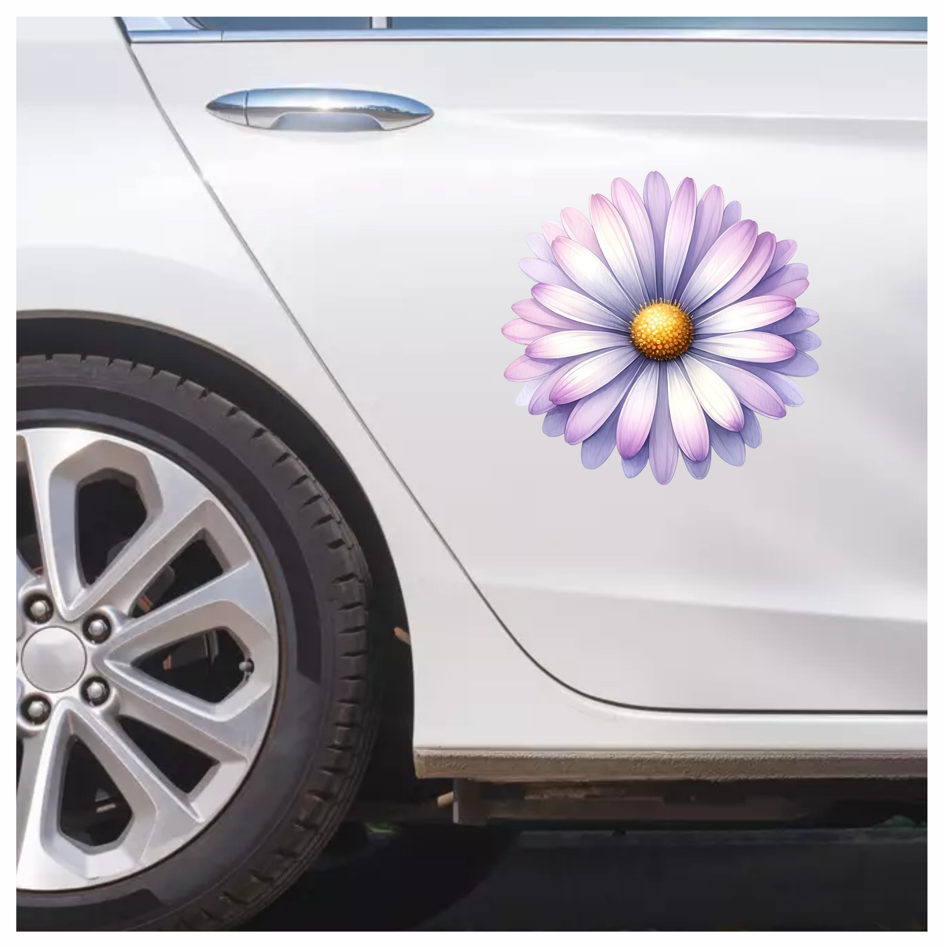 Purple White Flower Petals Yellow Center Vinyl Sticker Decal