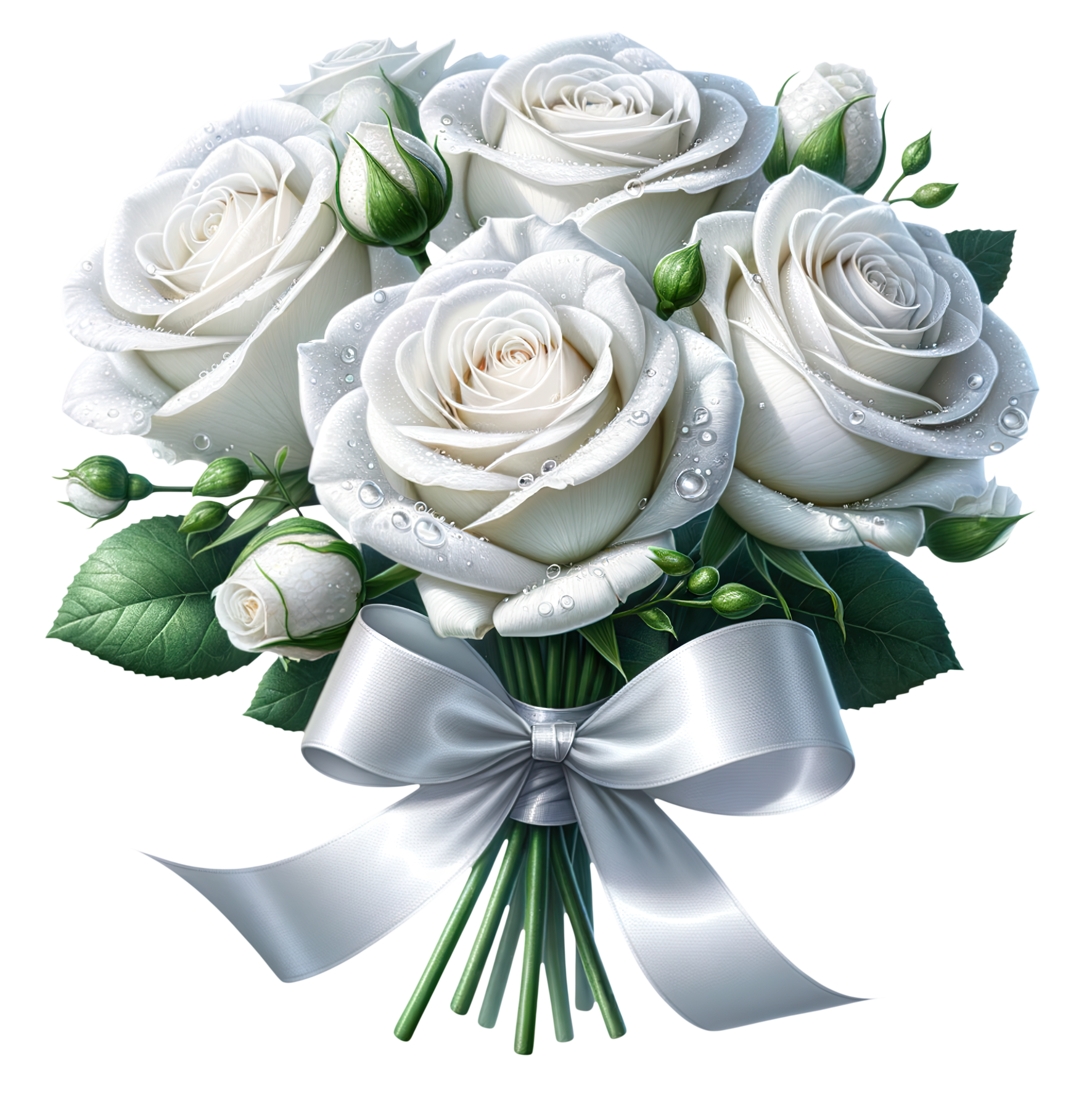 White Roses Bouquet Ribbon Elegant Vinyl Sticker Decal