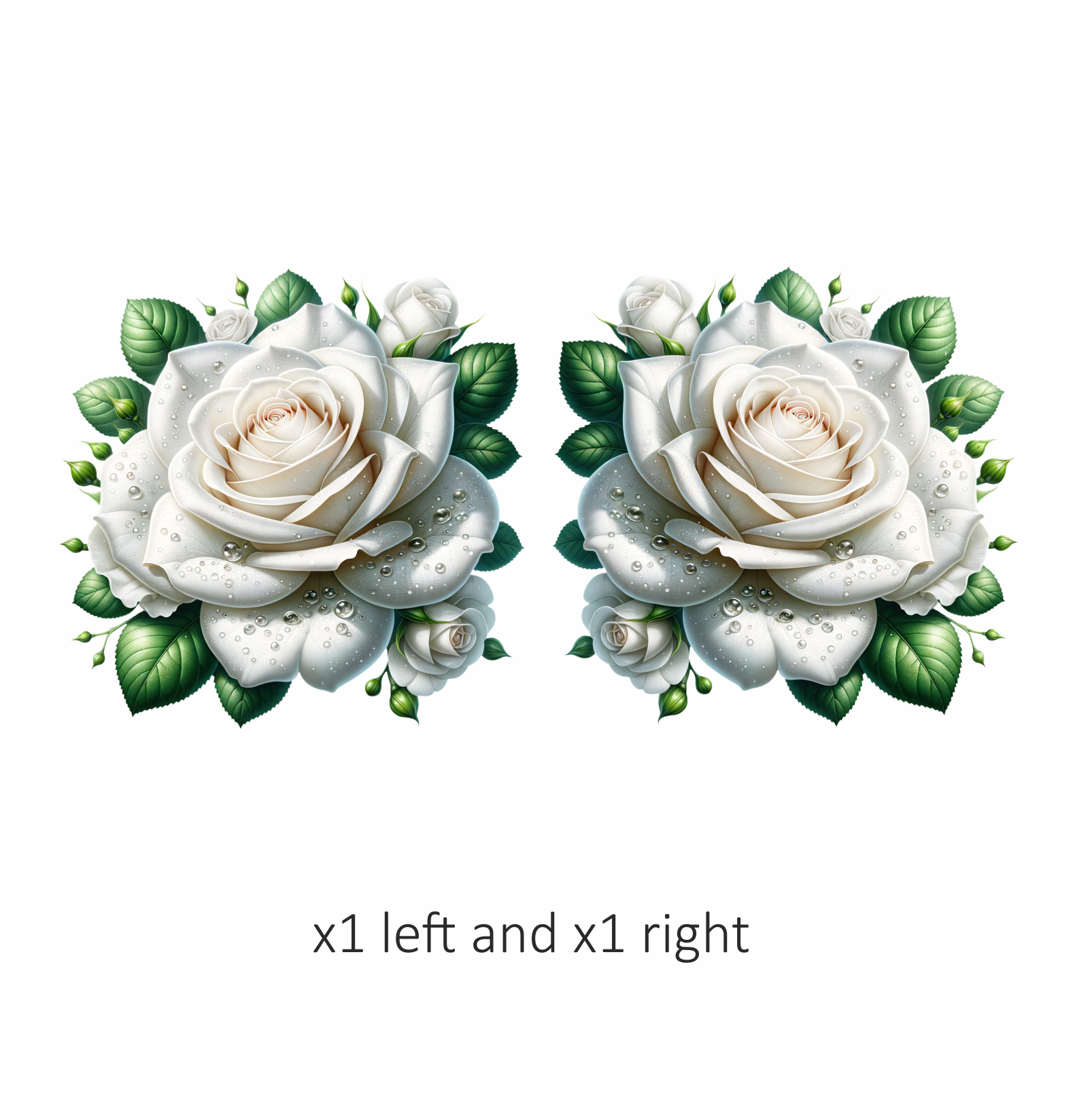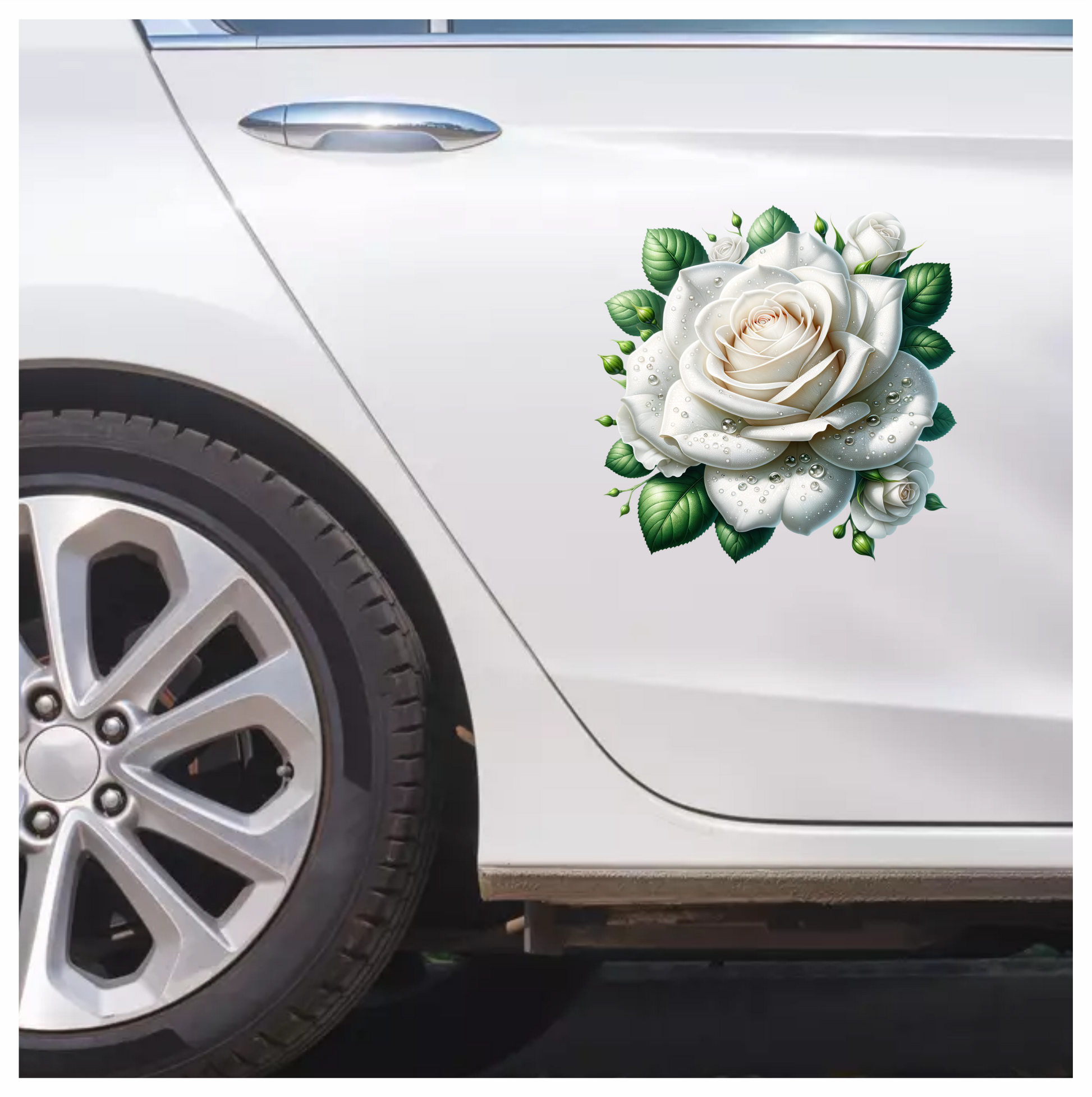 White Rose Green Leaves Water Drops Vinyl Sticker Decal