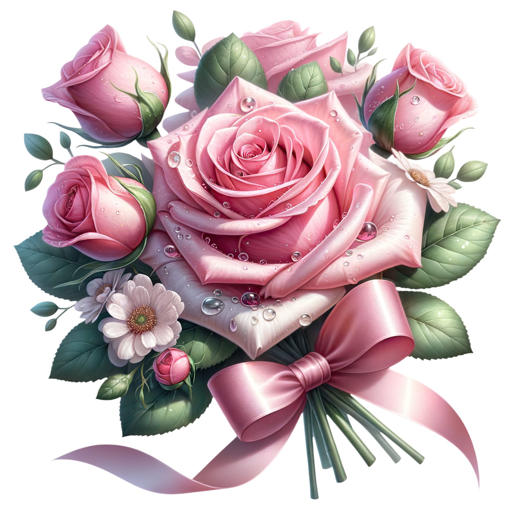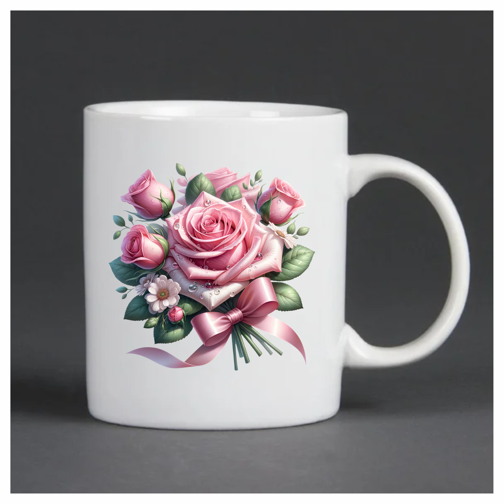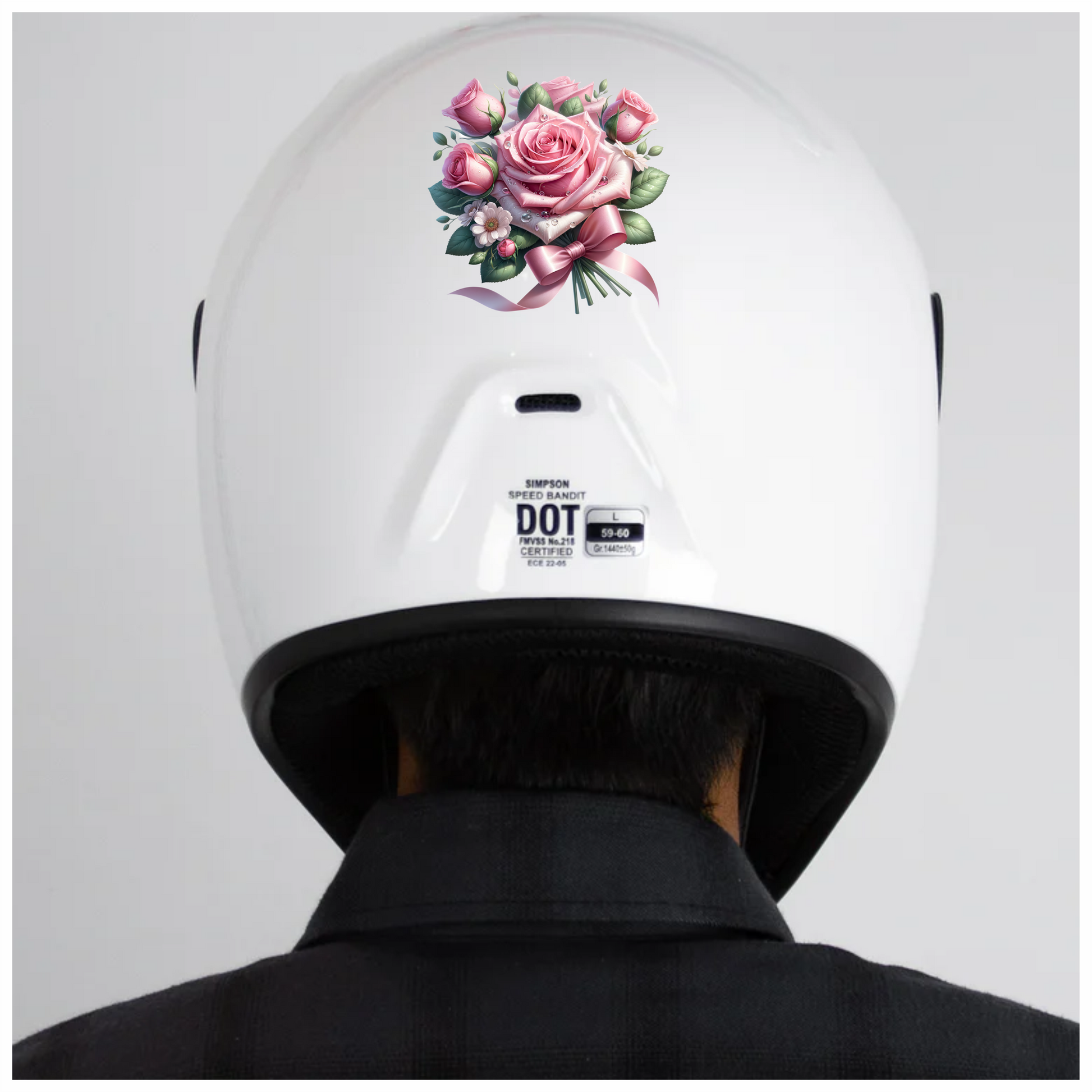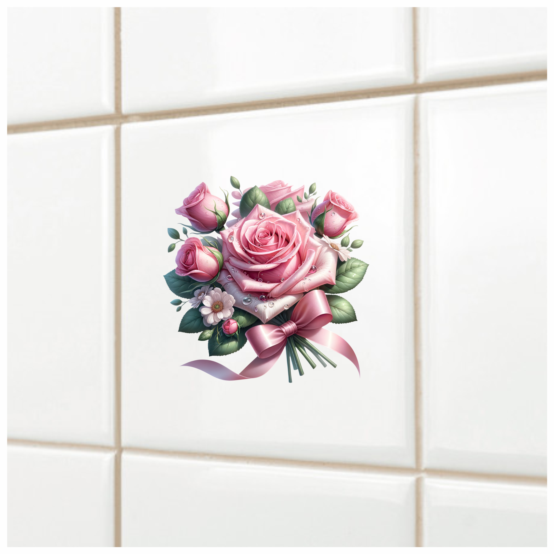 Pink Roses Flowers Leaves Ribbon Vinyl Sticker Decal
