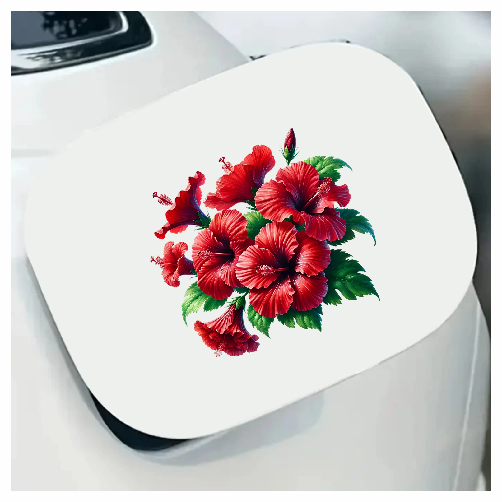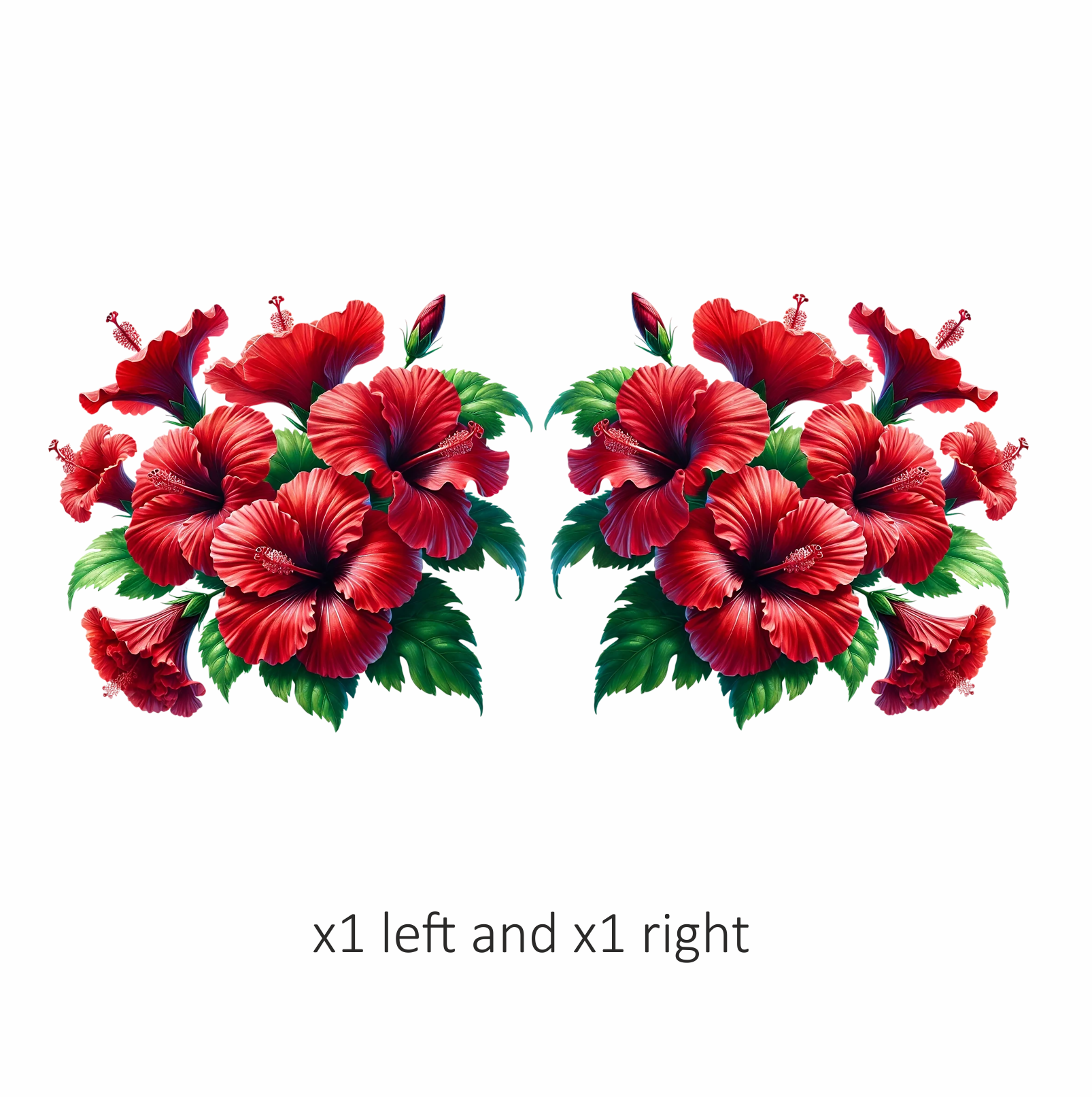 Red Hibiscus Flowers Green Leaves Vinyl Sticker Decal