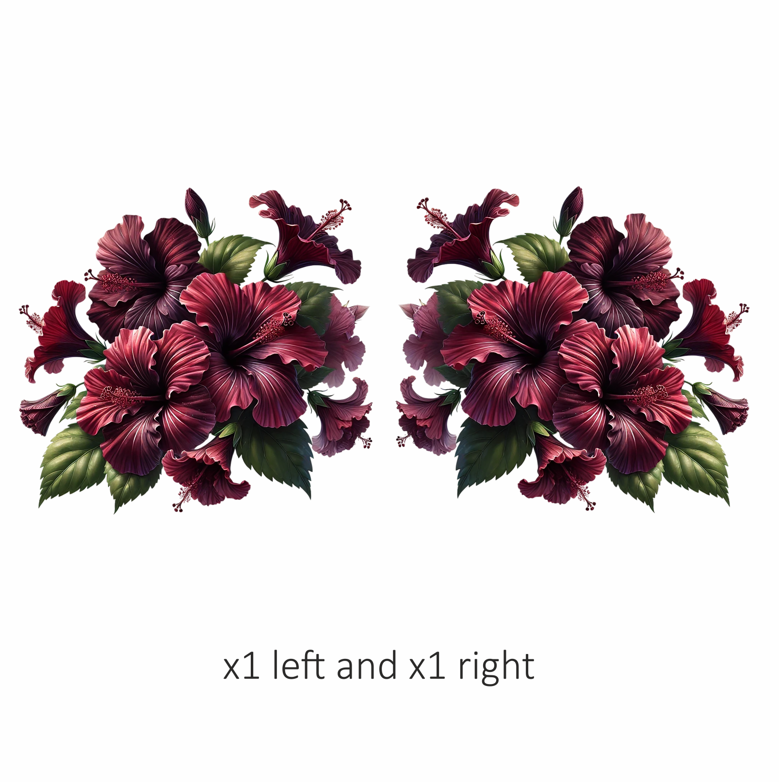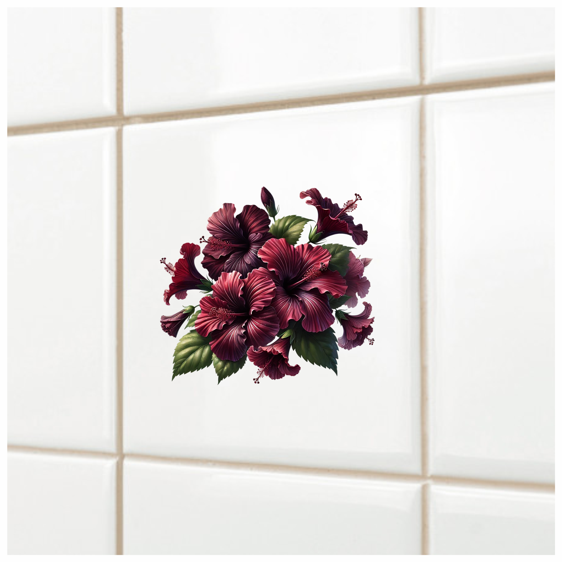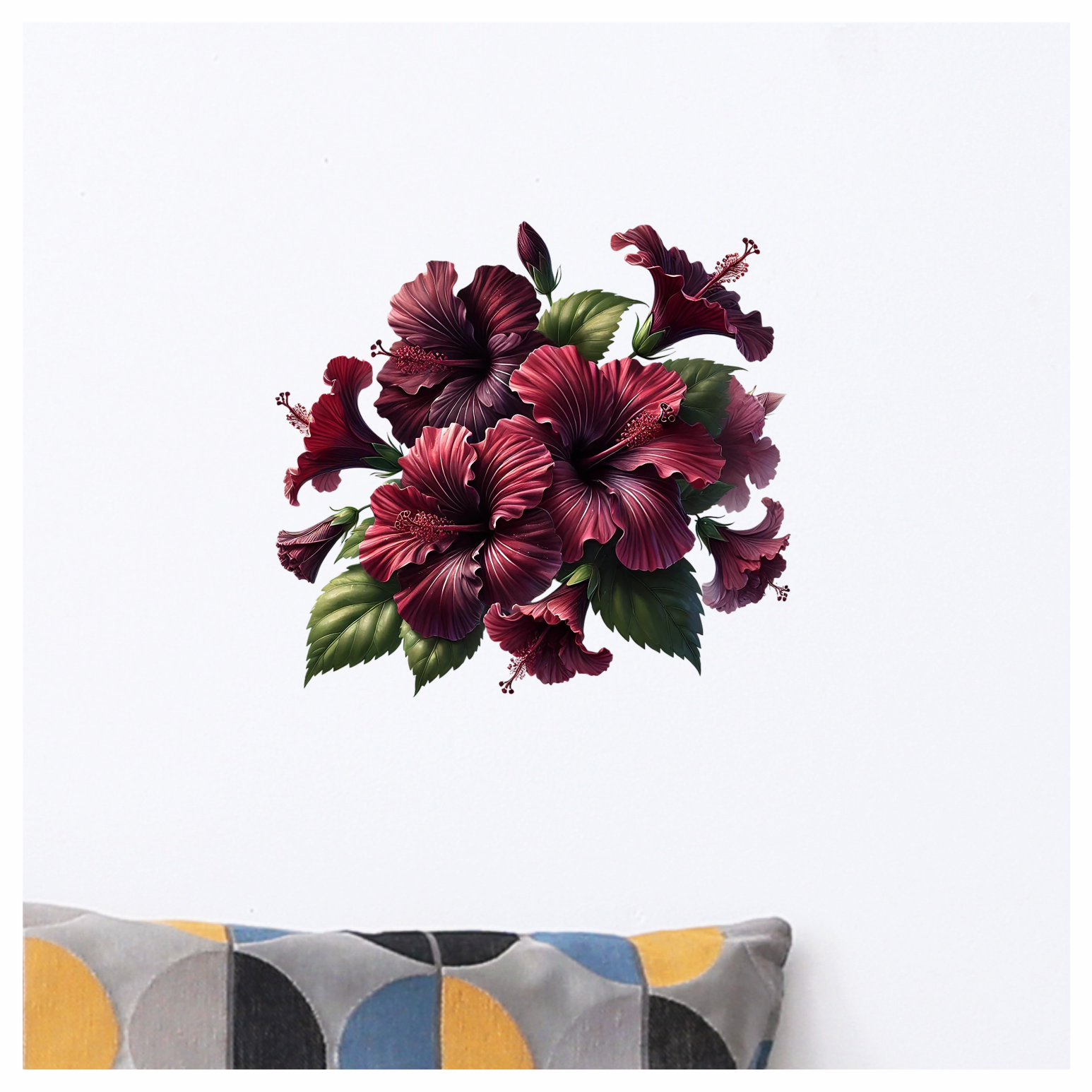 Red Hibiscus Flowers Green Leaves Vinyl Sticker Decal