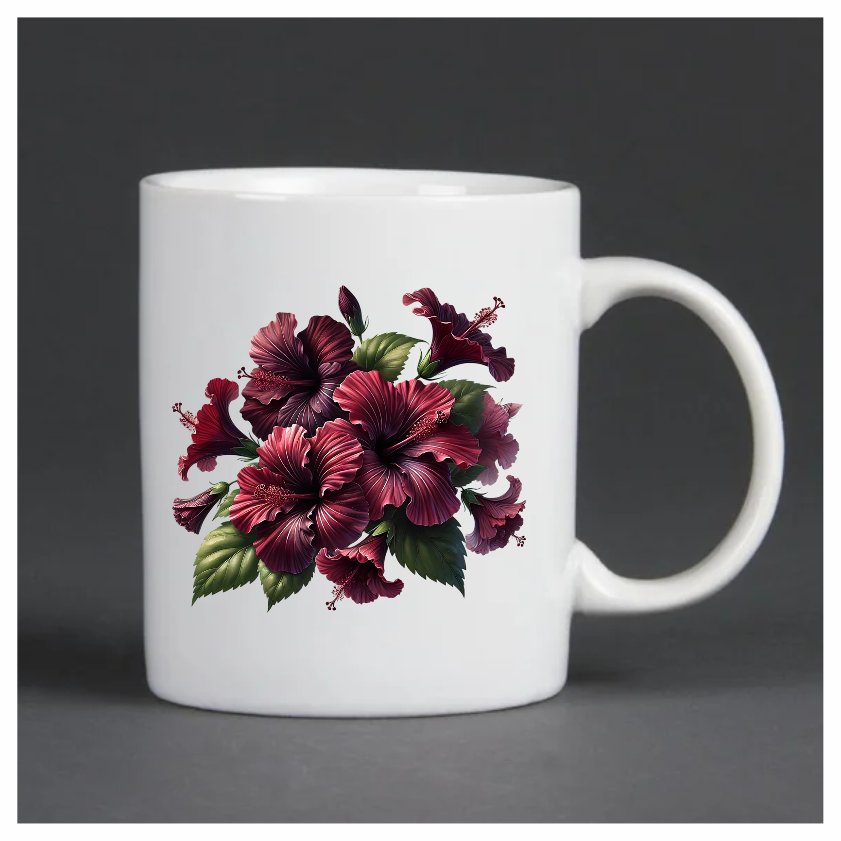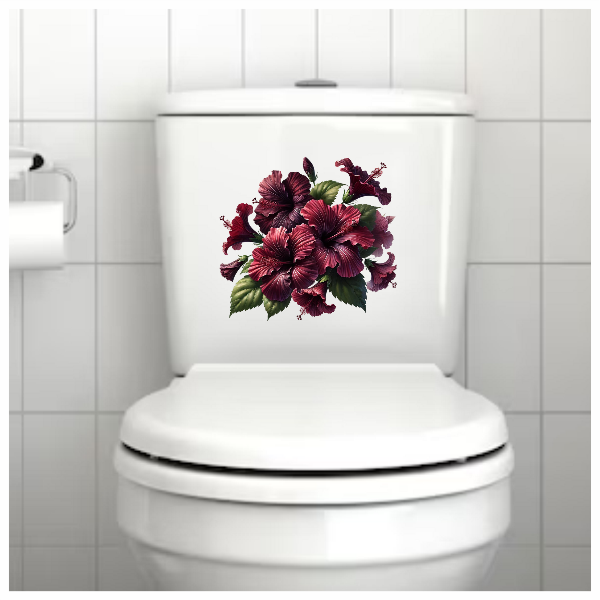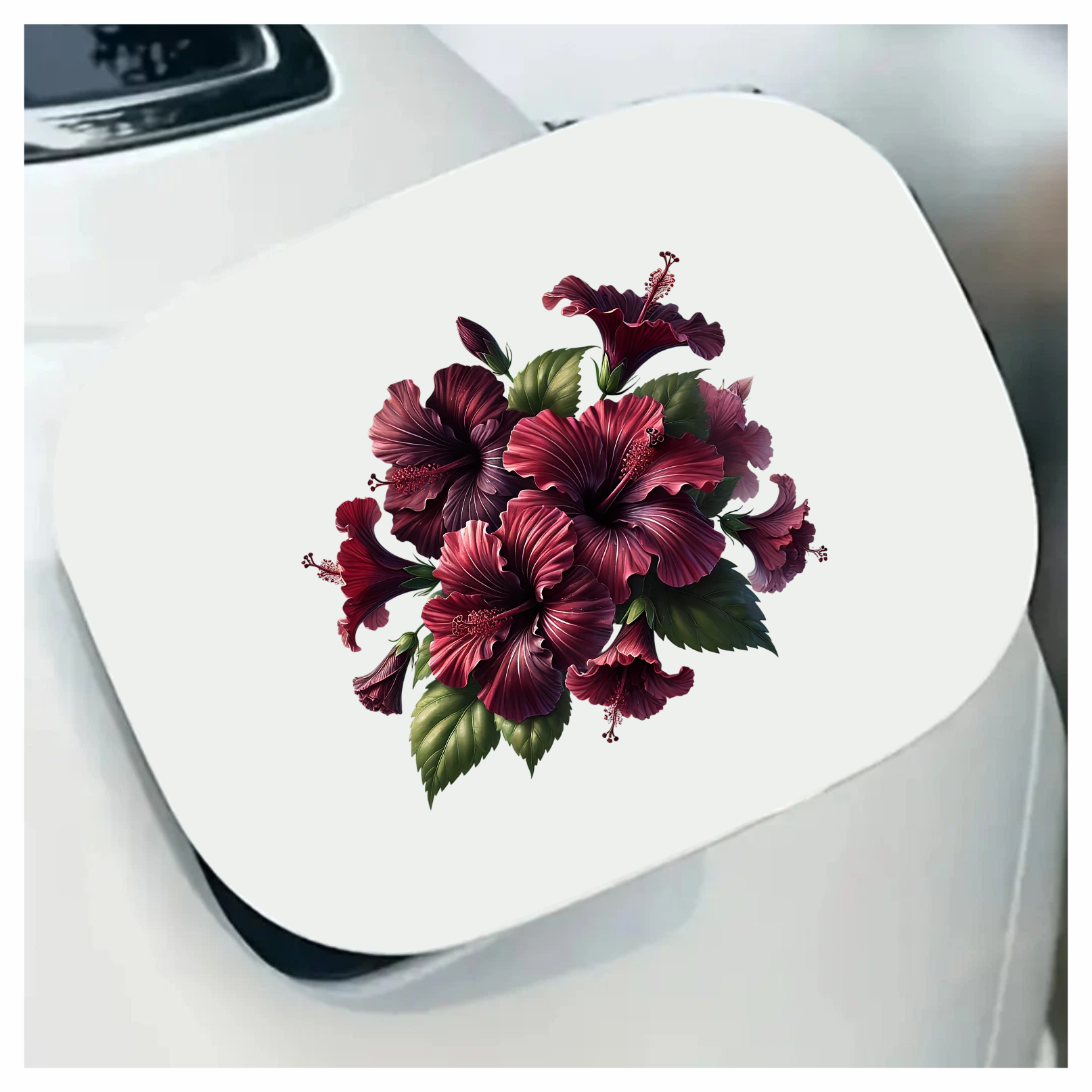 Red Hibiscus Flowers Green Leaves Vinyl Sticker Decal