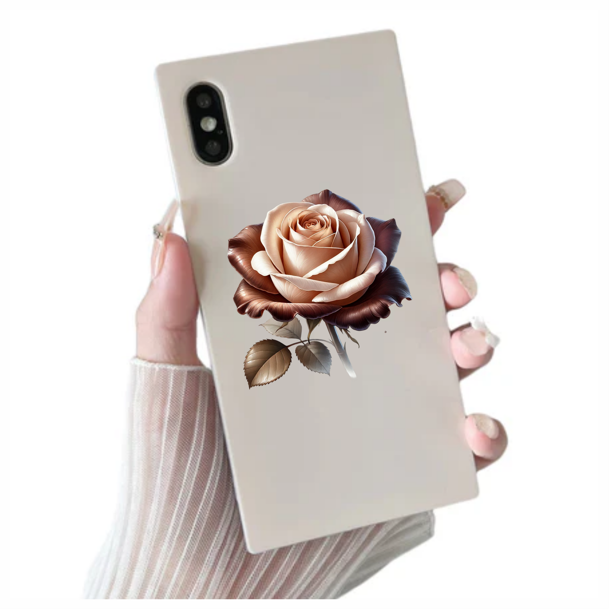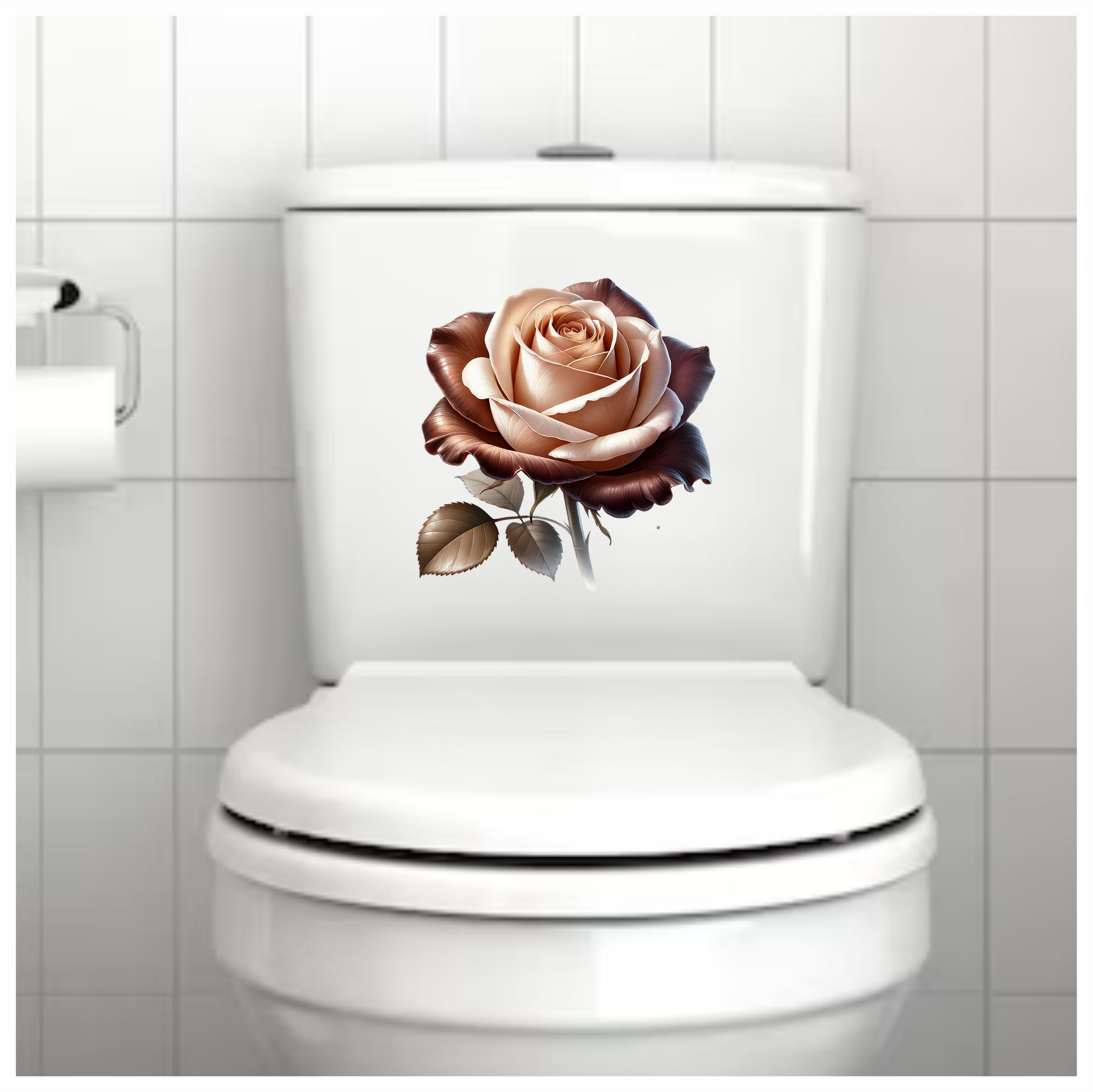 Brown Cream Rose Flower Leaves Vinyl Sticker Decal