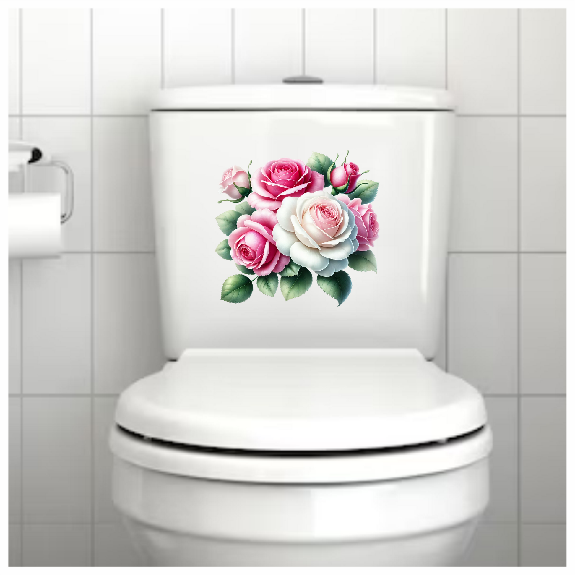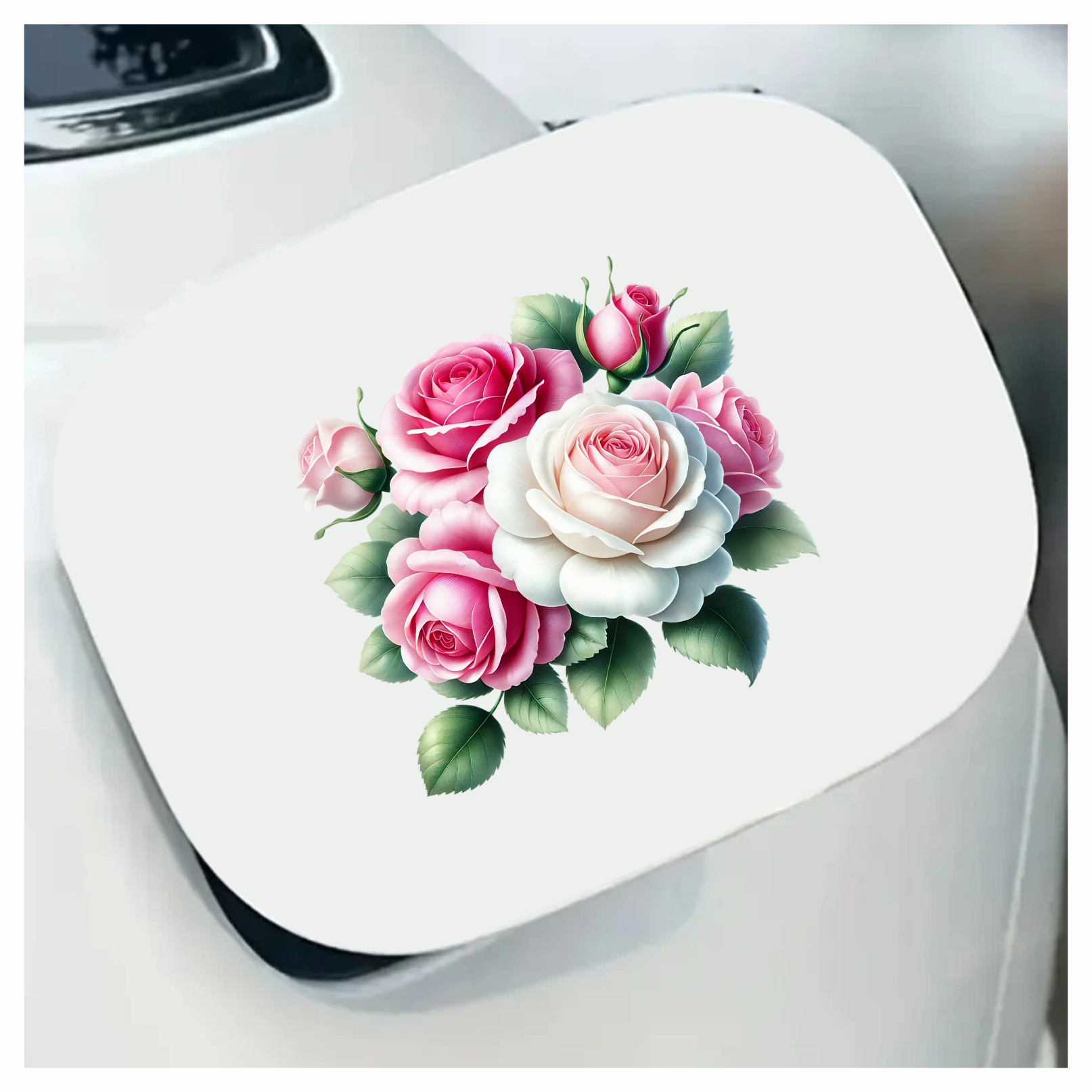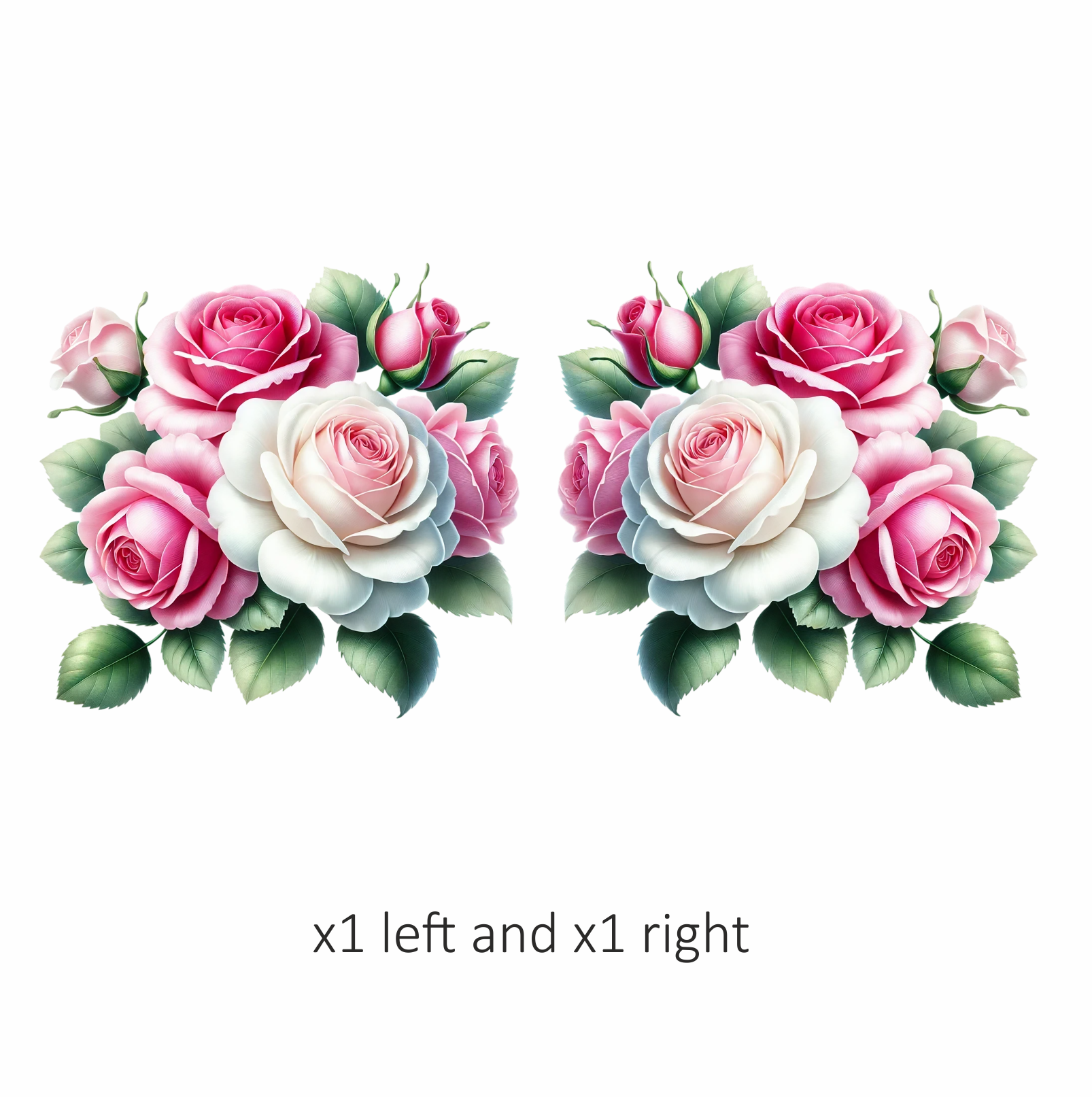 Pink White Roses Green Leaves Vinyl Sticker Decal