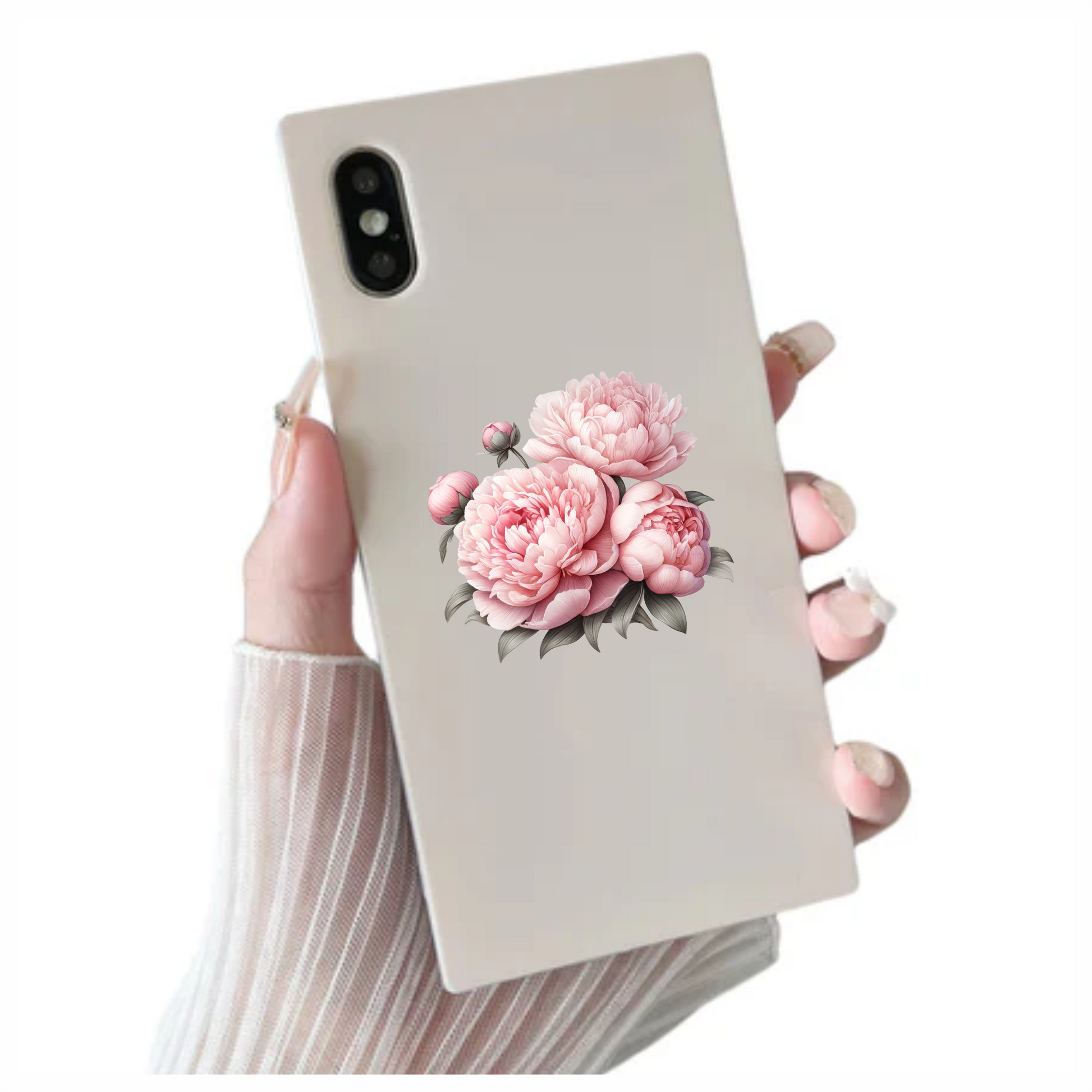 Pink Peony Flower Bouquet Leaves Vinyl Sticker Decal