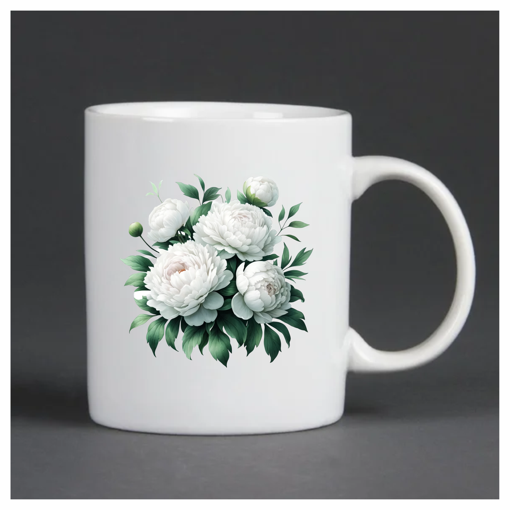White Peony Flowers Green Leaves Vinyl Sticker Decal