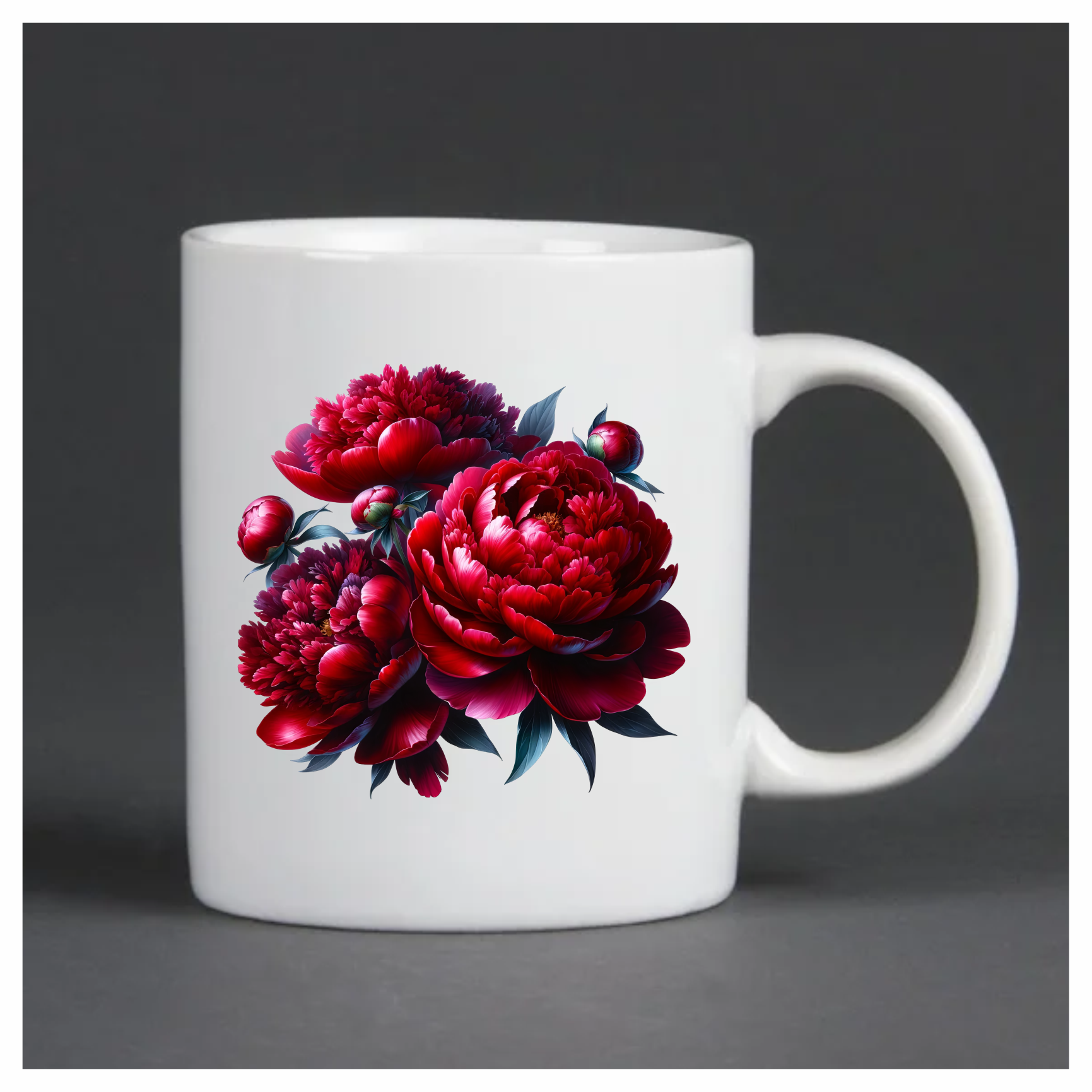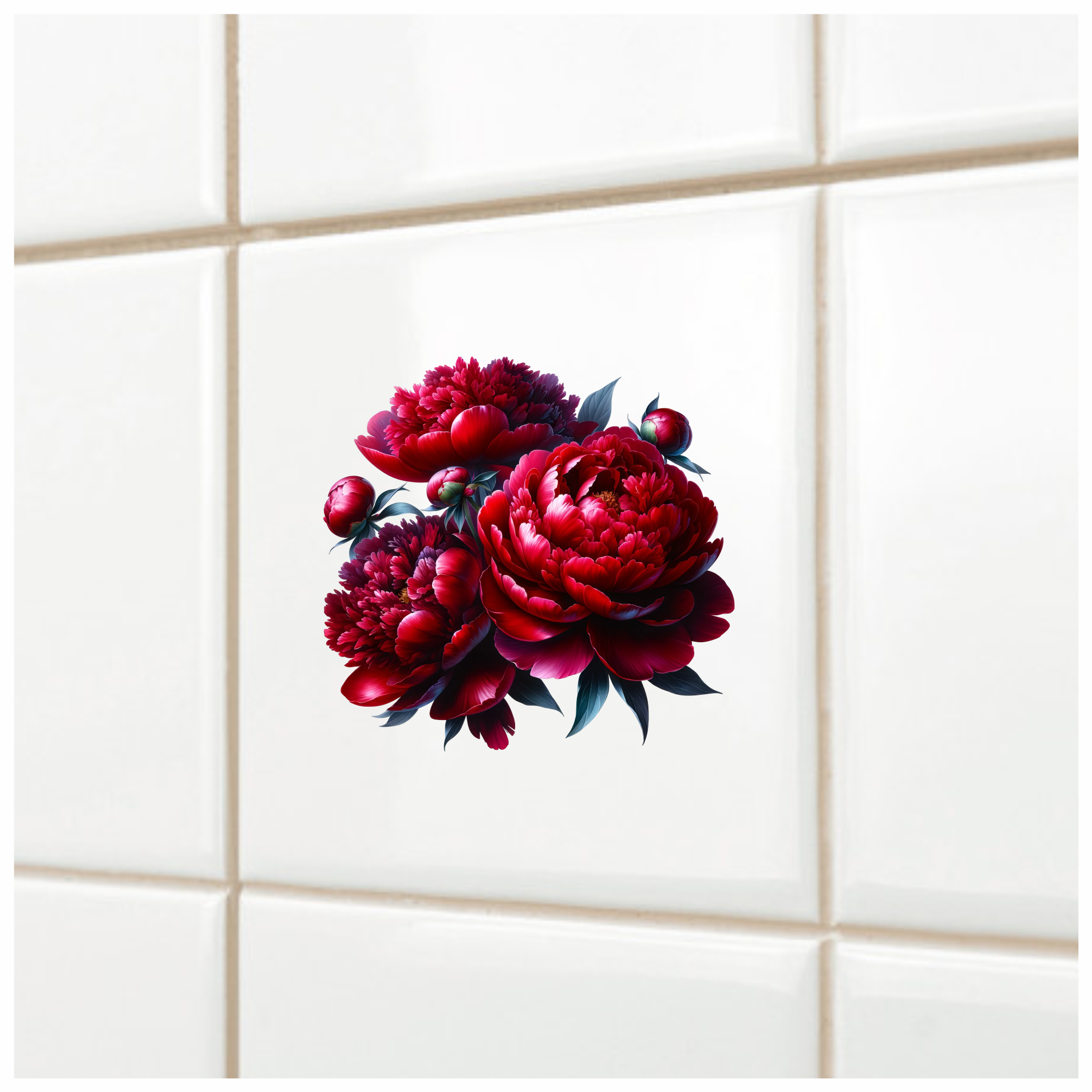 Red Flowers Blooming Green Leaves Vinyl Sticker Decal