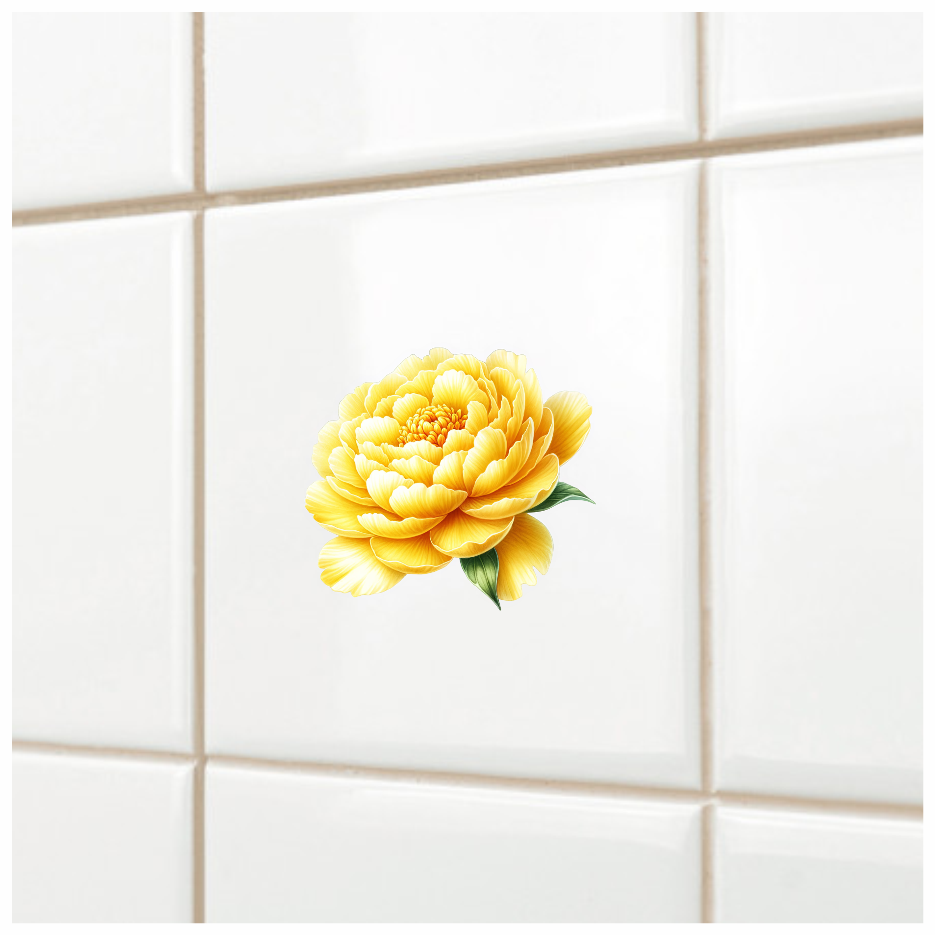 Yellow Flower Large Petals Green Leaves Vinyl Sticker Decal