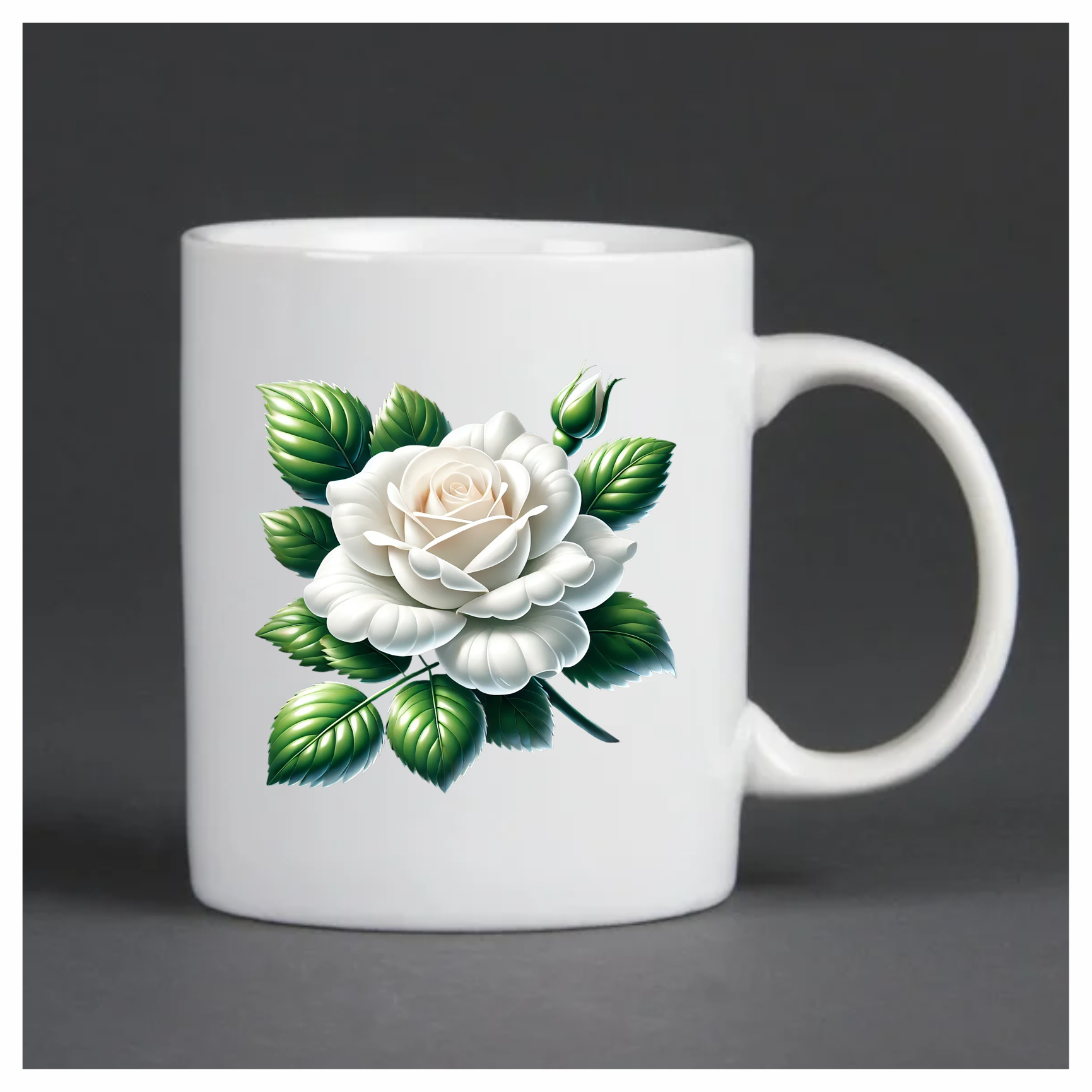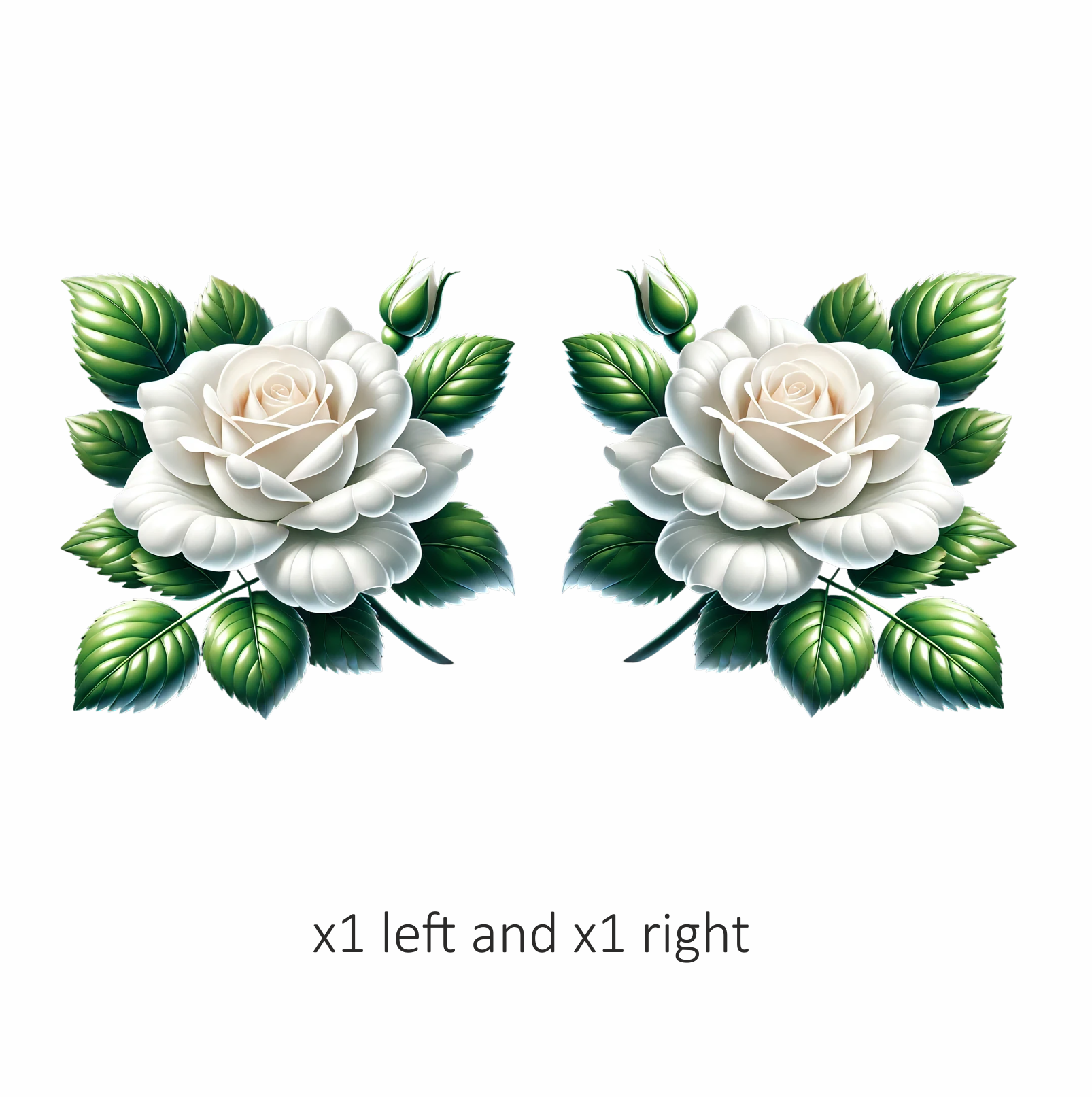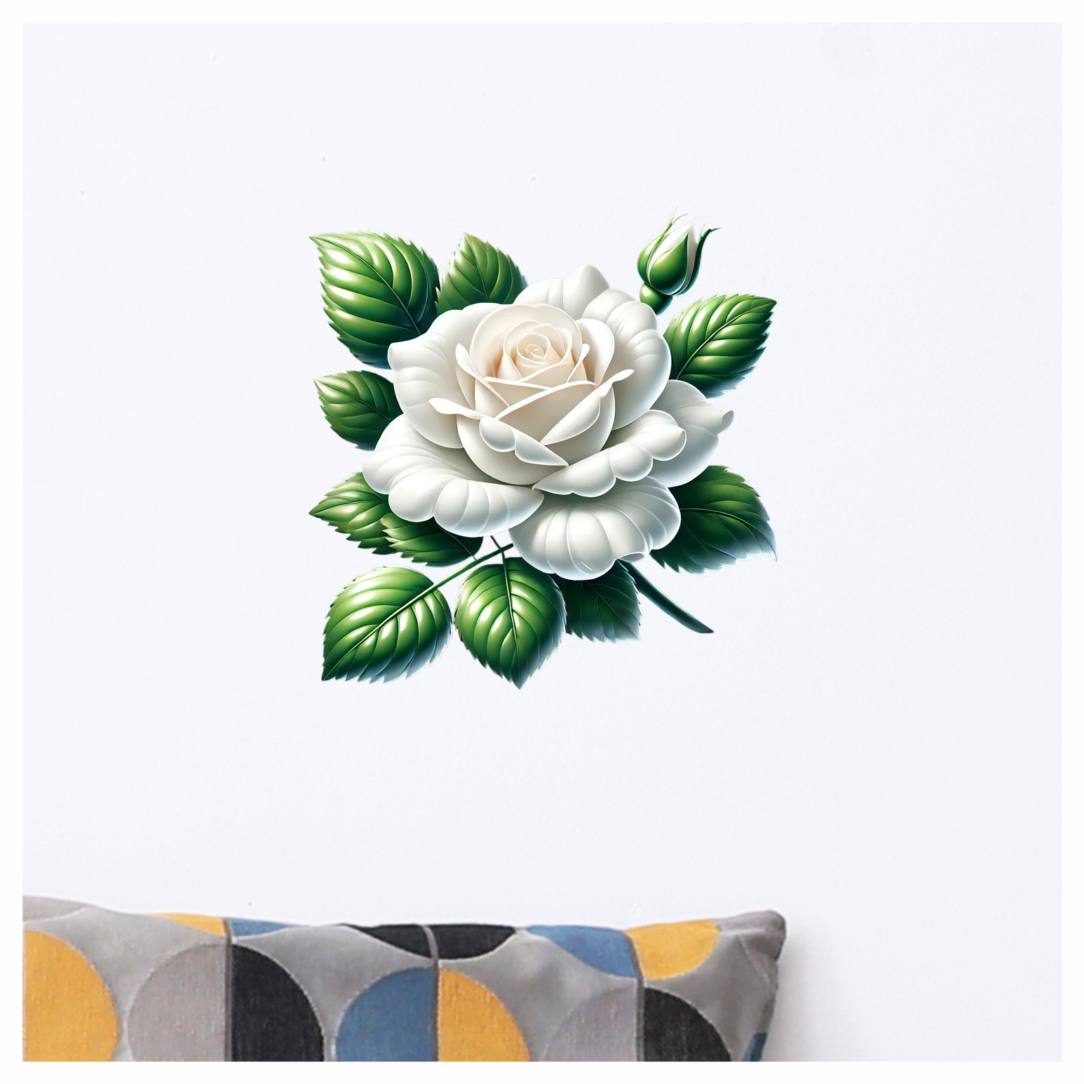 White Rose Green Leaves Blooming Vinyl Sticker Decal