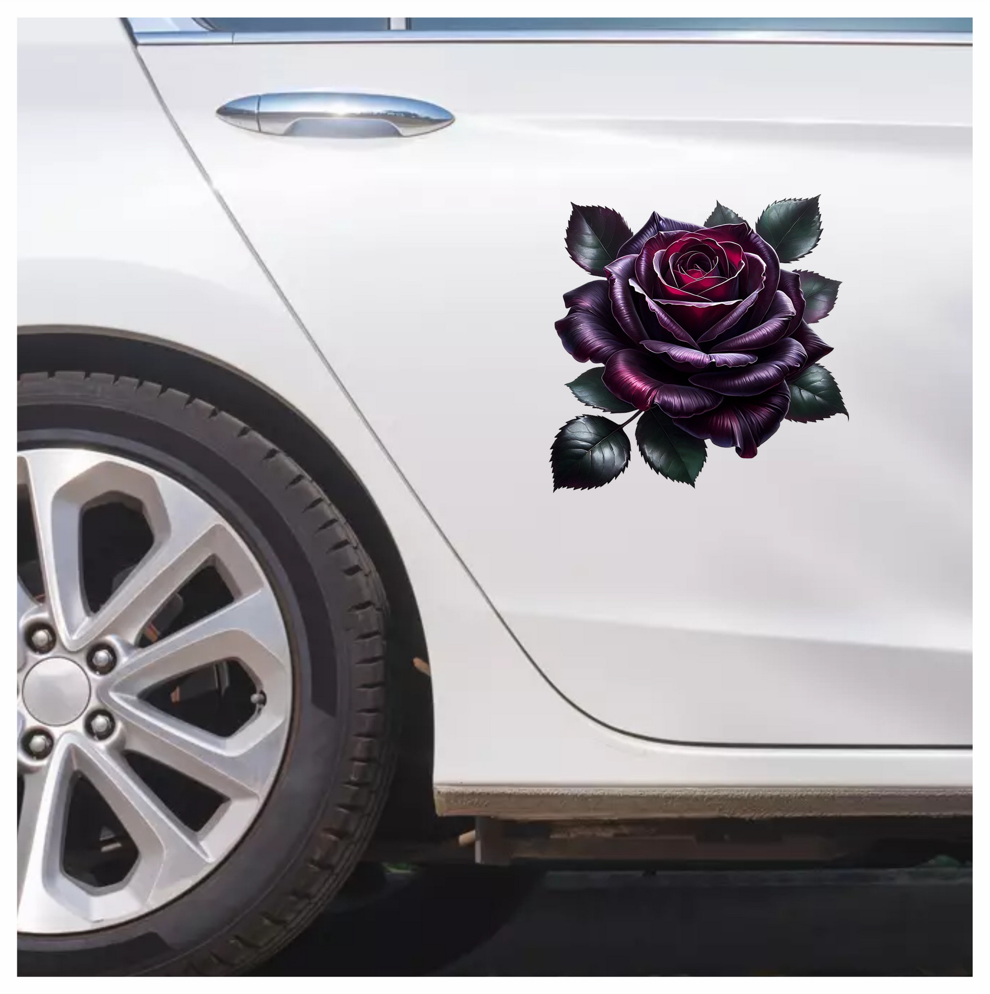 Purple Rose Green Leaves Flower Vinyl Sticker Decal