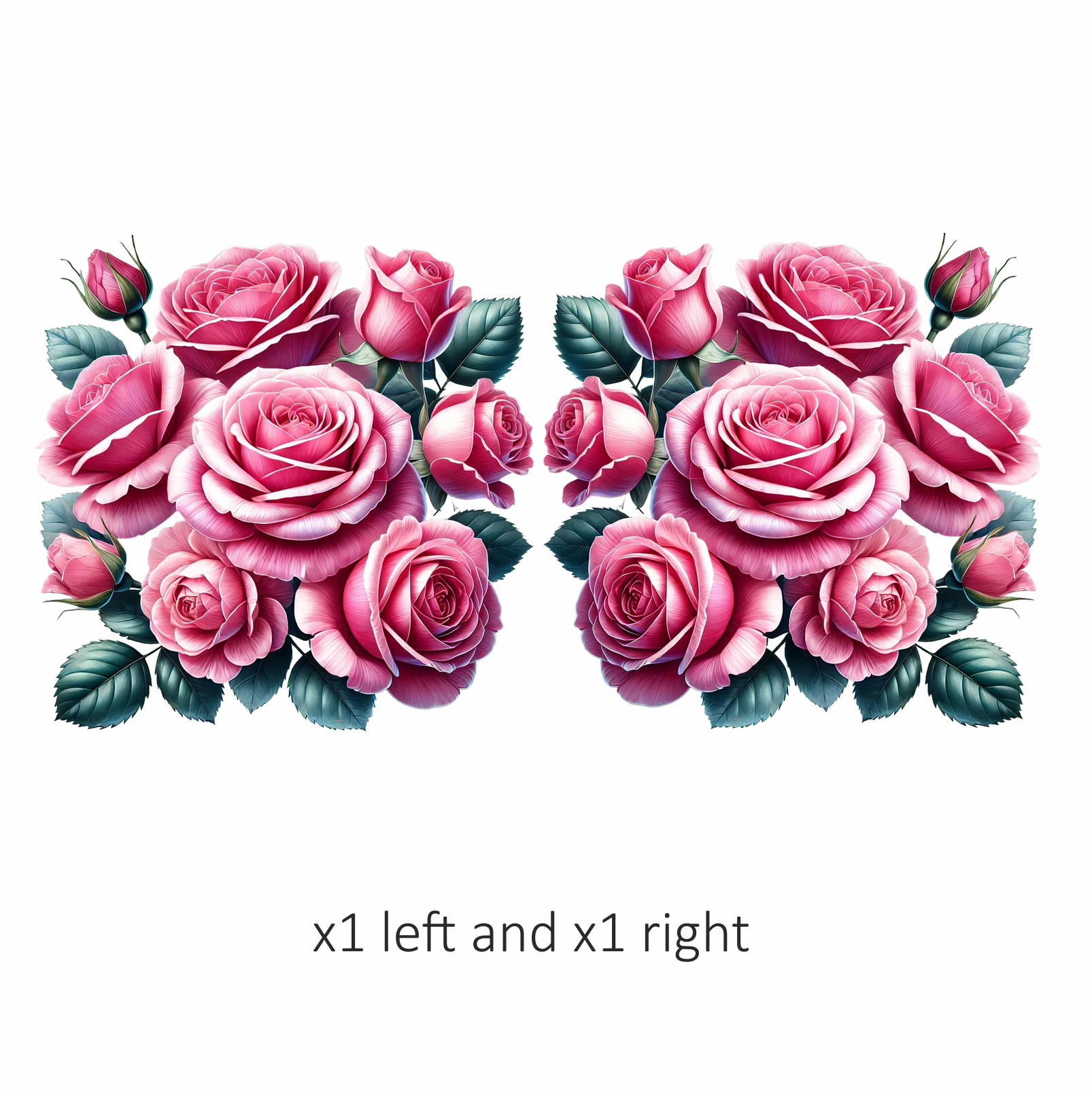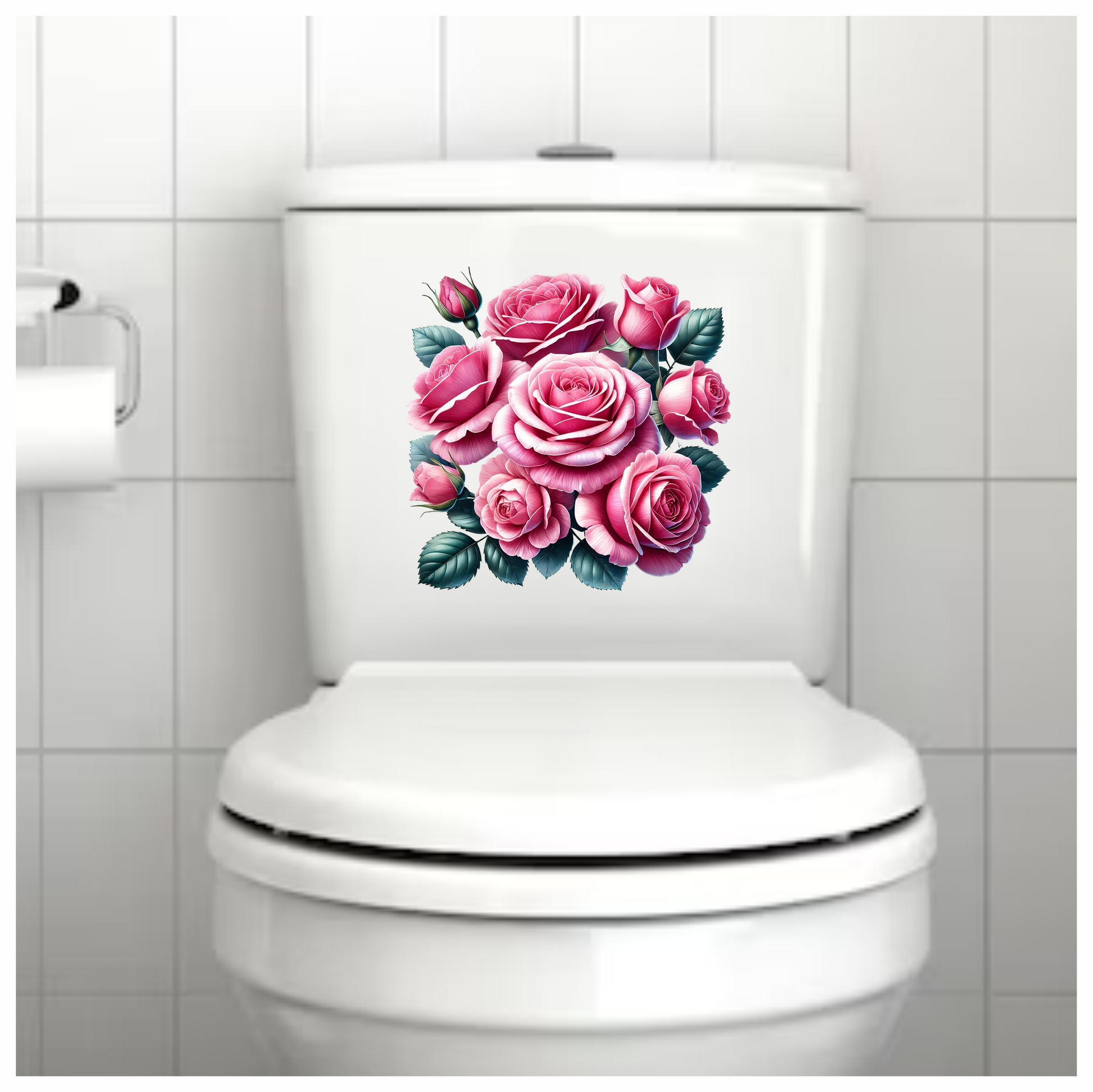 Pink Roses Blooming Green Leaves Vinyl Sticker Decal