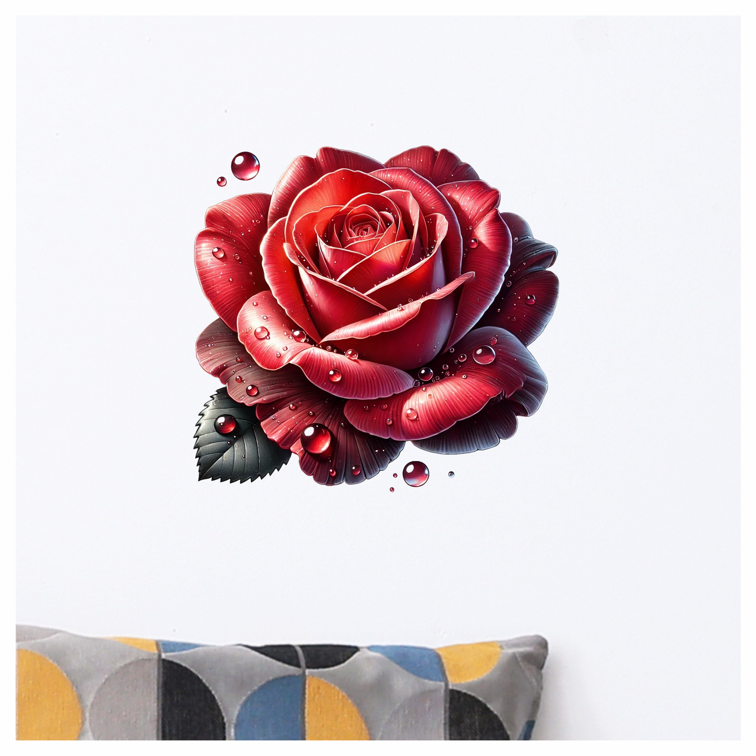 Red Rose Petals Water Drops Vinyl Sticker Decal