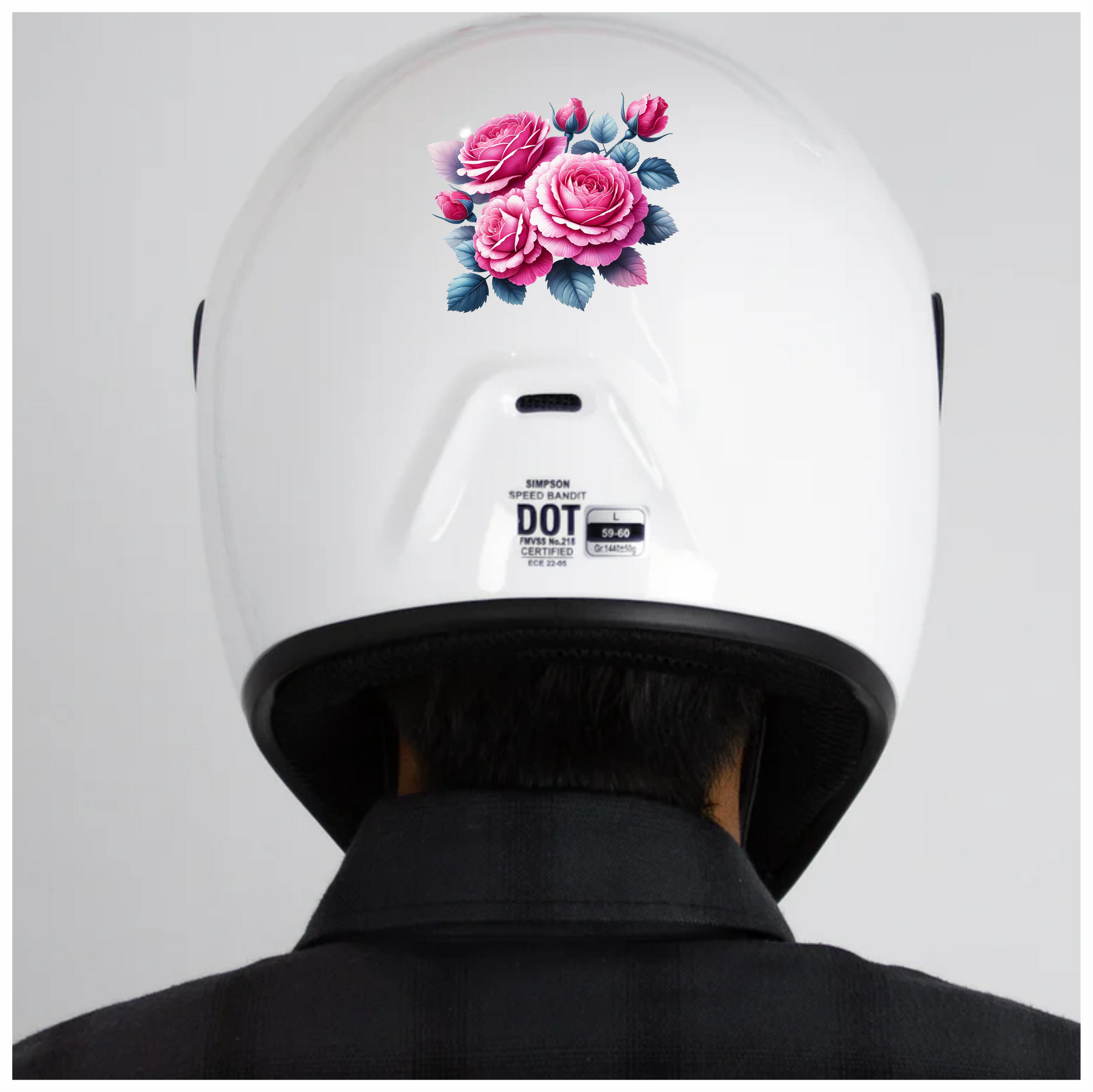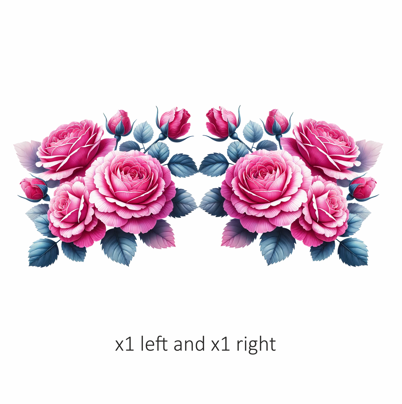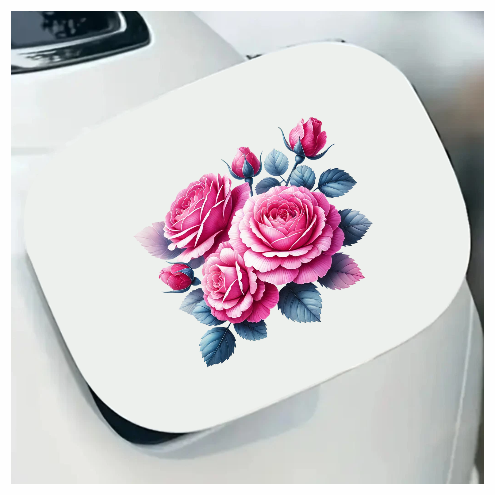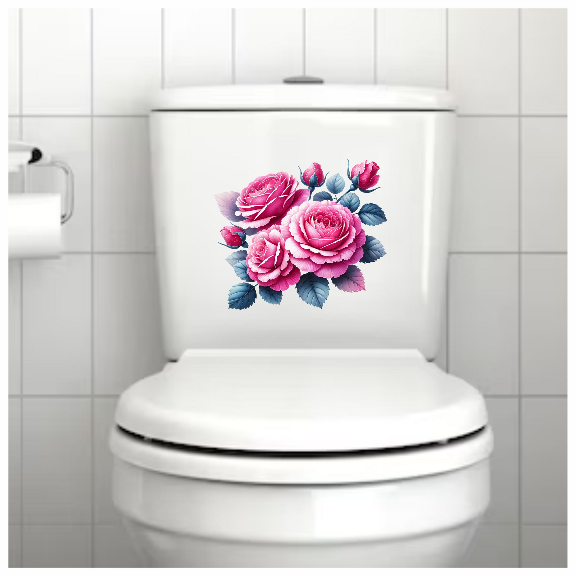 Pink Roses Blue Leaves Floral Vinyl Sticker Decal