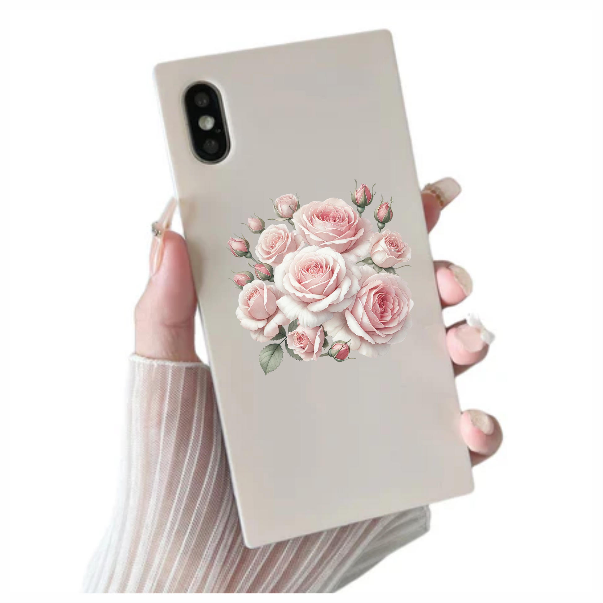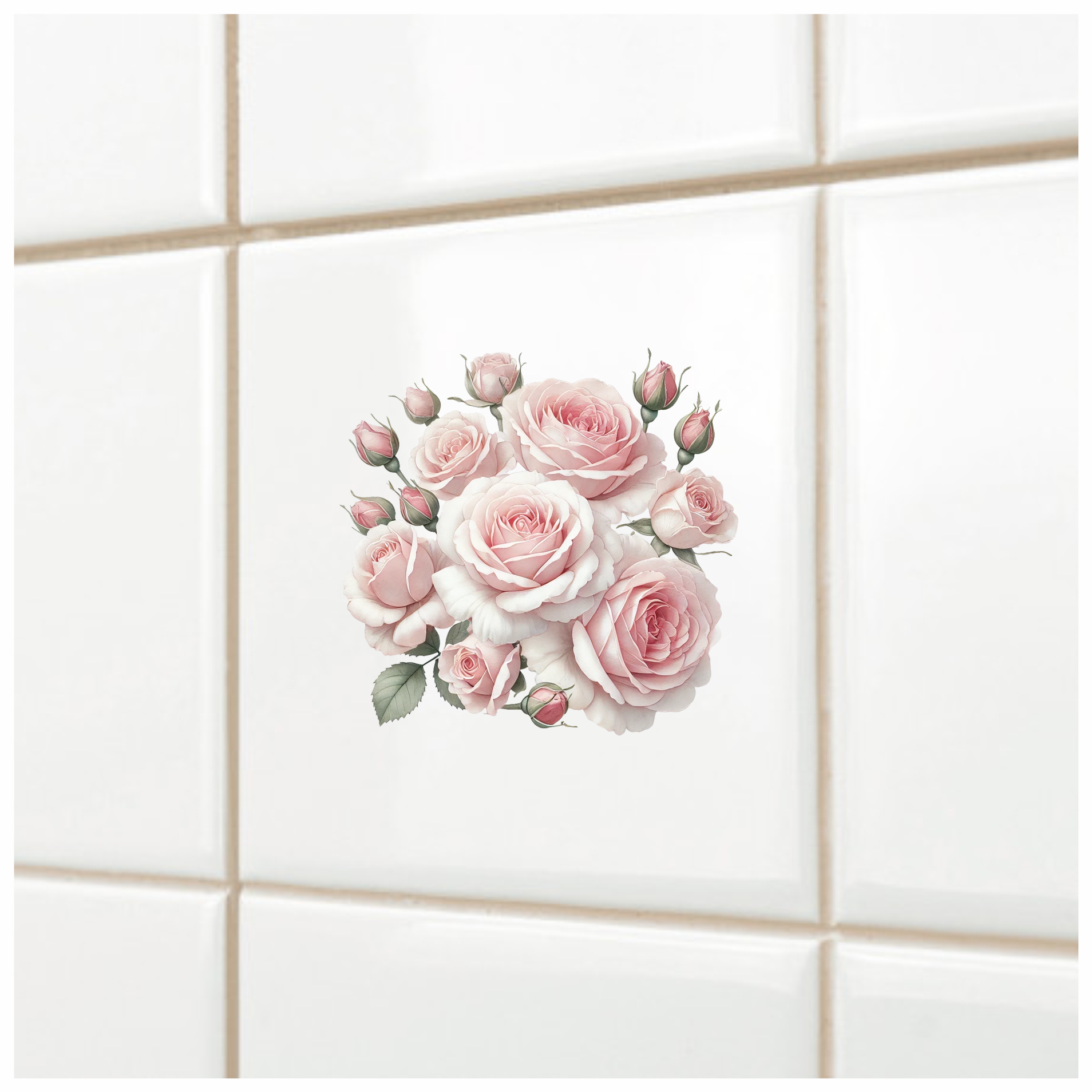 Pink Roses Blooming Flower Cluster Vinyl Sticker Decal
