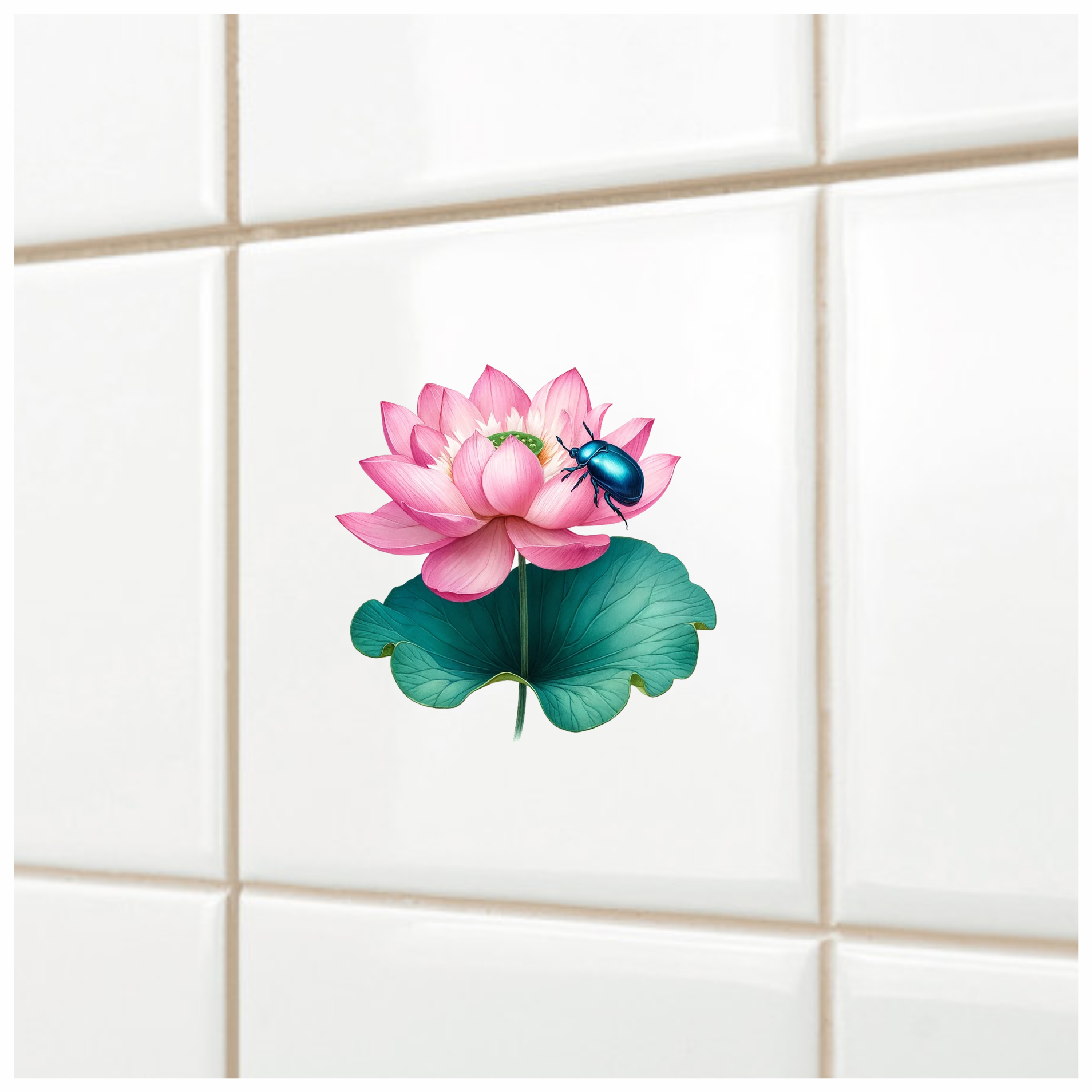 Pink Lotus Leaf Blue Beetle Vinyl Sticker Decal