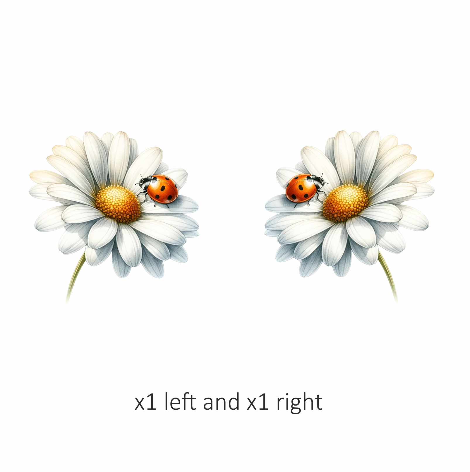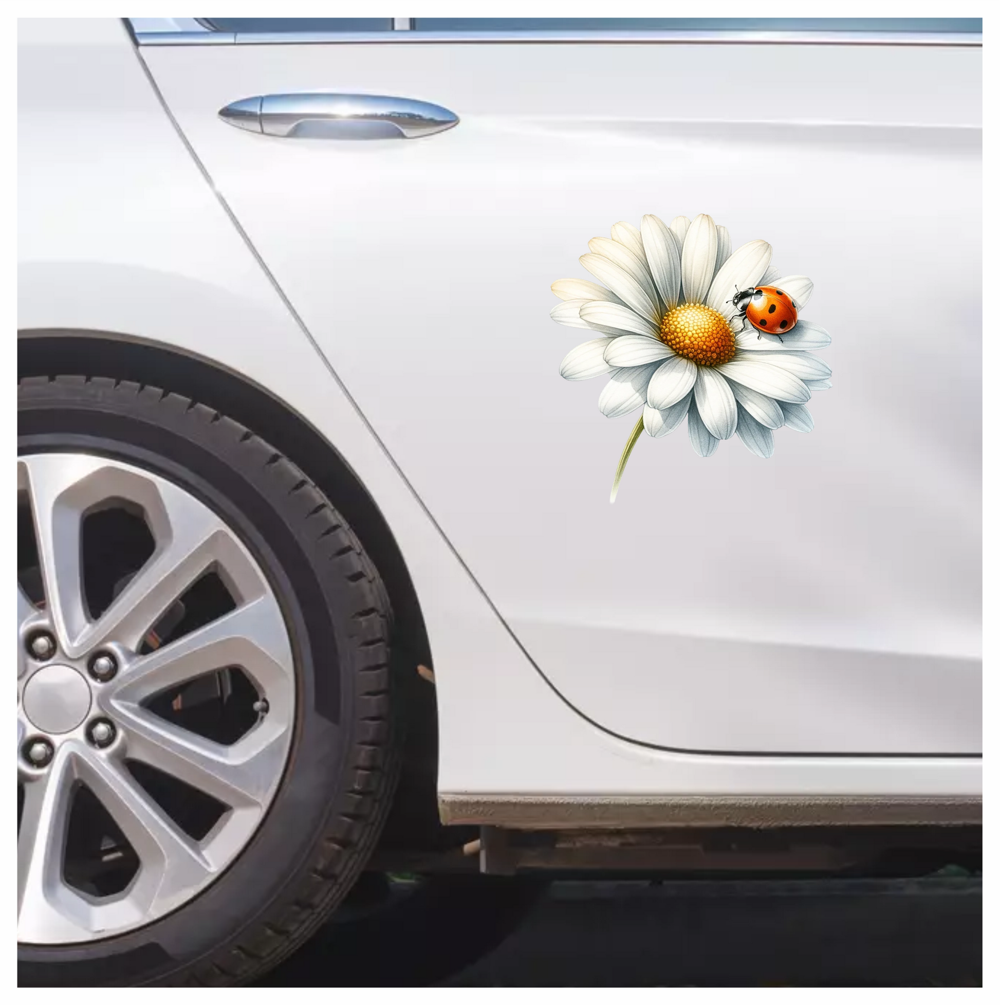 White Daisy Yellow Center Red Ladybug Vinyl Sticker Decal