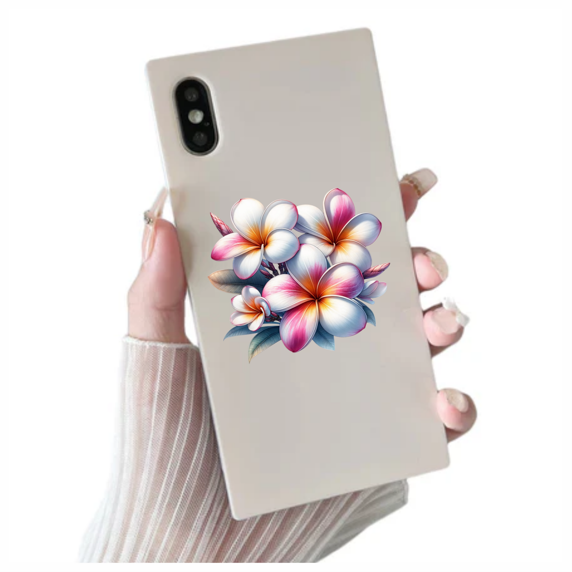 Bunch of Pink & White Plumeria Flowers Vinyl Decal Sticker