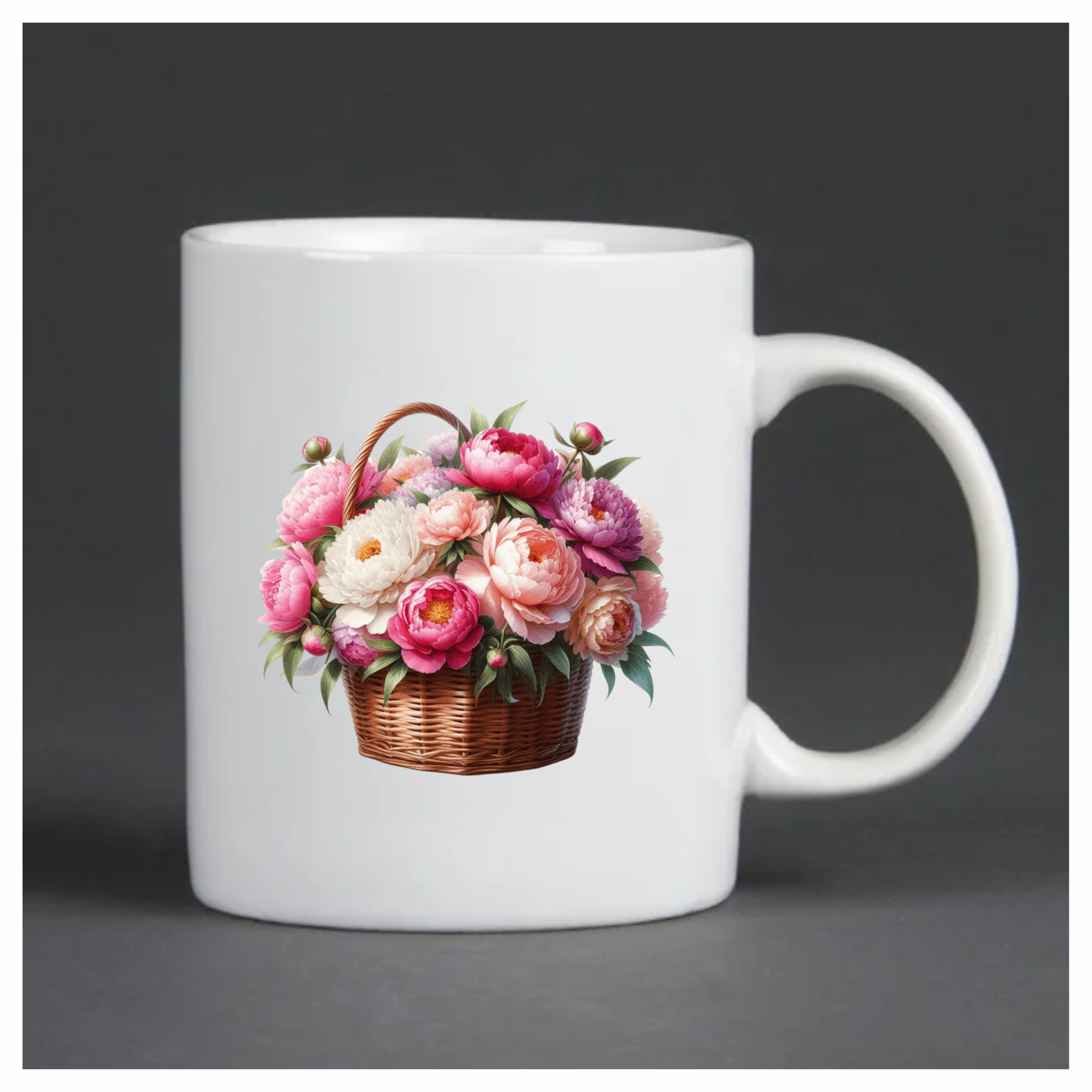 Pink White Basket Flowers Arrangement Vinyl Sticker Decal