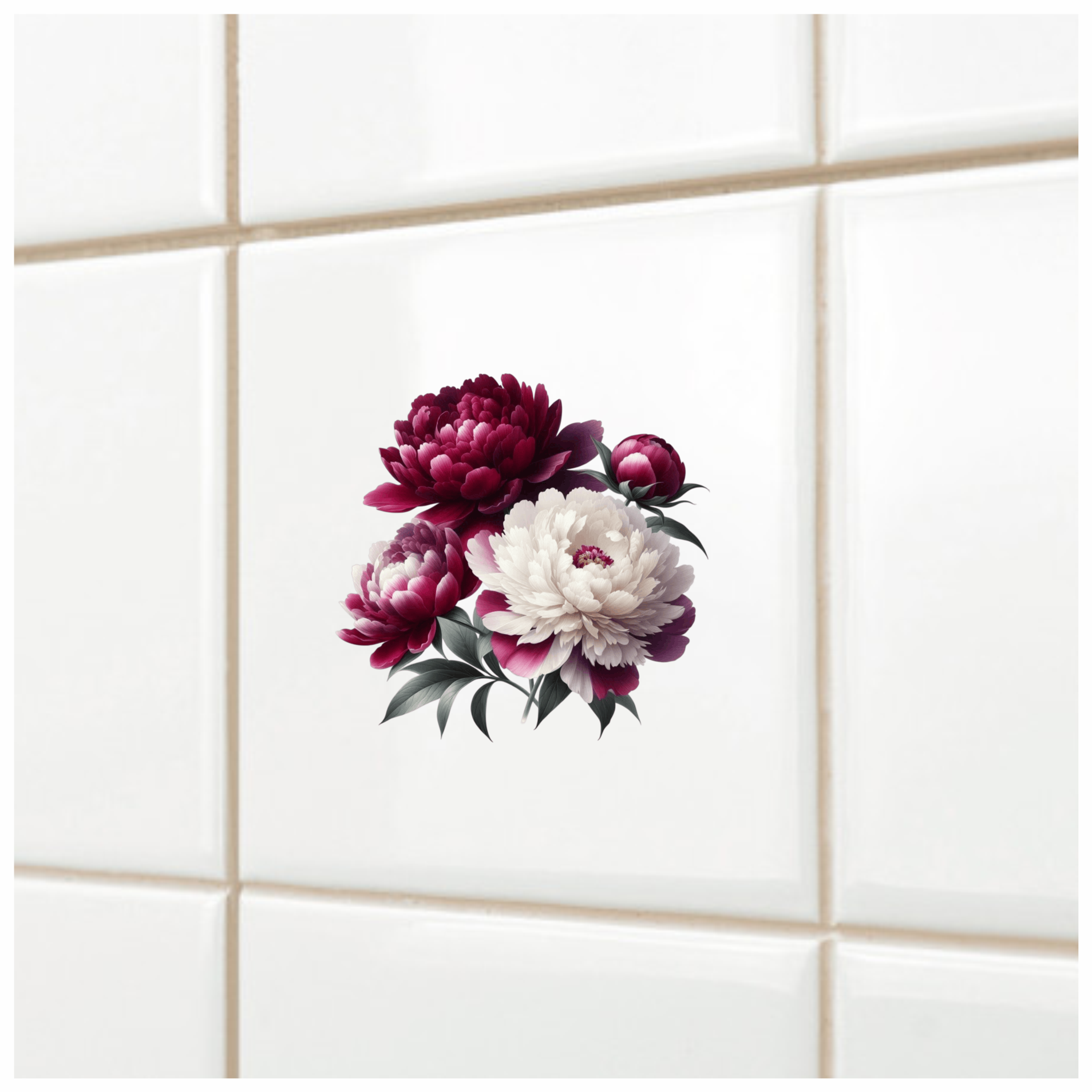 Red White Pink Peony Flowers Vinyl Sticker Decal
