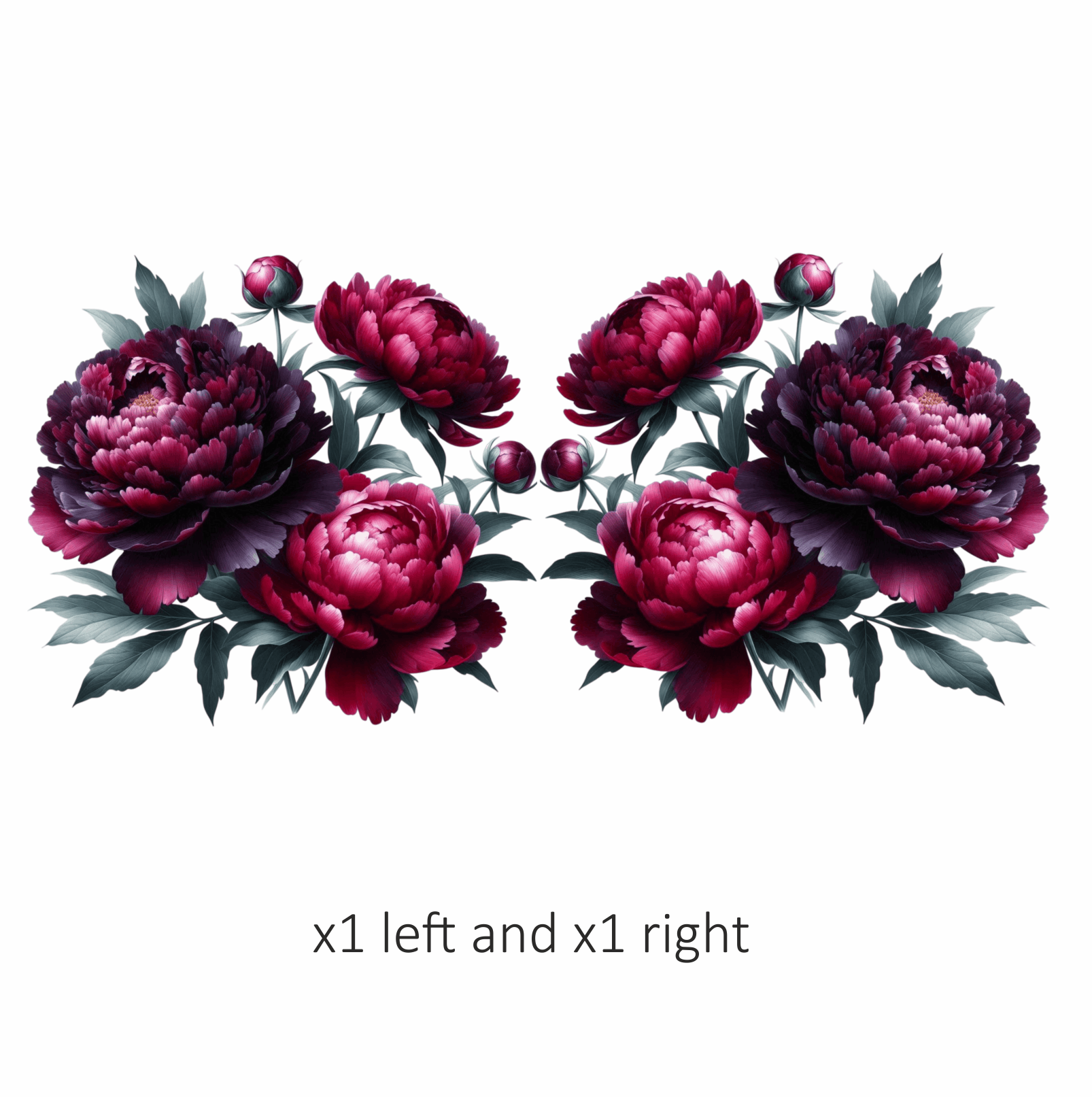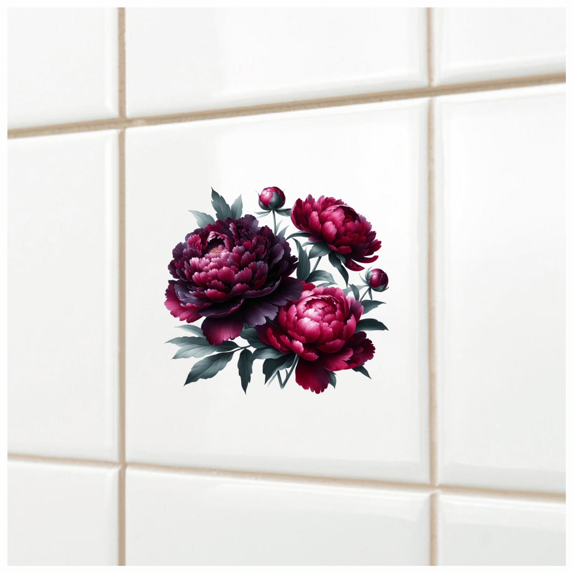 Dark Red Peony Flowers Green Leaves Vinyl Sticker Decal