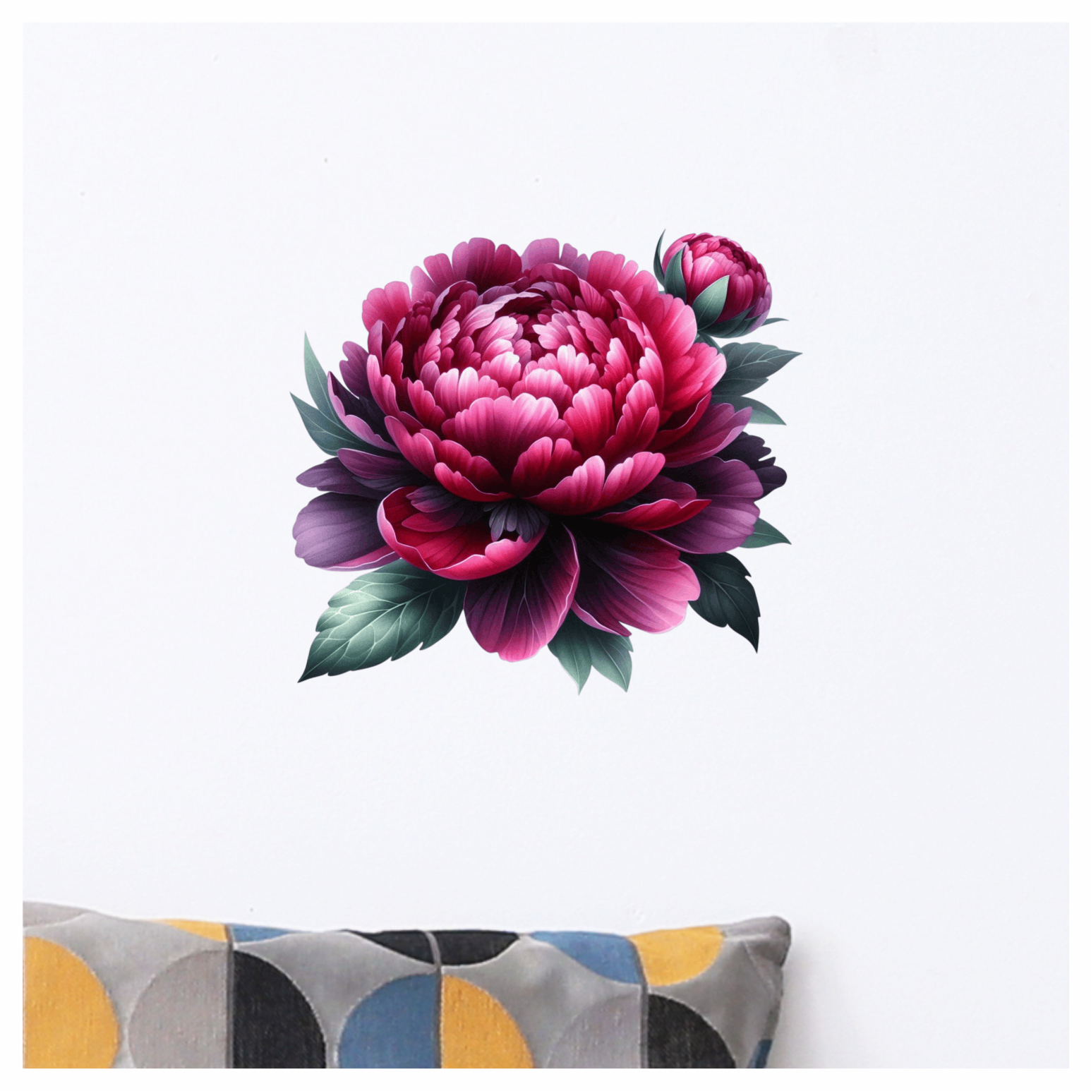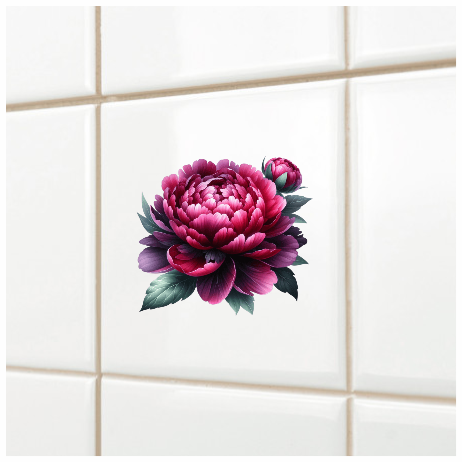 Red Flower Bloom Green Leaves Vinyl Sticker Decal
