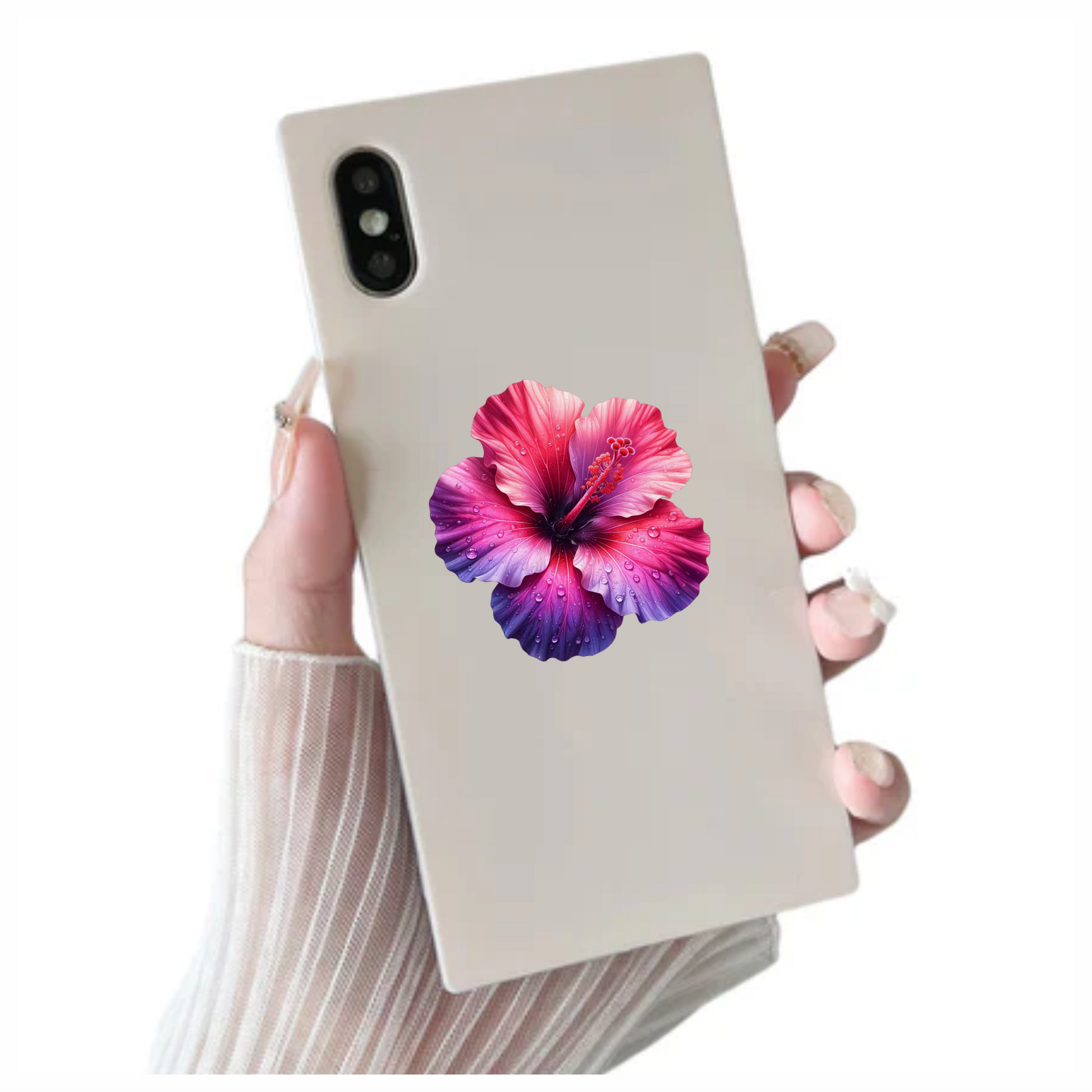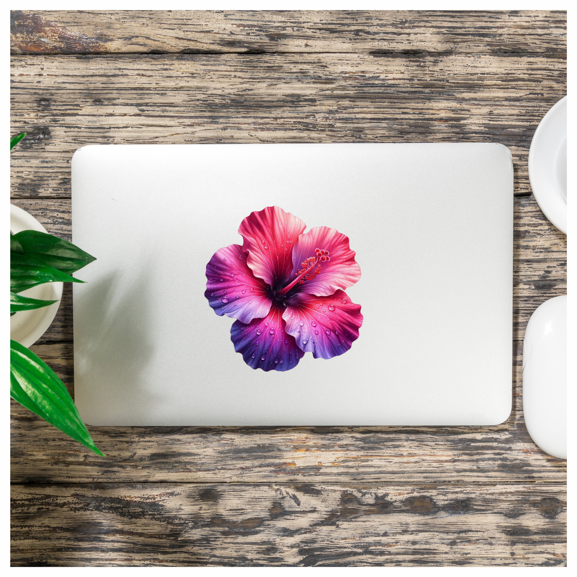 Pink Hibiscus Flower With Water Vinyl Sticker Decal
