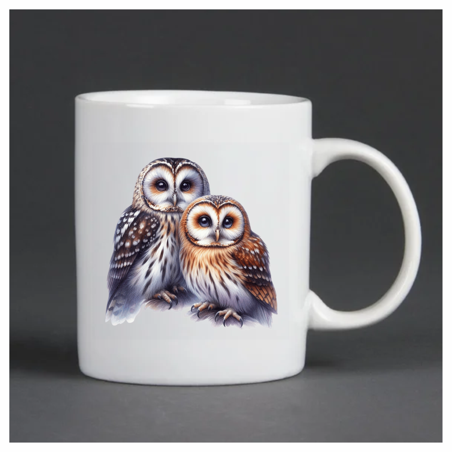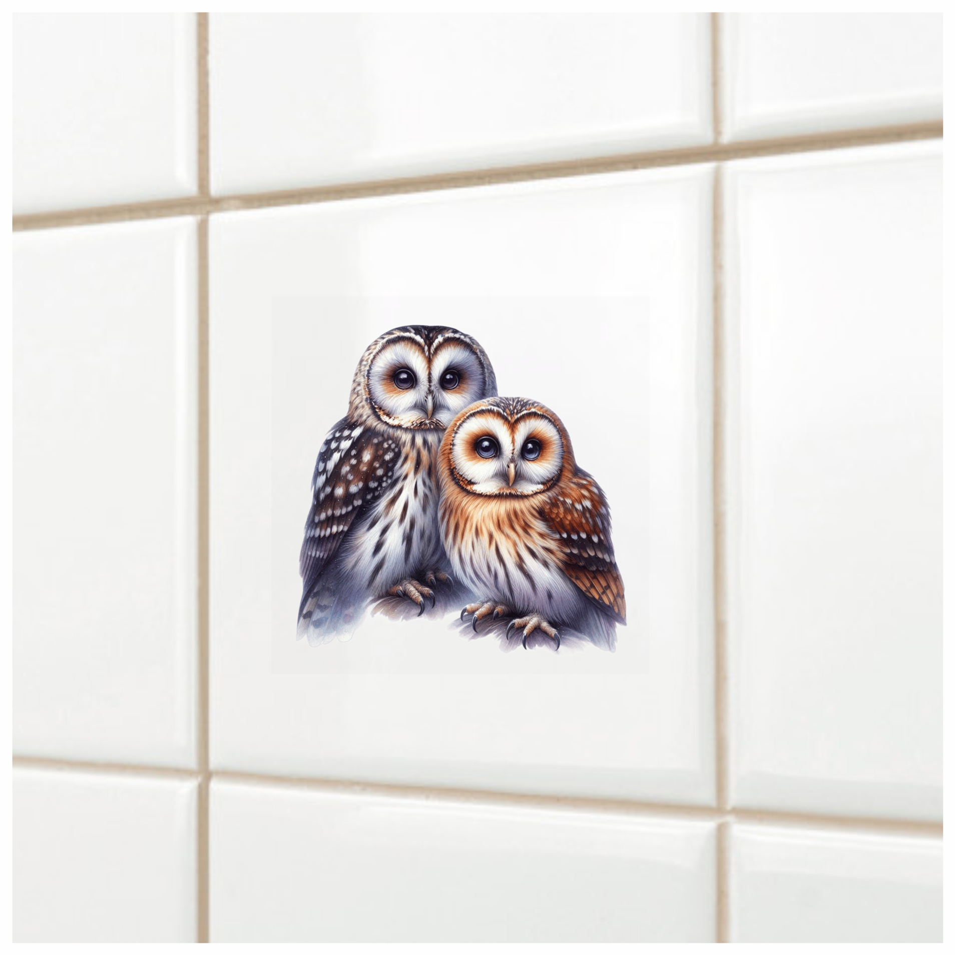 Brown Owl White Owl Together Pair Vinyl Sticker Decal