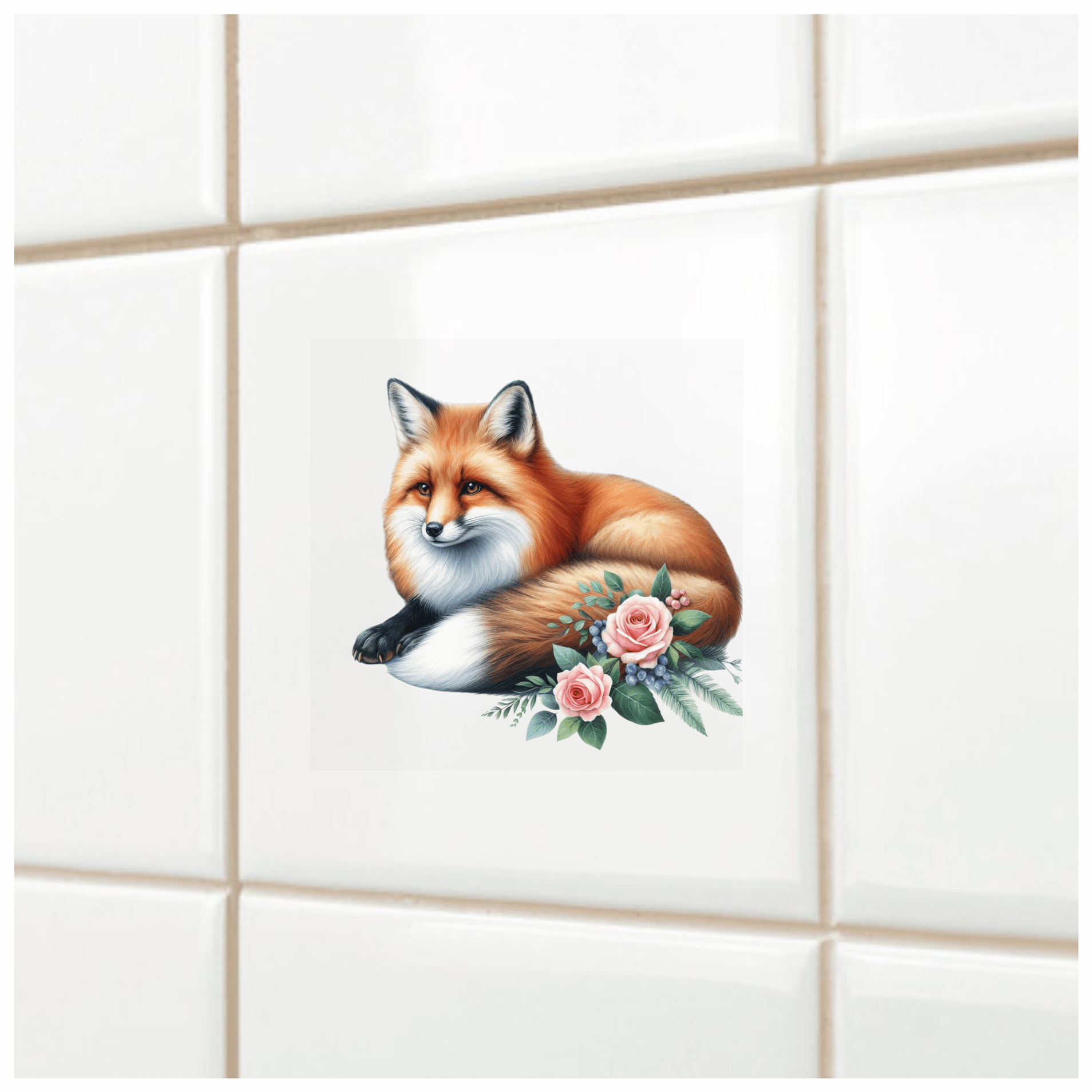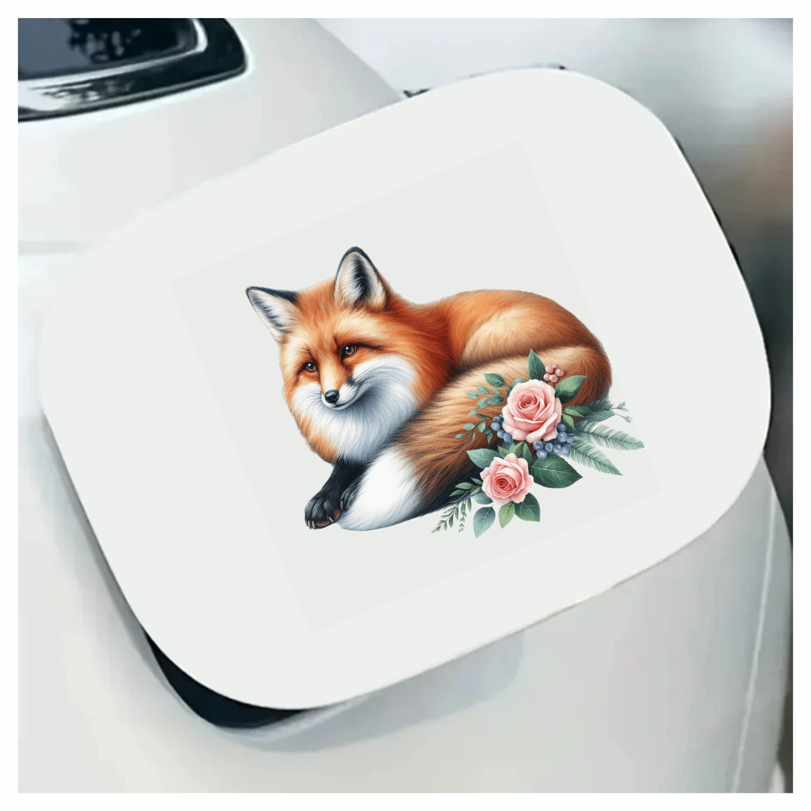 Orange Fox Lying Roses Flowers Vinyl Sticker Decal