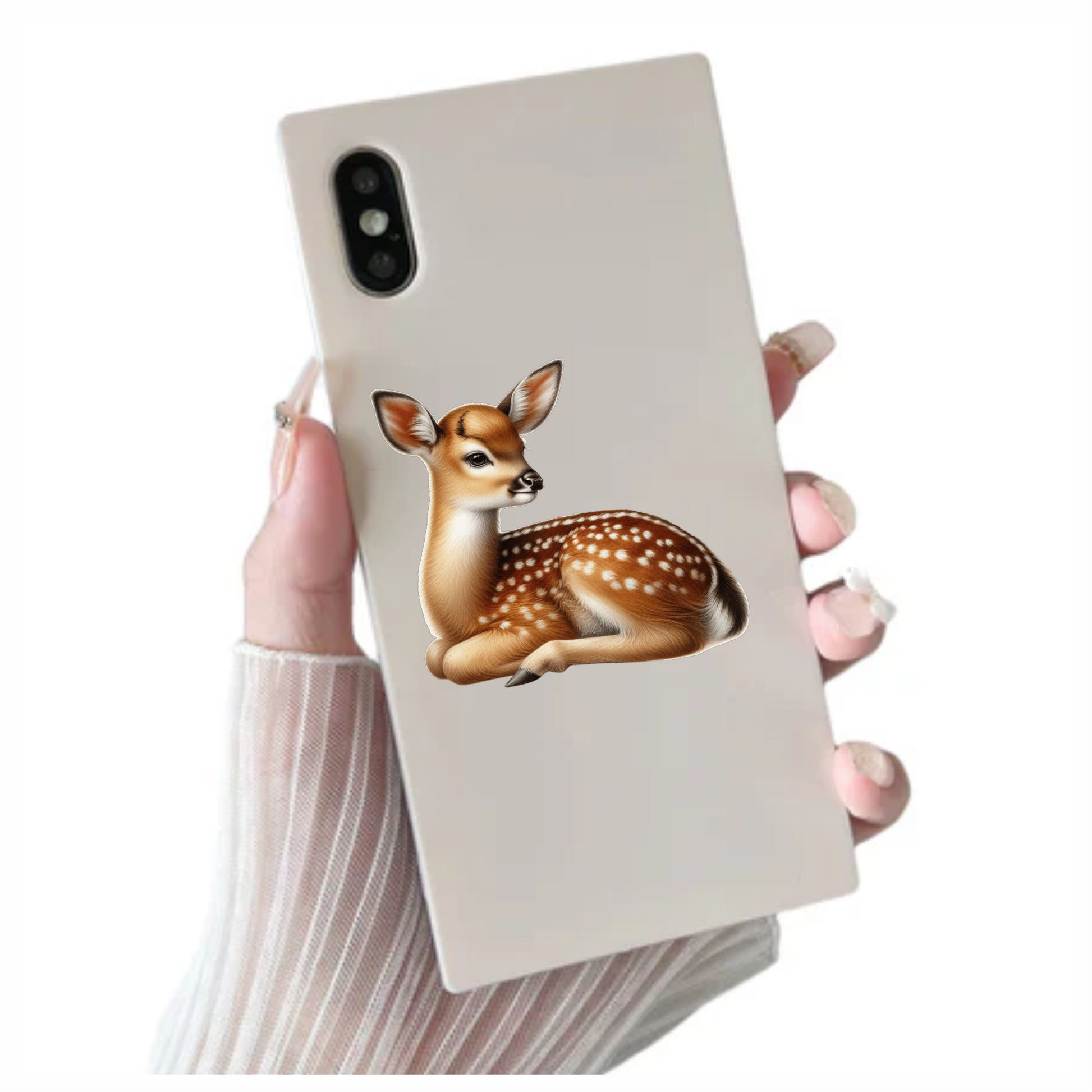 Brown Baby Deer Fawn Sitting Vinyl Sticker Decal