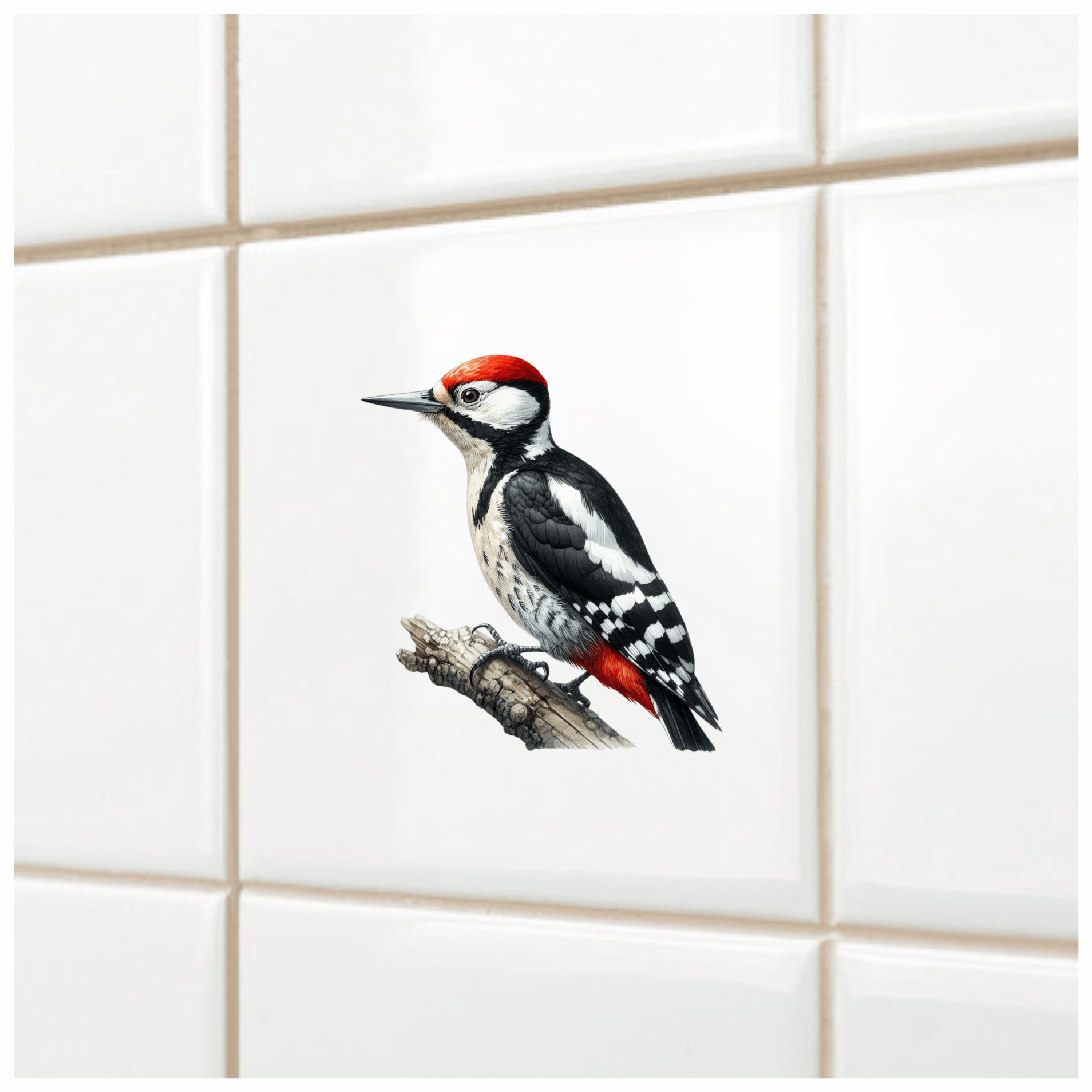 Woodpecker Red White Black Tree Vinyl Sticker Decal