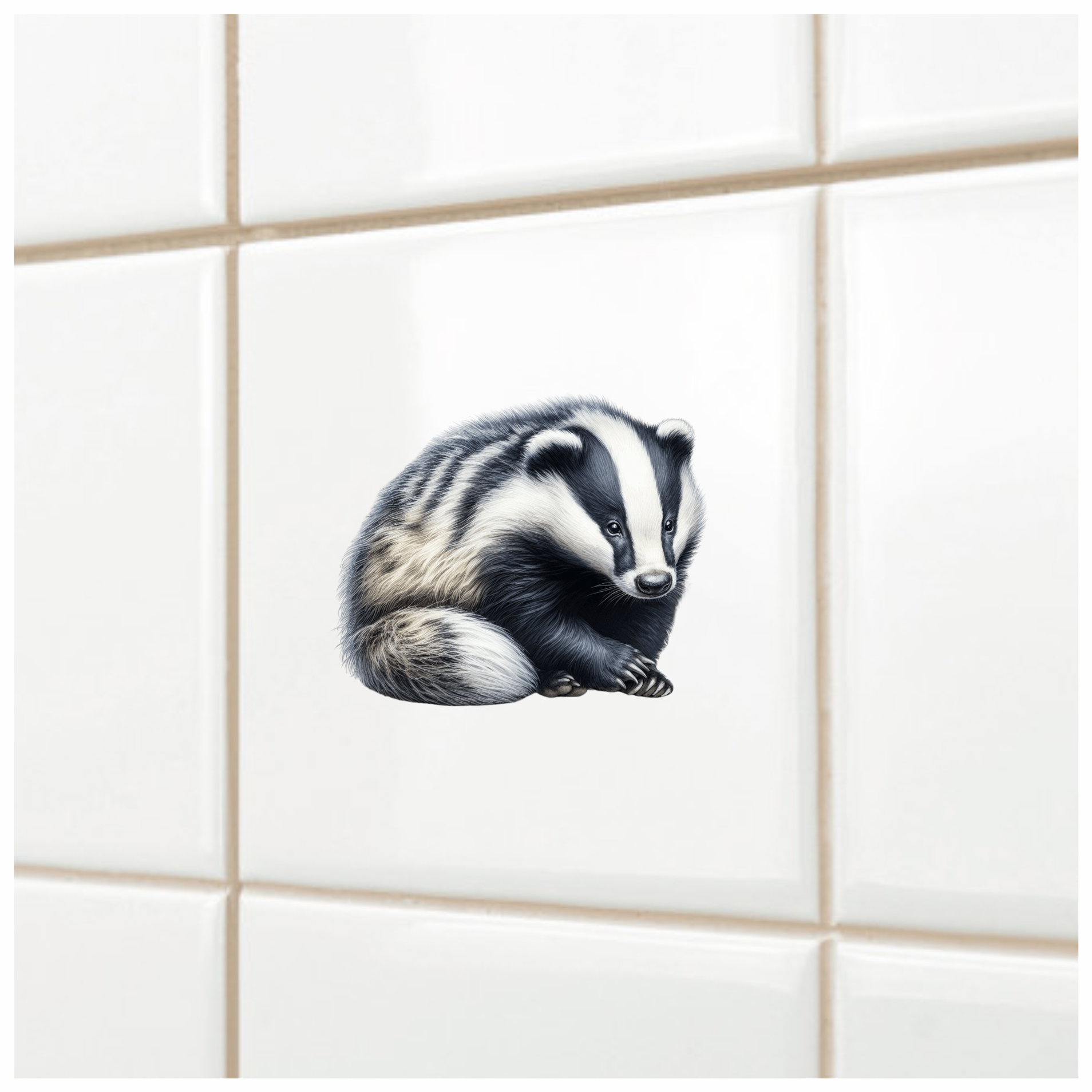 Badger Black White Fur Sitting Vinyl Sticker Decal