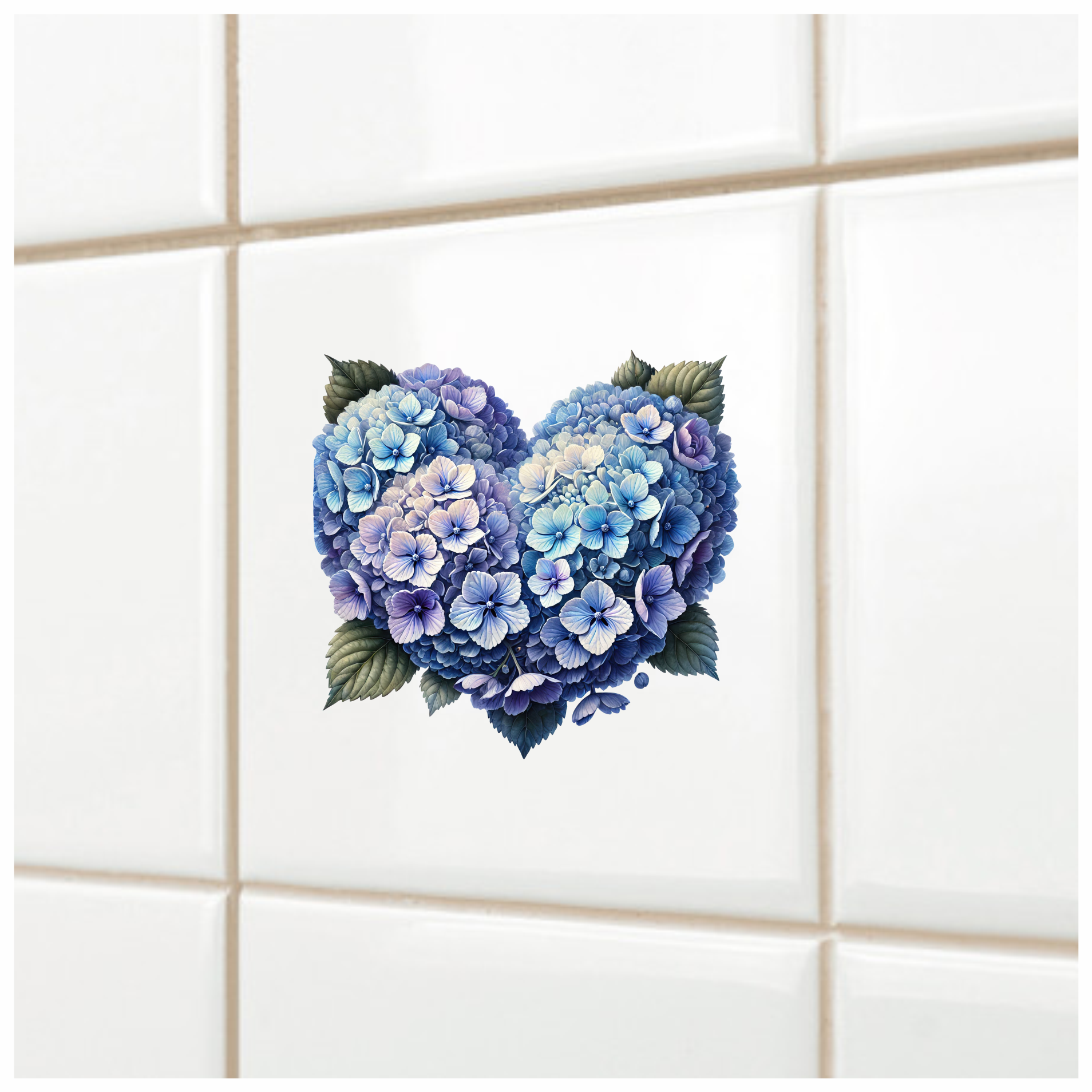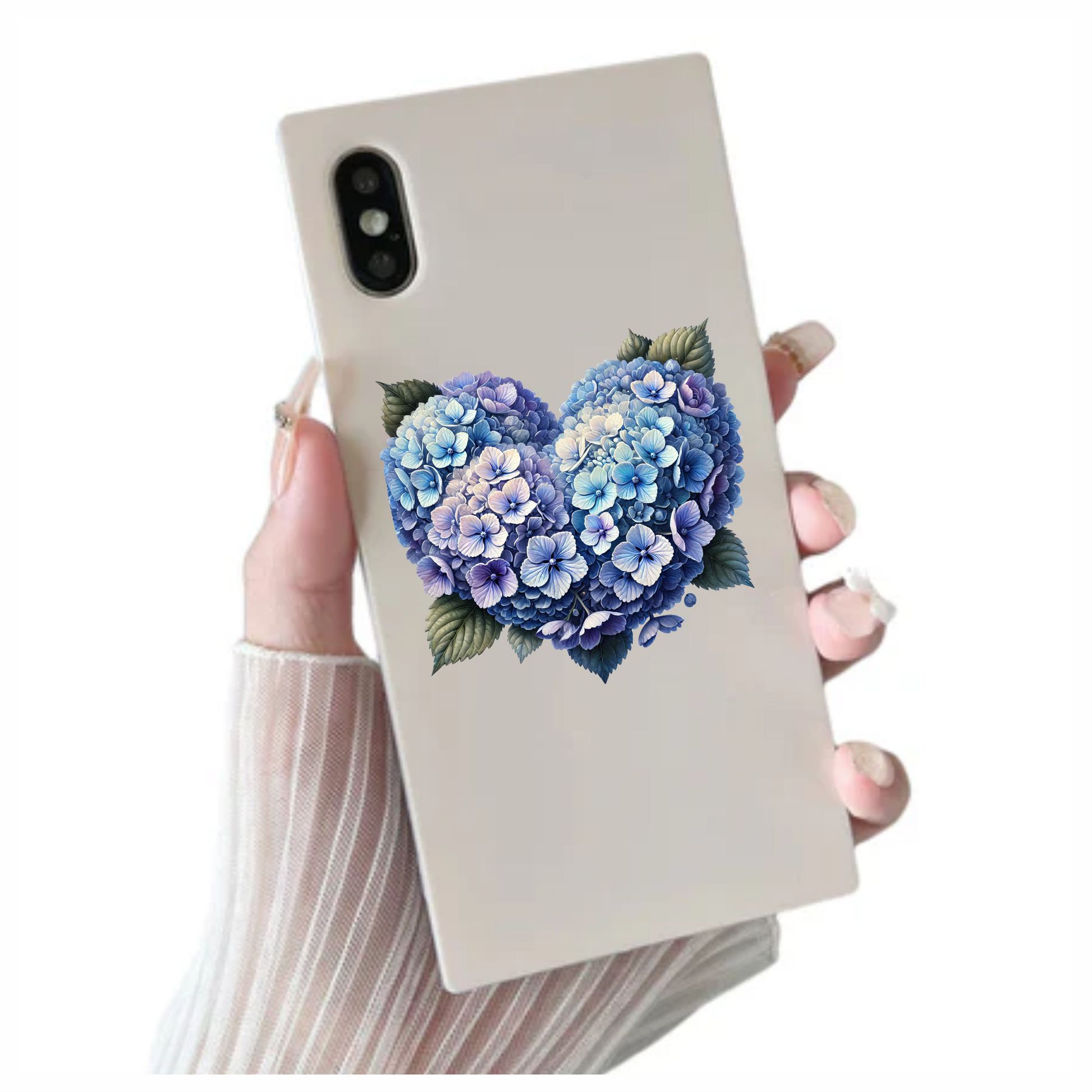 Blue Flowers Heart Leaves Vinyl Sticker Decal