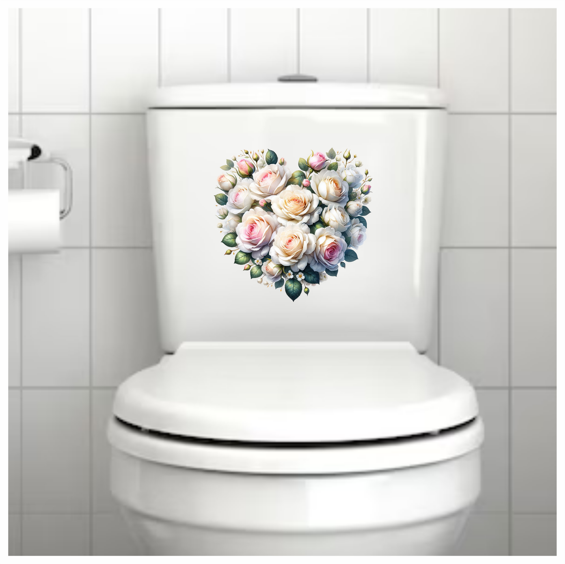 White Roses Pink Leaves Heart Shape Vinyl Sticker Decal