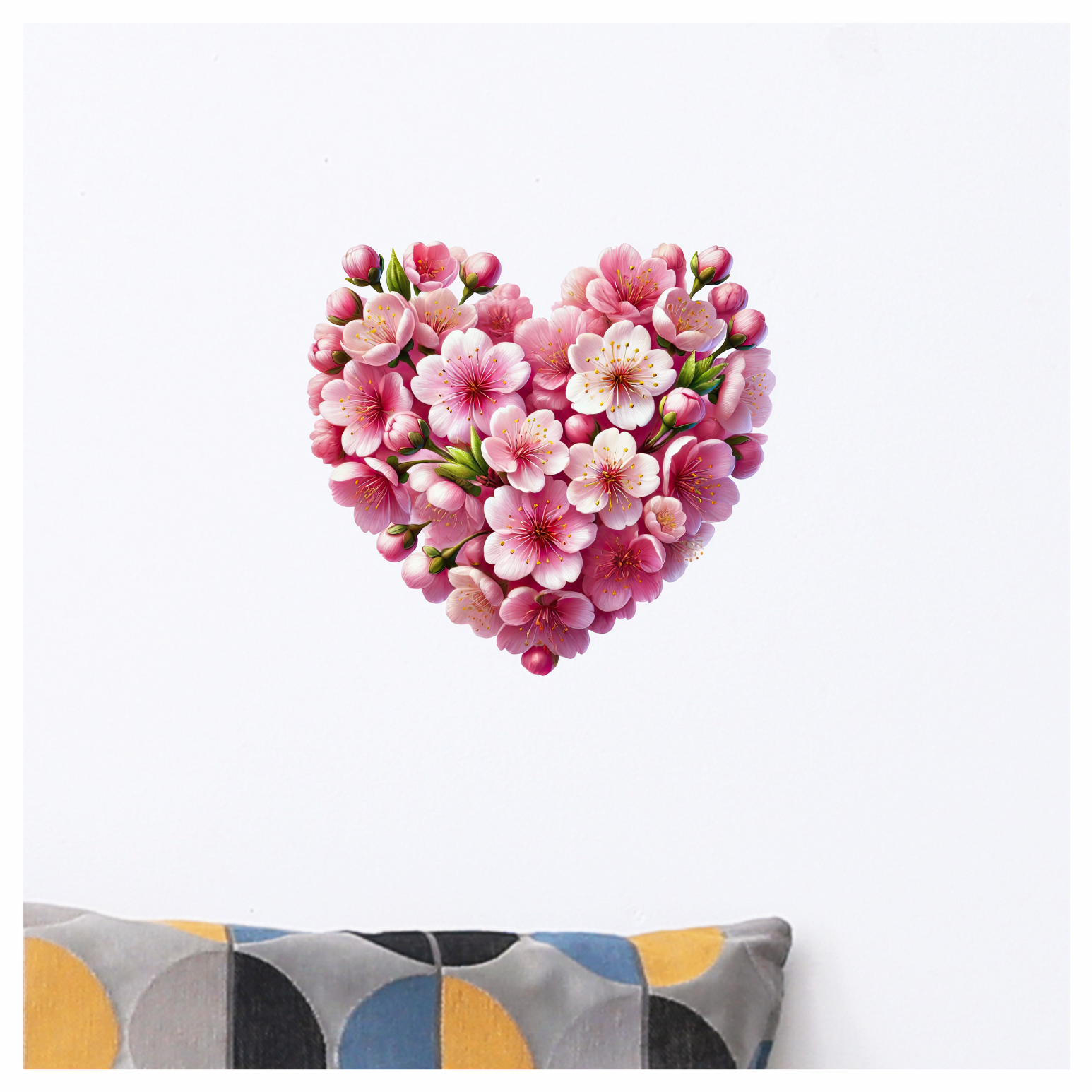 Pink Flowers Heart Shape Nature Vinyl Sticker Decal