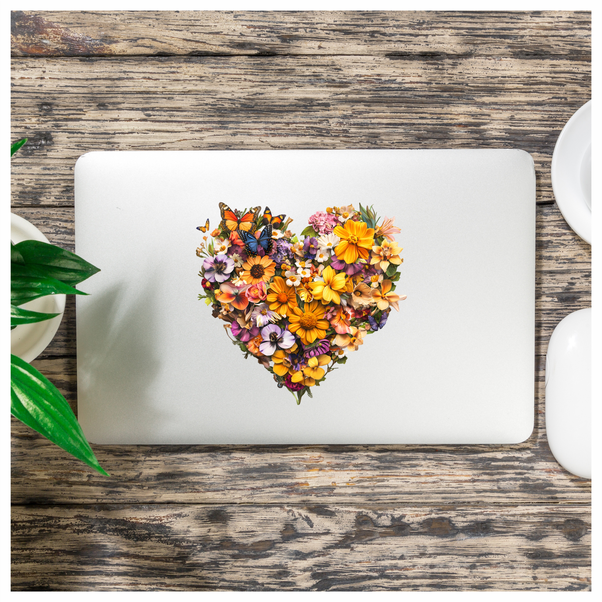 Yellow Flowers Butterflies Green Leaves Heart Vinyl Sticker Decal