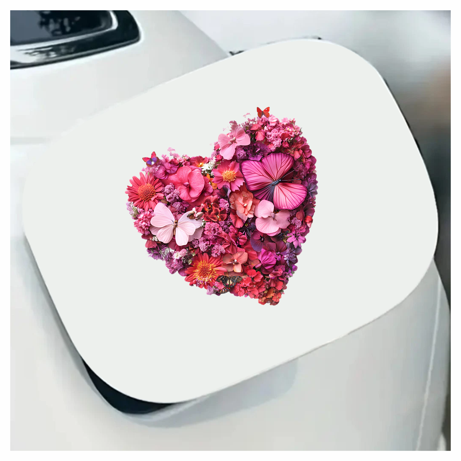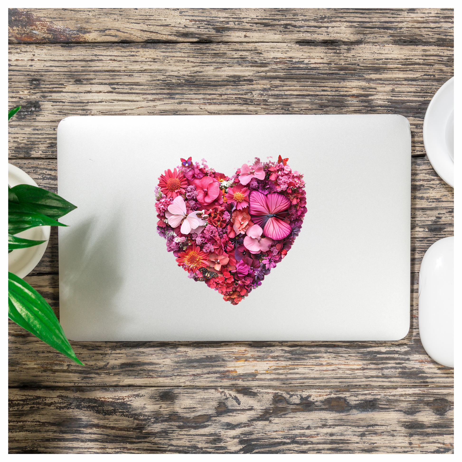 Pink Flowers Butterflies Heart Shape Nature Vinyl Sticker Decal