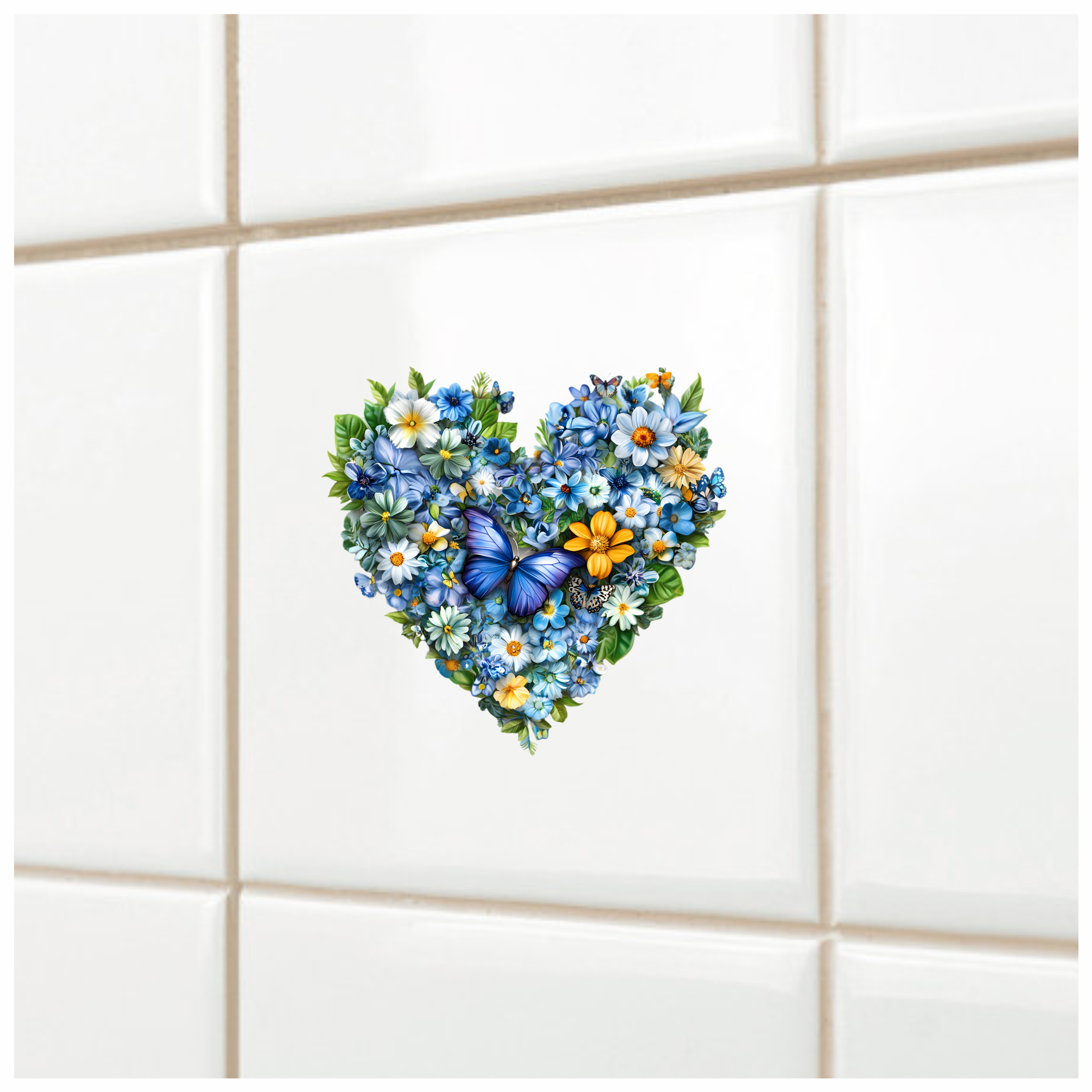 Blue Flowers Butterfly Heart Nature Vinyl Sticker Decal