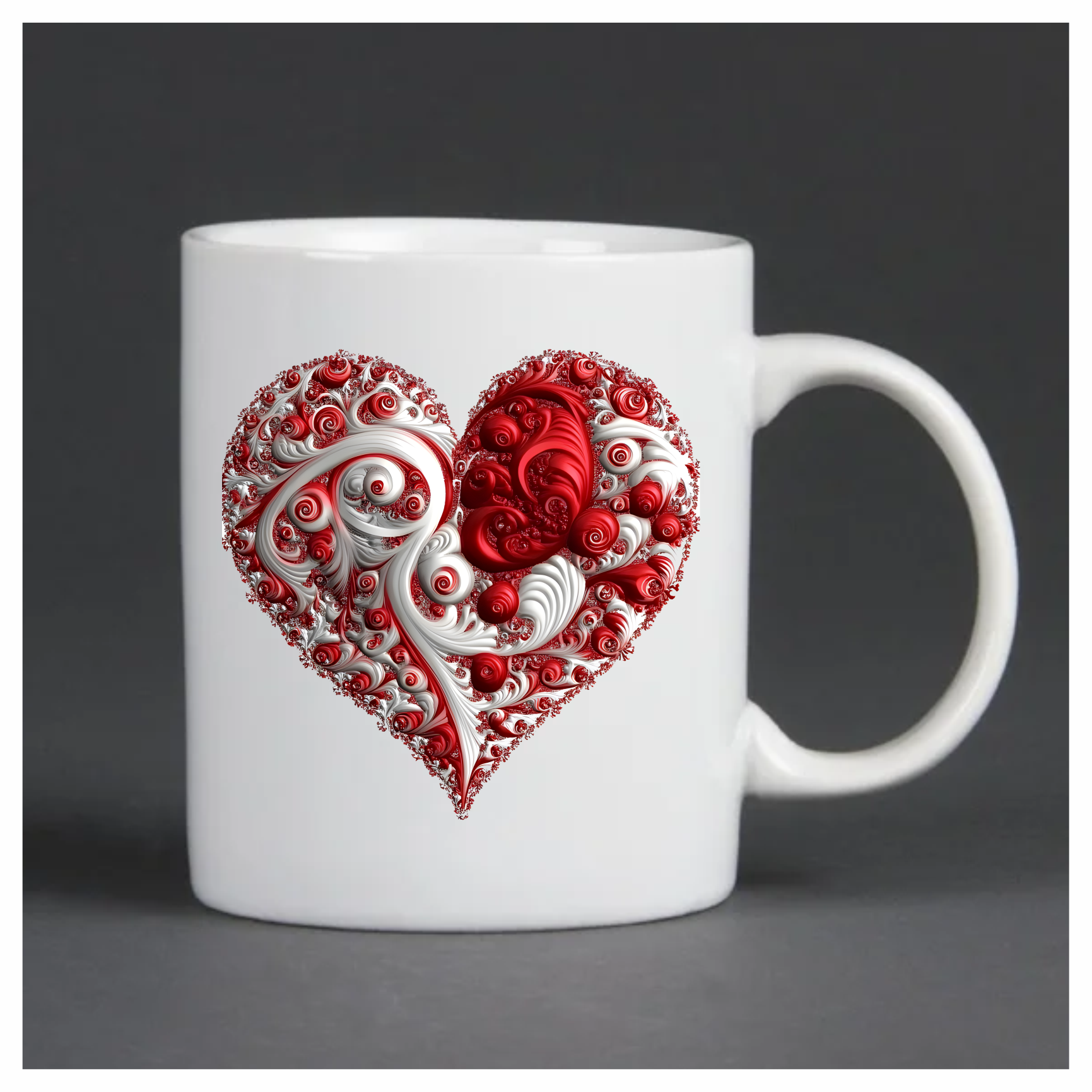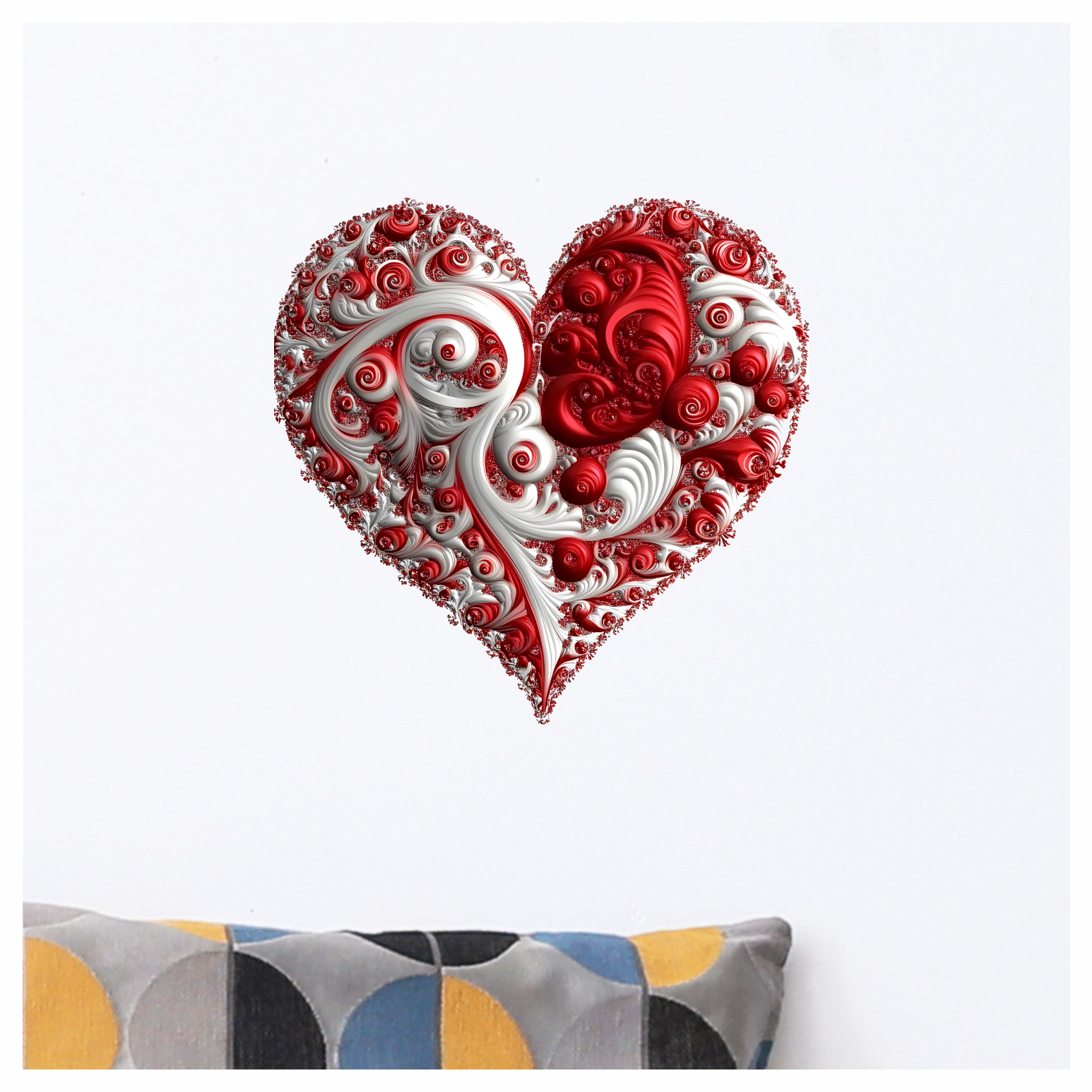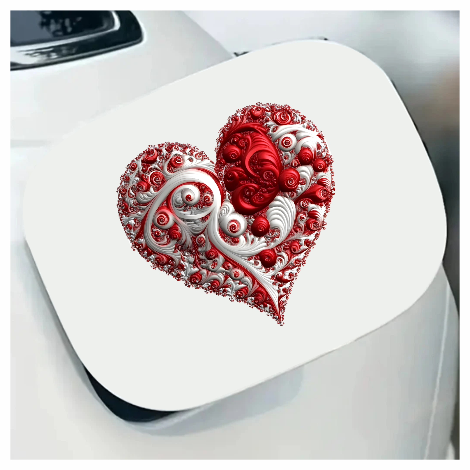 Red Swirls Heart Shape Abstract Design Vinyl Sticker Decal