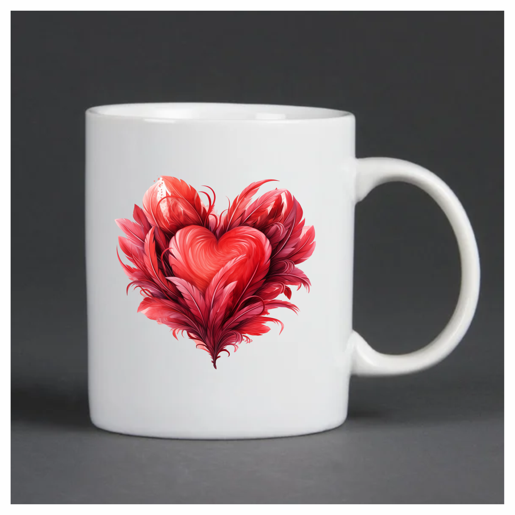 Red Heart Feathers Swirl Elegant Vinyl Sticker Decal