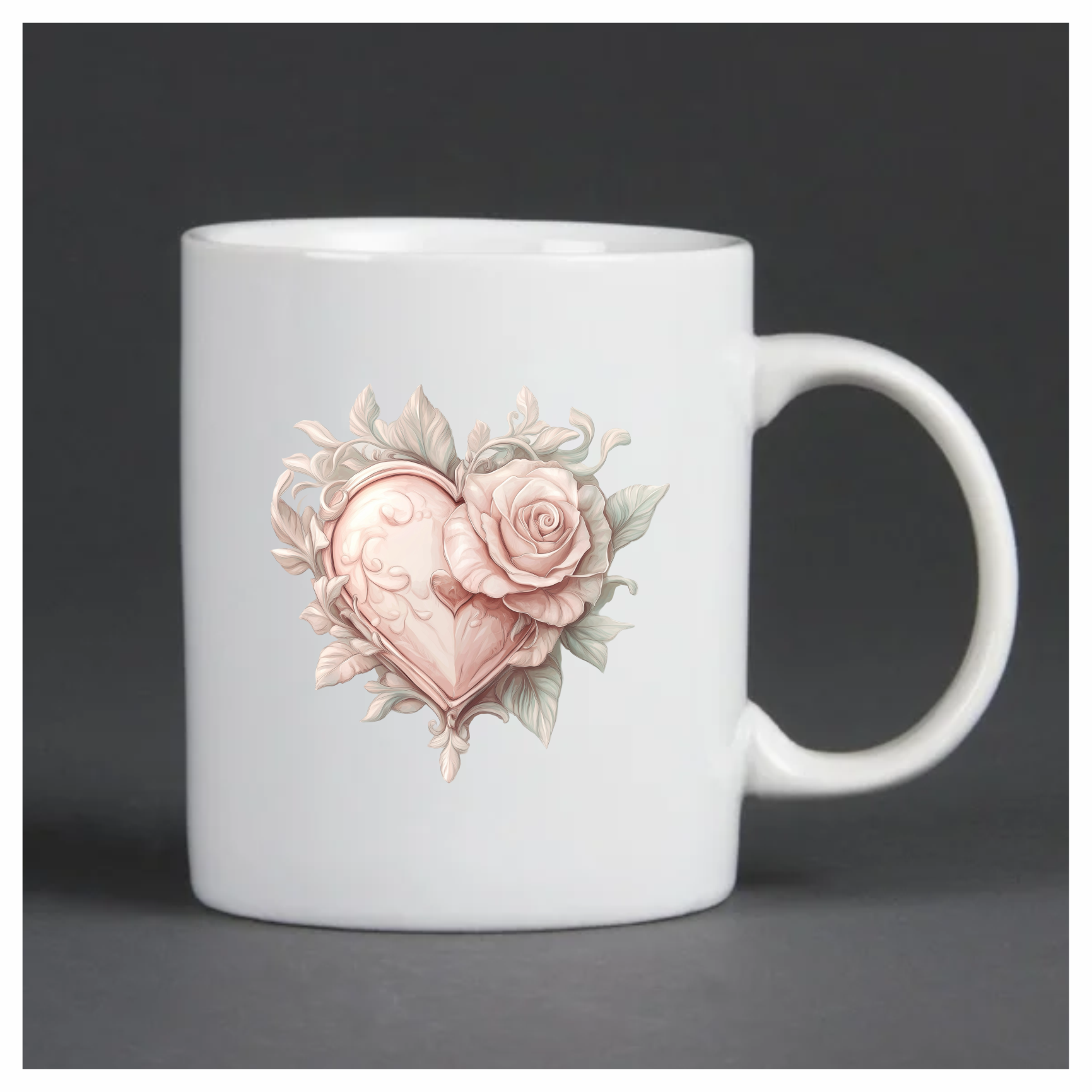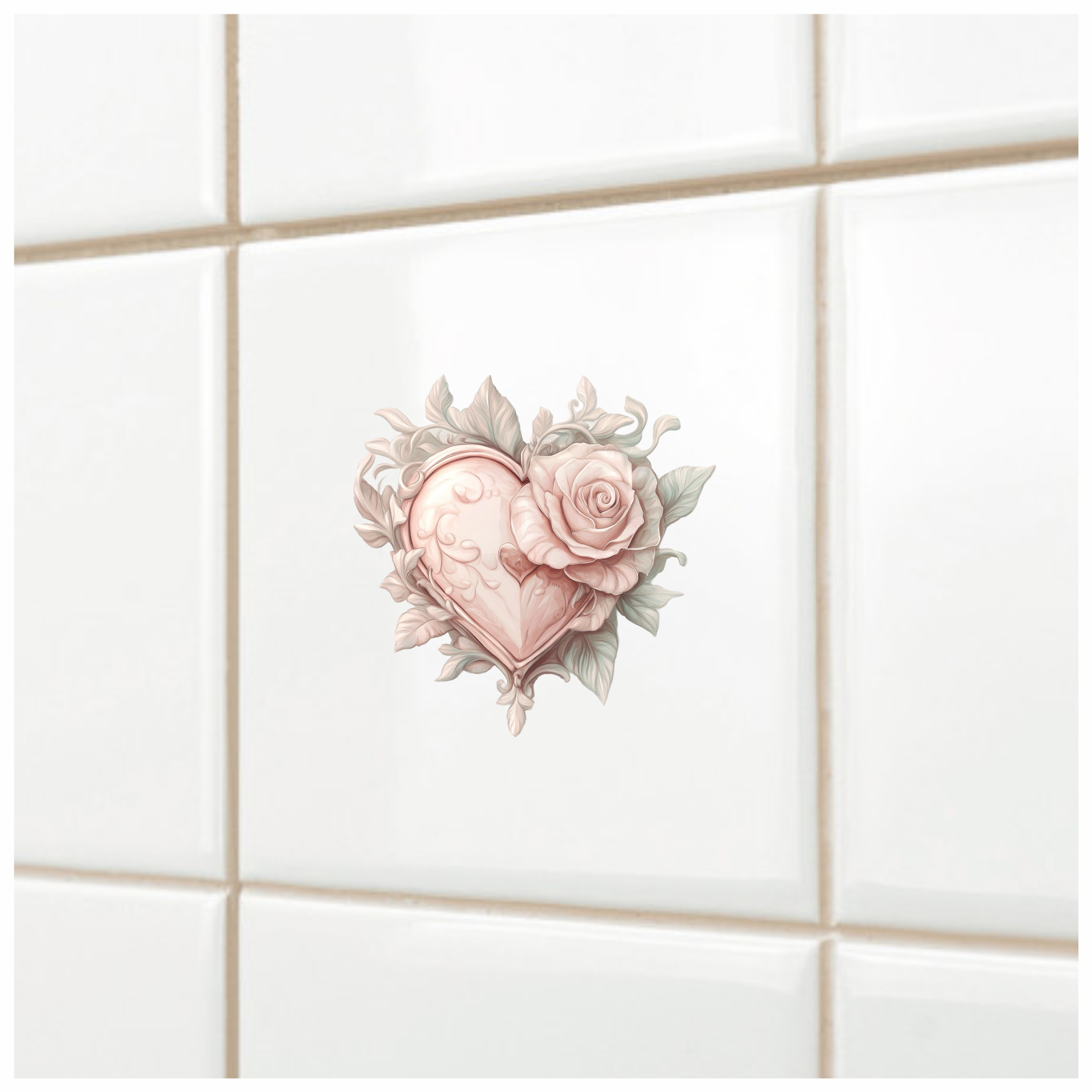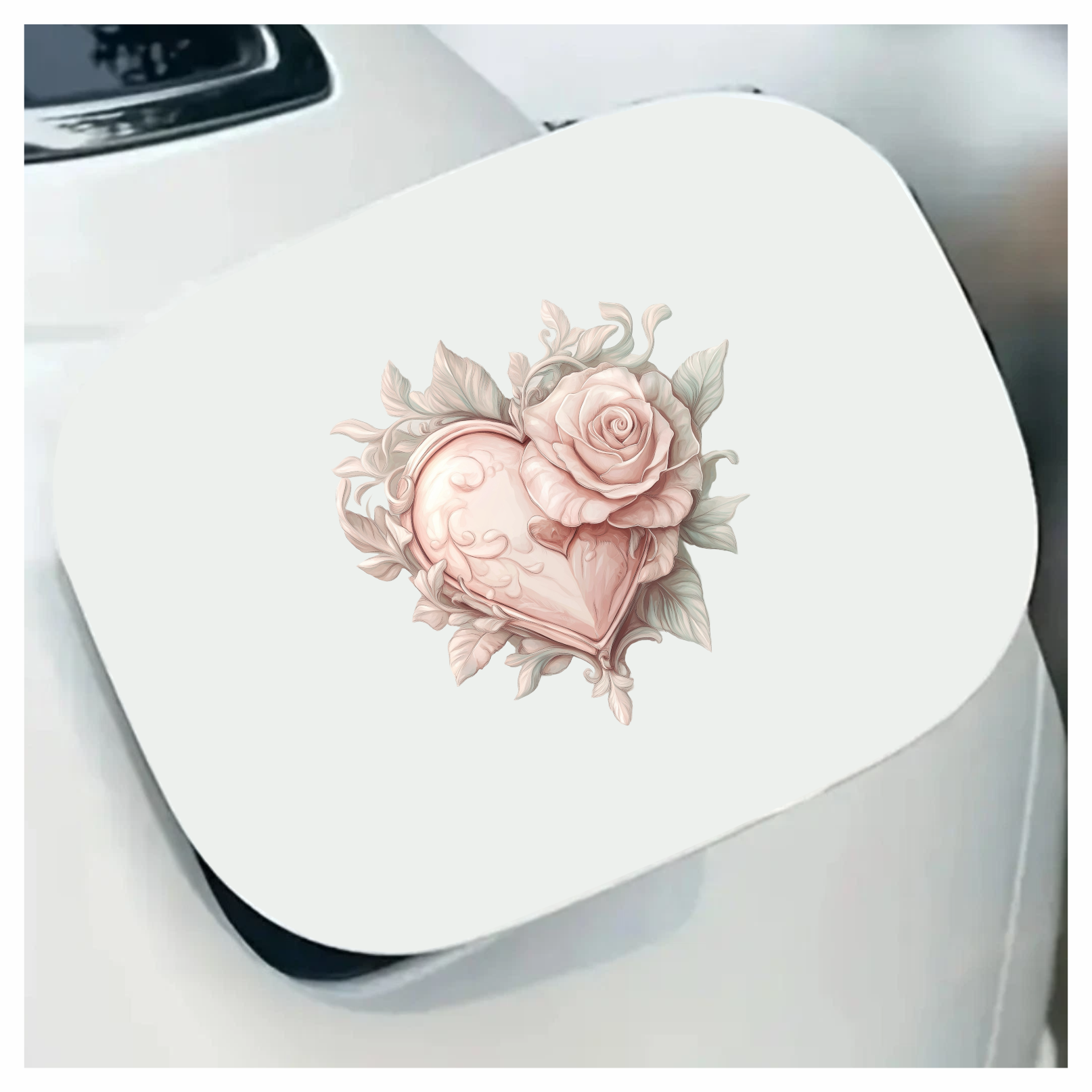 Heart Rose Pink Leaves Vinyl Sticker Decal