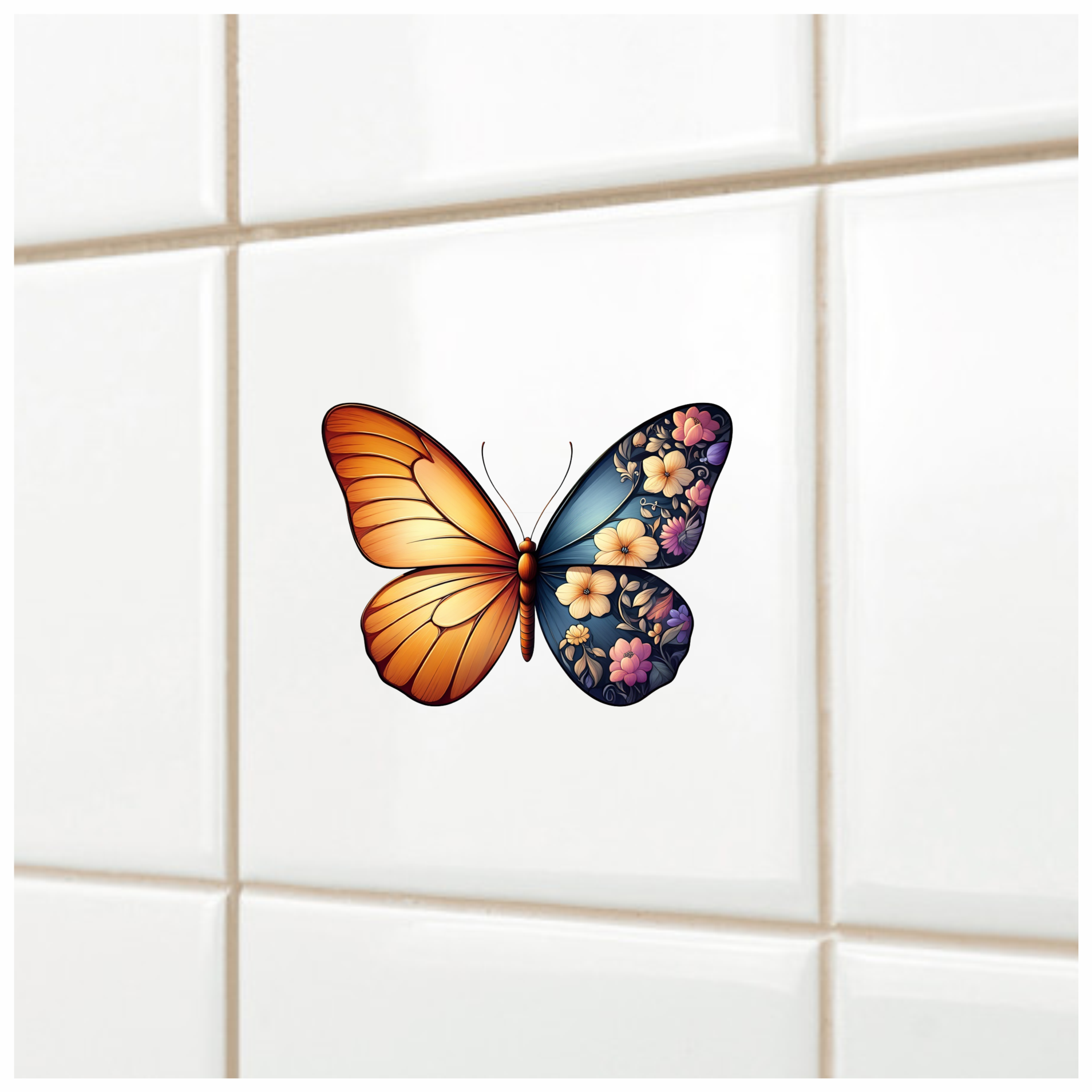 Orange Butterfly Floral Blue Vinyl Sticker Decal