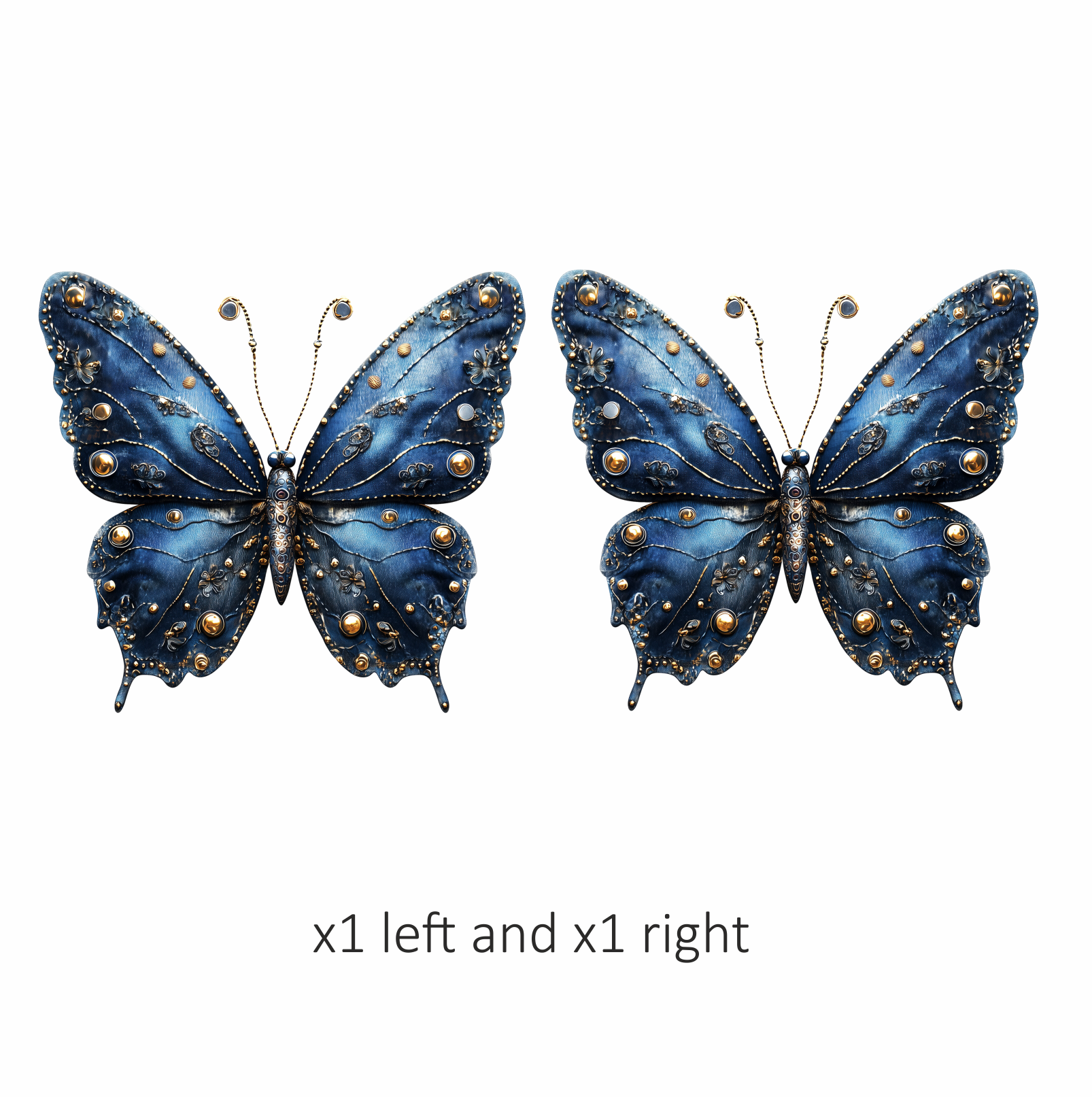 Blue Butterfly Metal Design Floral Vinyl Sticker Decal