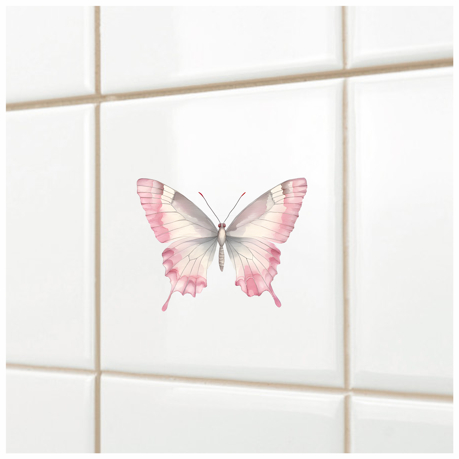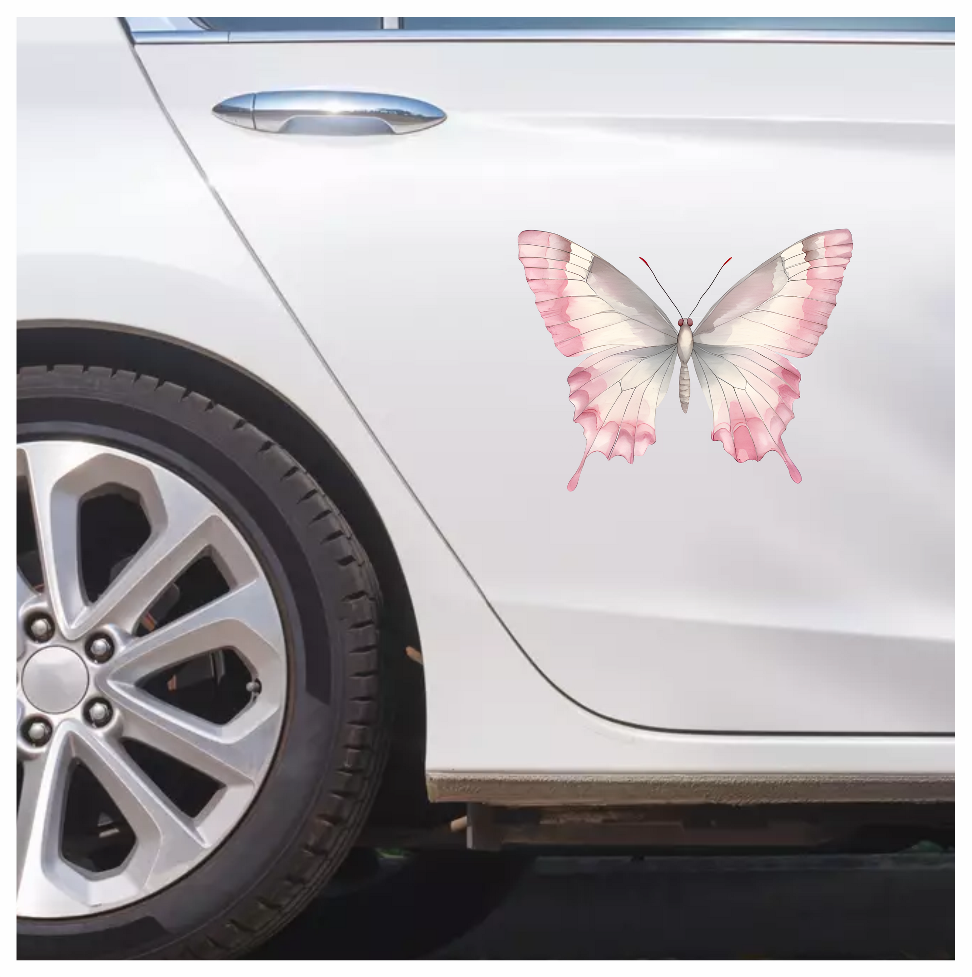 Pink Butterfly Insect White Vinyl Sticker Decal
