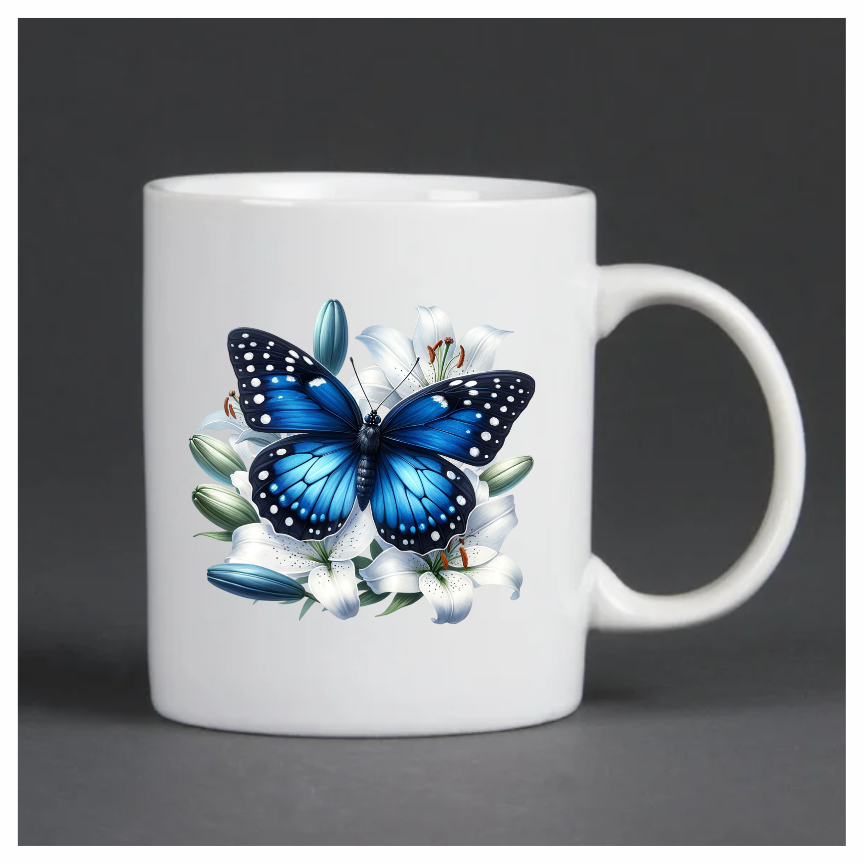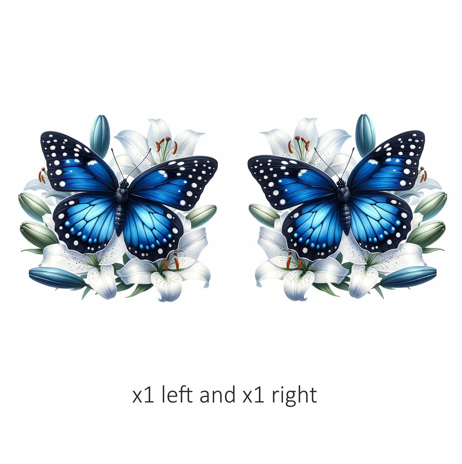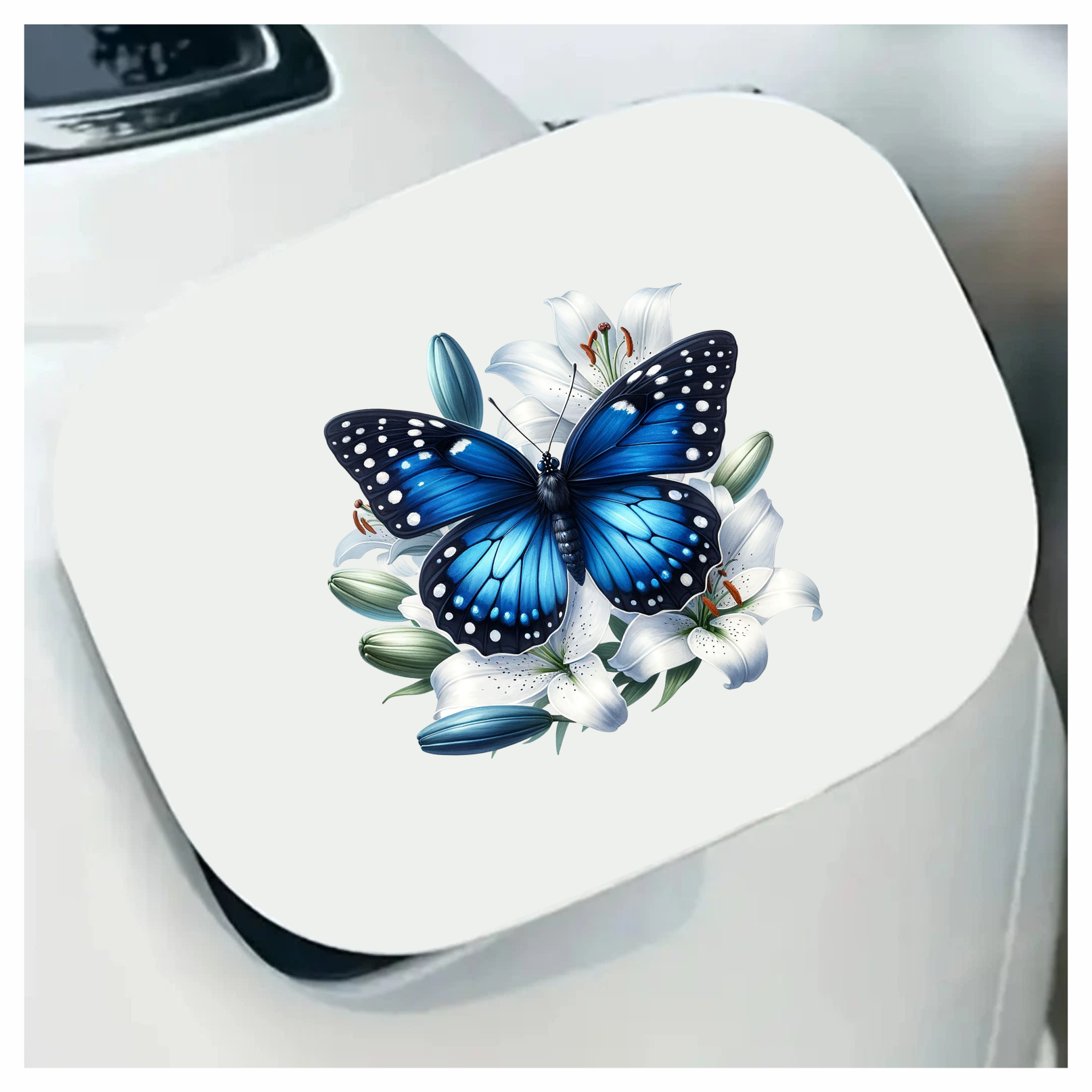Blue Butterfly White Lily Flowers Nature Vinyl Sticker Decal