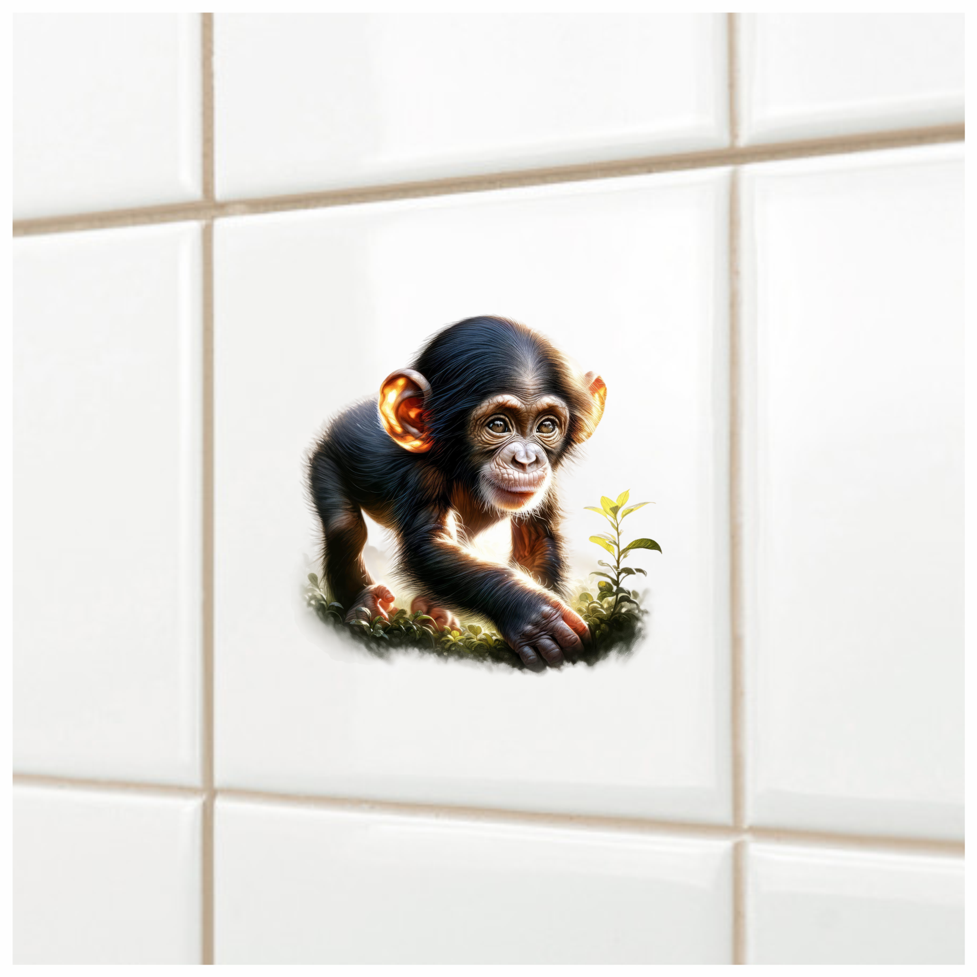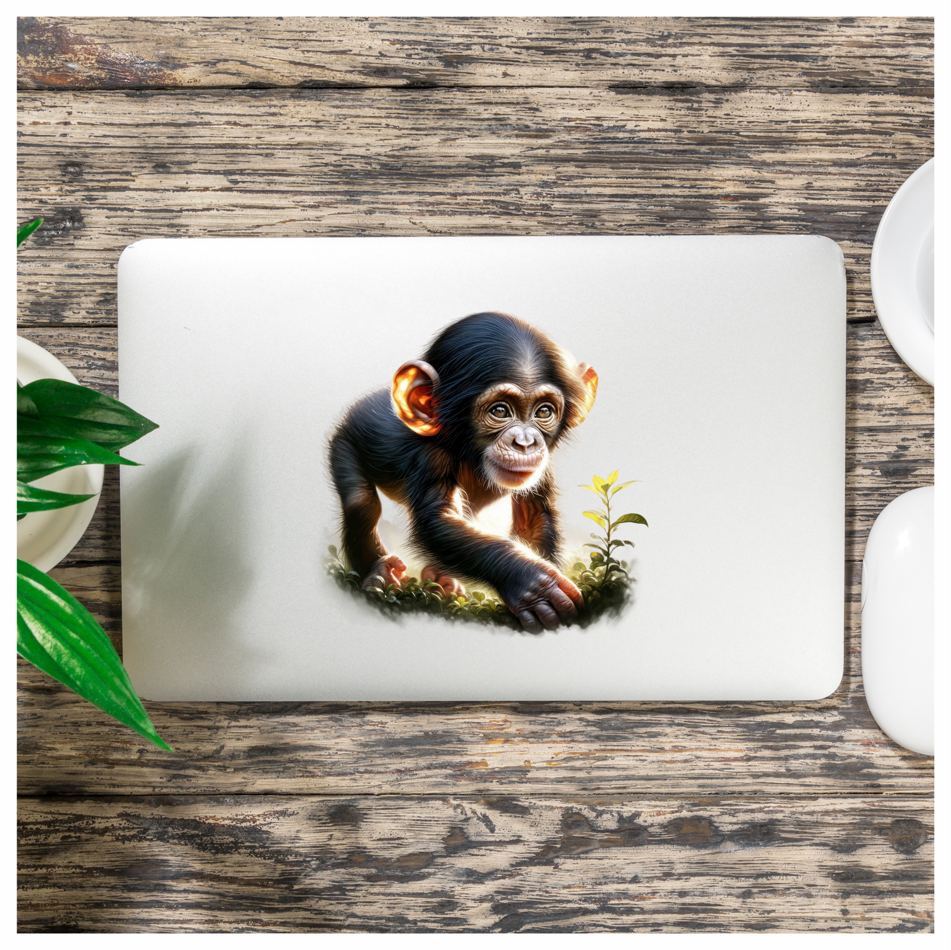 Chimpanzee Brown Green Leaves Forest Vinyl Sticker Decal