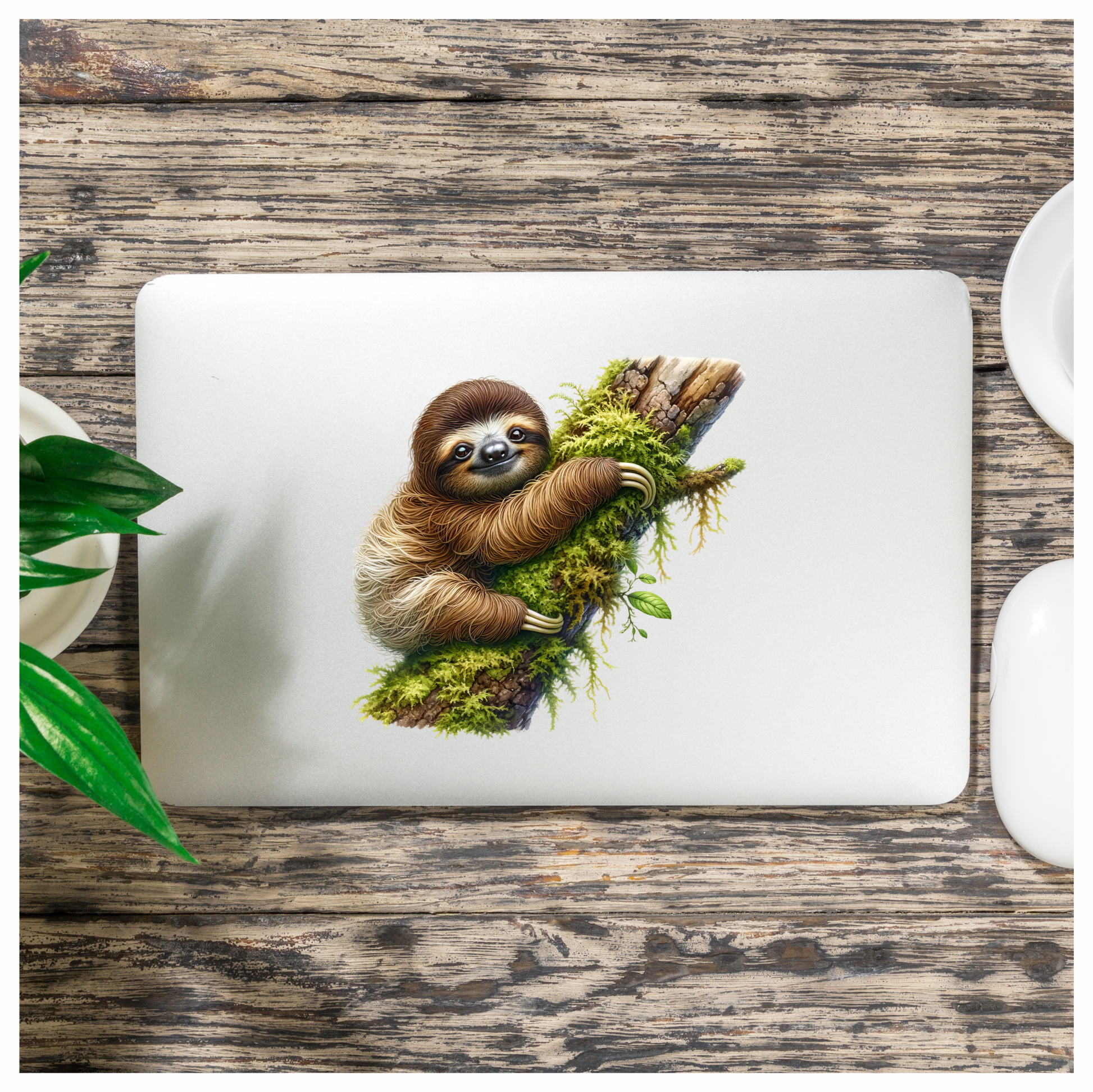 Sloth Brown Moss Tree Vinyl Sticker Decal